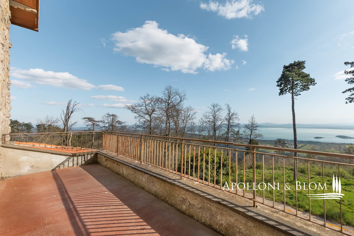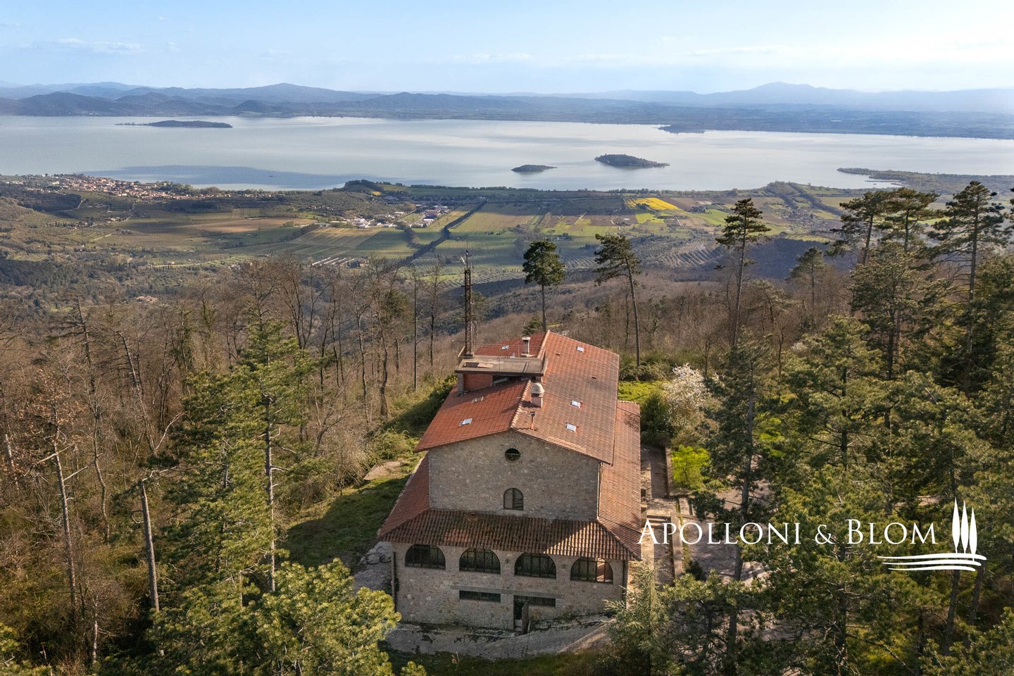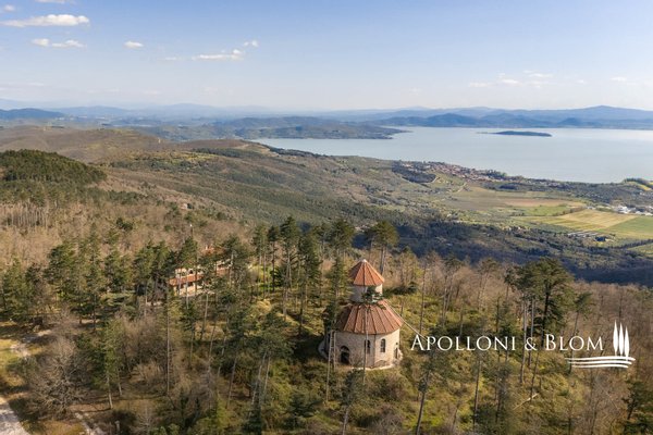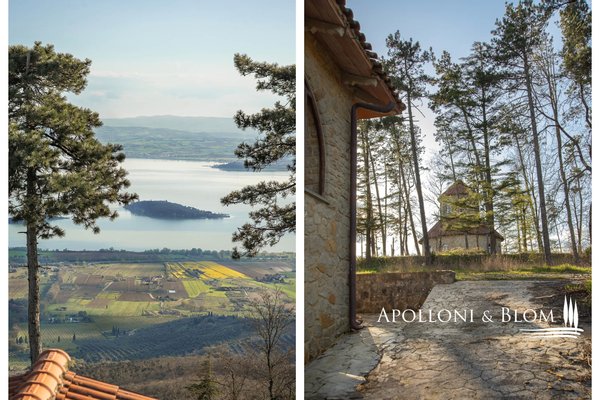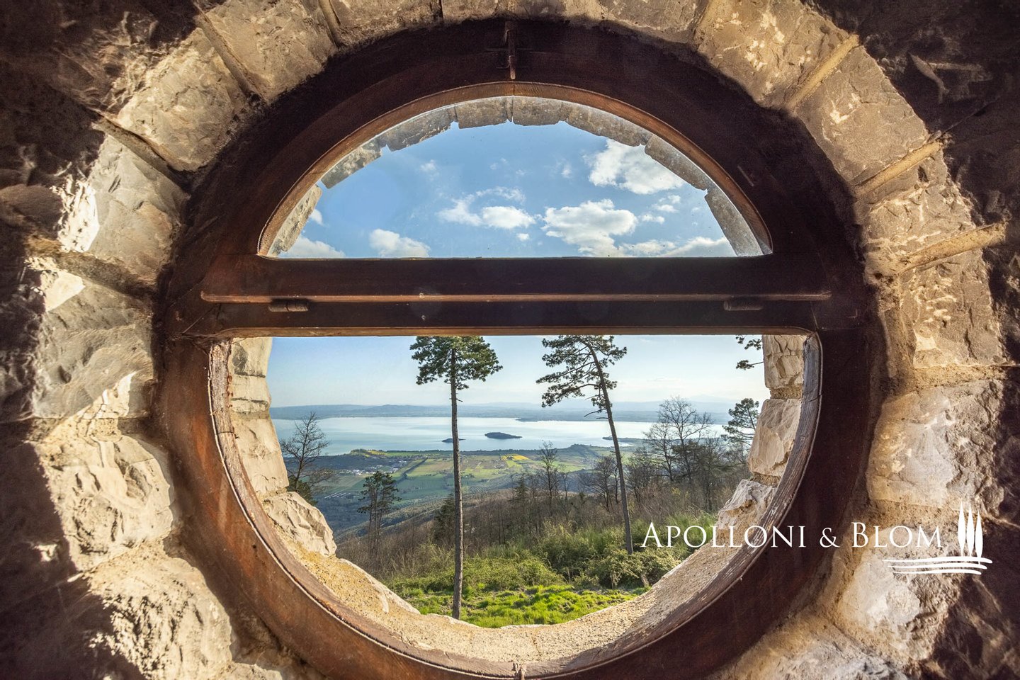 Typ: Bauernhaus aus Stein mit Blick auf den Trasimeno-See, auf vier Etagen, ca. 1200 Quadratmeter, mit angebautem Rundbau ab dem Heiligtum, Park und Land