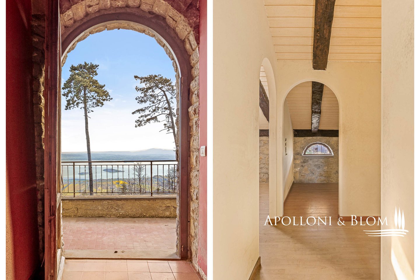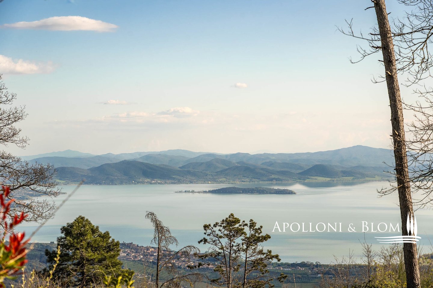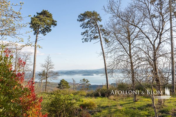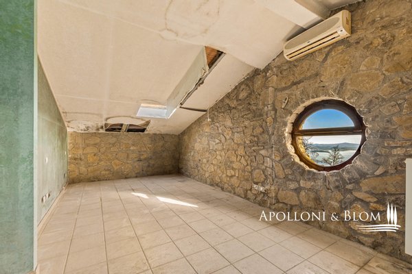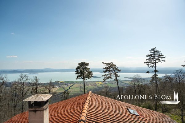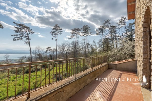 Typ: Bauernhaus aus Stein mit Blick auf den Trasimeno-See, auf vier Etagen, ca. 1200 Quadratmeter, mit angebautem Rundbau ab dem Heiligtum, Park und Land