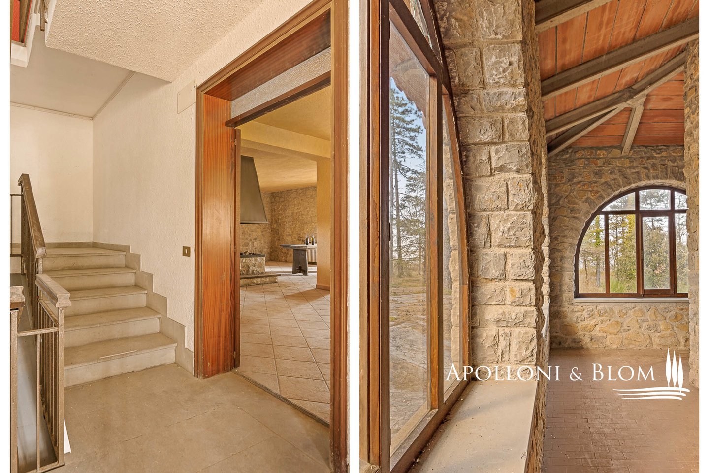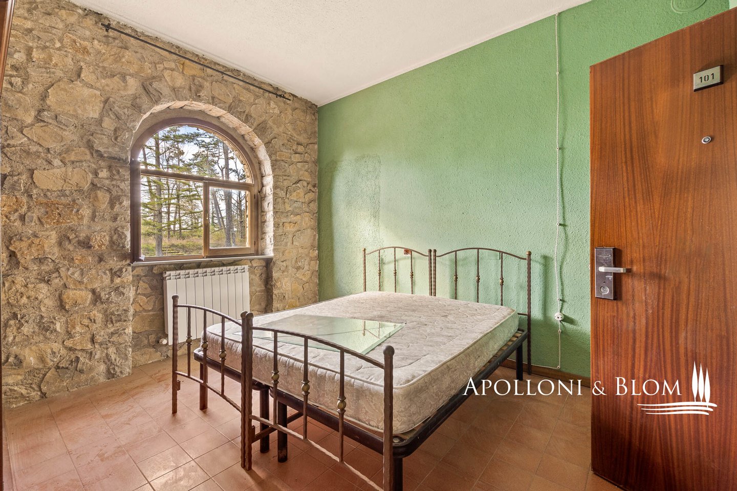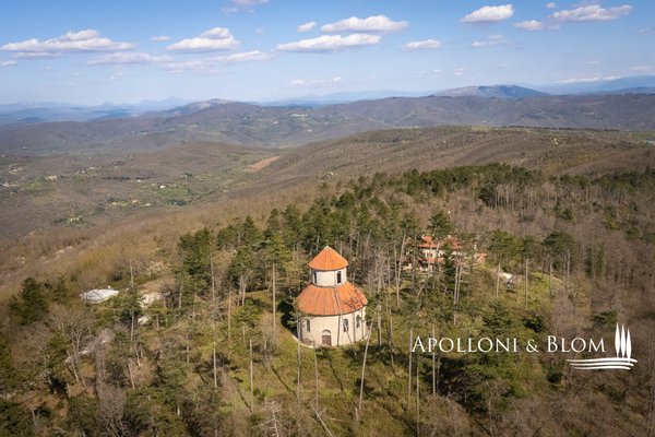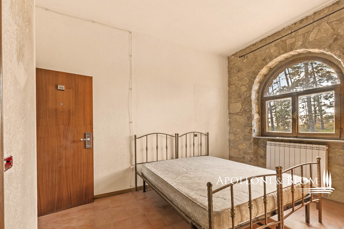 Antiker, renovierungsbedürftiger Steinkomplex mit Spa, zwei Schwimmbädern und einem 12 m hohen Rundbau mit Blick auf den Trasimenischen See zu verkaufen. Der 800 m über dem Meeresspiegel gelegene Komplex erstreckt sich über 21 Hektar exklusives Land und besteht aus einem ca. 1200 m² großen Bauernhaus auf vier Ebenen, mit einem Spa im unteren Stockwerk und einem Rundbau mit spektakulärem Blick auf den See. Das Bauernhaus, das sich in einem ausgezeichneten Zustand befindet, verfügt über acht Schlafzimmer, jedes mit eigenem Bad, und ist modernisierungsbedürftig. Neben dem Bauernhaus befindet sich das ehemalige runde Heiligtum mit einer Höhe von mehr als 12 Metern, das sich ideal für exklusive Veranstaltungen eignet und eine Fläche von 240 Quadratmetern bietet. Das Anwesen verfügt über einen renovierungsbedürftigen Pool mit Blick auf den See und befindet sich im wunderschönen und unberührten Niccone-Tal, einer der exklusivsten Gegenden Umbriens. Das Anwesen eignet sich sowohl als privater Wohnsitz als auch als Beherbergungsbetrieb. Für weitere Informationen, kontaktieren Sie uns bitte!
