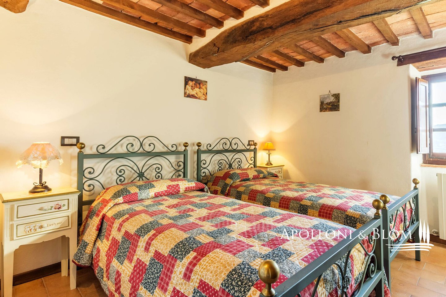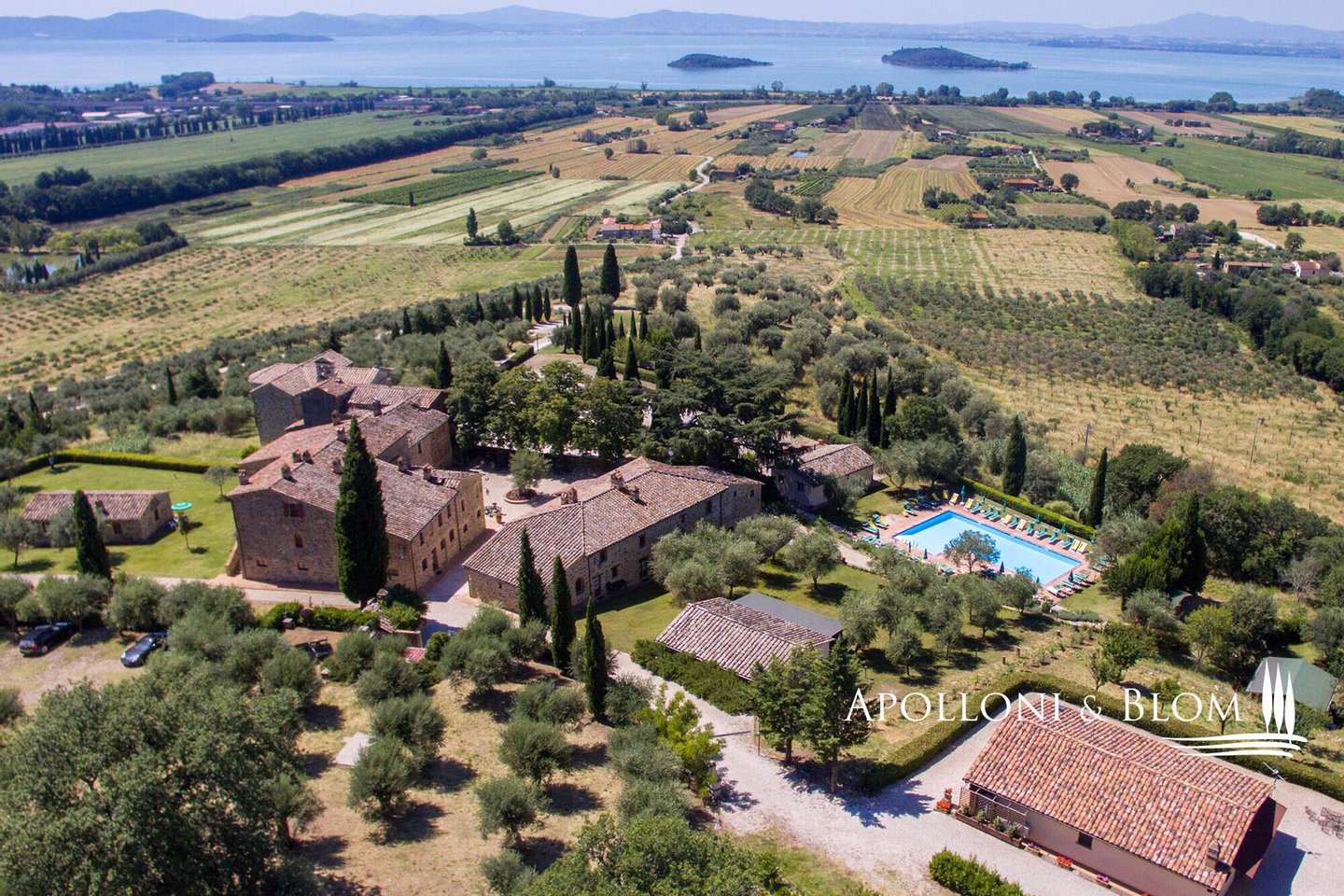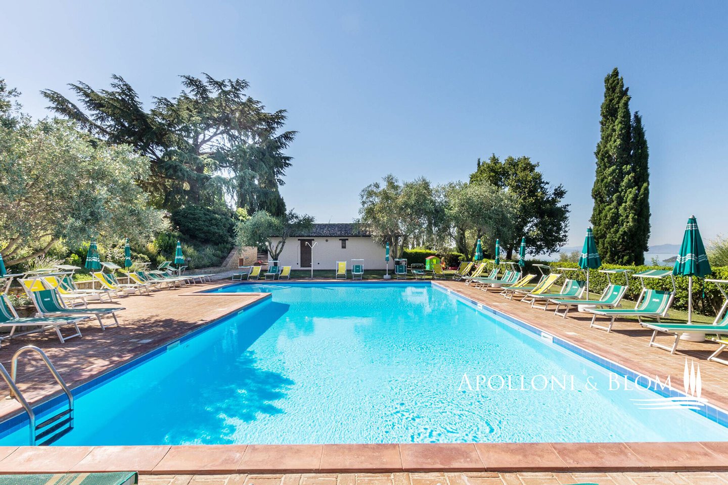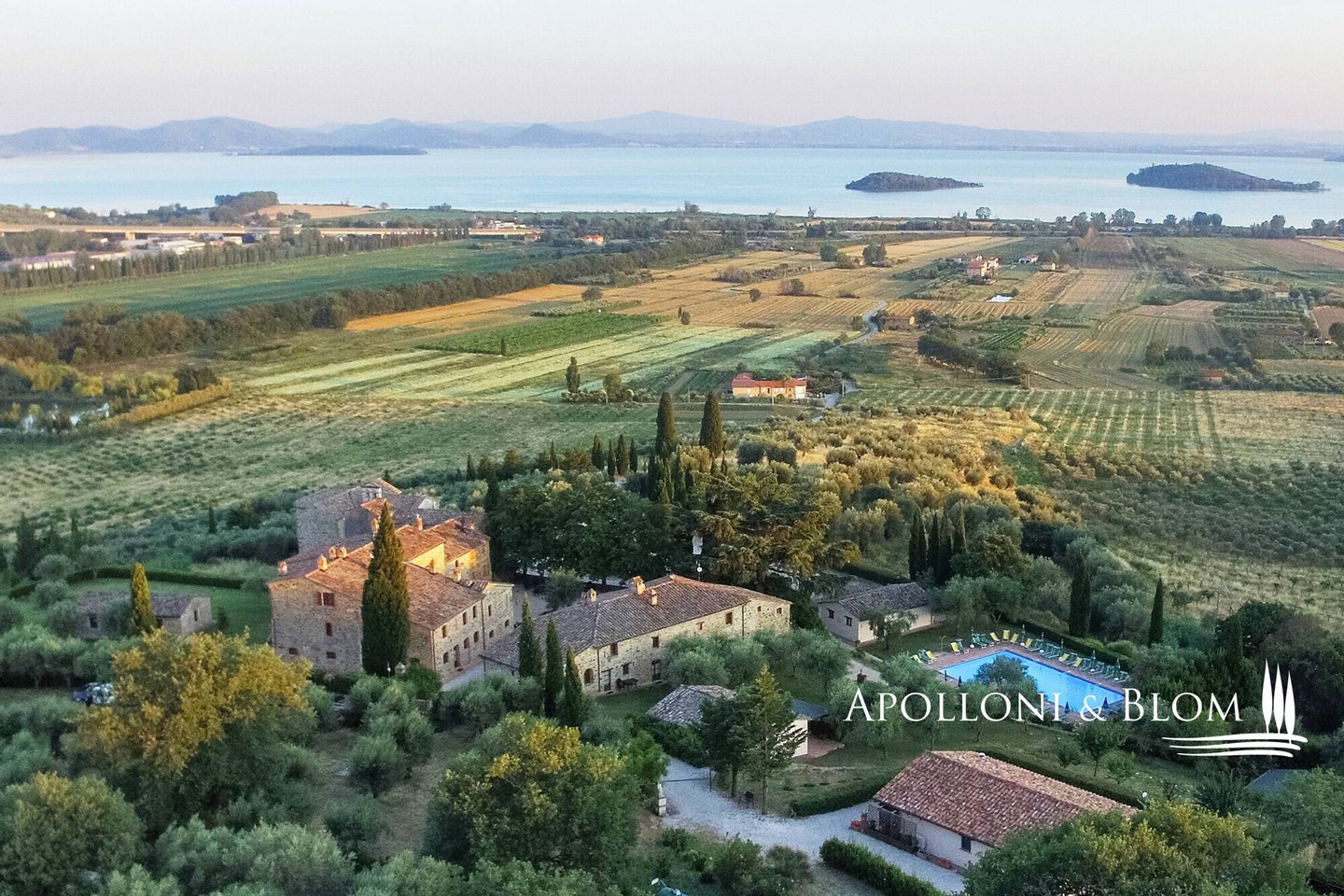 Art: 2500 m² großer historischer Weiler mit Blick auf den Trasimenischen See, bestehend aus 5 renovierten Steingebäuden mit 17 Ein-, Zwei- oder Drei-Zimmer-Wohnungen (insgesamt 31 Zimmer), Innenhof, Garten mit Aussichtsterrasse und Swimmingpool, auf 3,5 ha Privatgrundstück