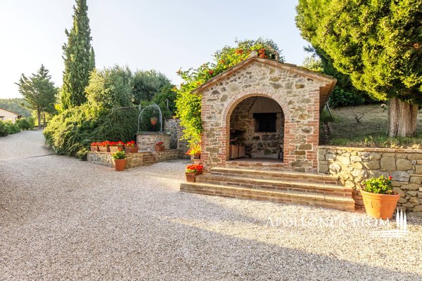 Grundstück/Garten: Garten mit Aussichtsterrasse, Grillplatz, Holzofen, Wanderwege, Bocciabahn, 3.5 ha/8.6 acres mit jahrhundertealten Olivenbäumen und Eichen