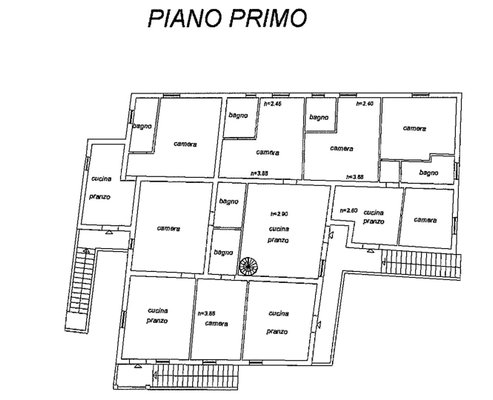 Bauernhaus auf drei Etagen mit 9 Wohnungen für insgesamt 12 Zimmer und 13 Bäder
