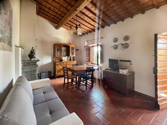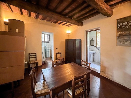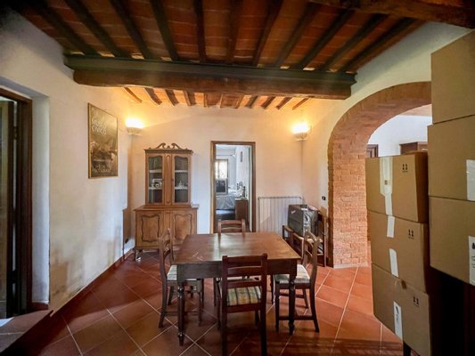 Bauernhaus aus Stein und Ziegel mit vier Zimmern zu verkaufen in Chiusi, Siena. Im Herzen der Toskana, nur 10 Minuten von Cetona und Sarteano und 30 Minuten von Montepulciano und Pienza, in einer ruhigen und zurückhaltenden Lage, aber nur wenige Gehminuten von den wichtigsten Dienstleistungen. Eine kurze unbefestigte Straße führt zu Casale La Chianina, einem alten toskanischen Bauernhaus auf zwei Ebenen, umgeben von einem eingezäunten Garten und einem Hektar Wald. Die Innenräume spiegeln das typische toskanische Bauernhaus mit gewölbten Decken und freiliegenden Holzbalken, Terrakottaböden und Holzeinbauten wider, aufgeteilt in zwei Wohnungen und ein Studio-Apartment mit insgesamt vier Schlafzimmern und vier Bädern. Eine Garage und ein Holzschuppen vervollständigen das Anwesen. Aufgrund seiner günstigen Lage und seiner historischen Merkmale eignet sich Casale La Chianina ideal als ganzjährig bewohnbarer Wohnsitz oder als Feriendomizil, sei es für den privaten Gebrauch oder für die Beherbergung von Touristen und Reisenden aus der ganzen Welt.
