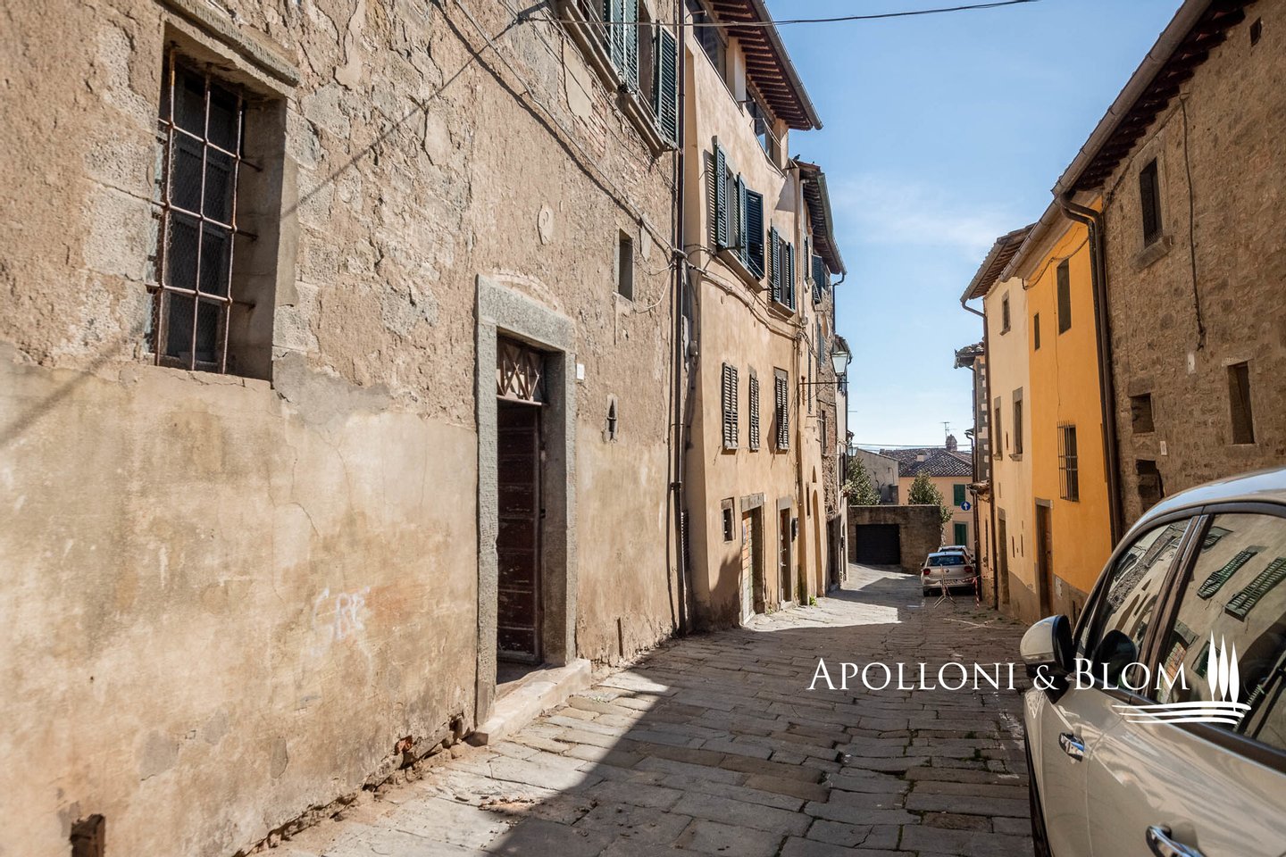 Im historischen Zentrum, Palazzo auf vier Etagen plus Mansarde, teilweise zu renovieren und individuell zu gestalten, Panoramablick zu verkaufen in Cortona. Im Herzen der Stadt, ein Palazzo aus dem 17. Jahrhundert mit einer Hauptfassade mit typischen Renaissance-Steinverzierungen, die alle Fenster einrahmen, und einer Eingangstür, die durch ein Steinportal mit Wappen verziert ist. Die über 450 Quadratmeter Wohnfläche verteilen sich auf zwei Hauptetagen, ein Zwischengeschoss, einen Dachboden und einen rustikalen Keller. Auf der Haupteingangsebene befindet sich ein bereits modernisierter Wohnbereich mit Küche, Wohnzimmer, zwei Schlafzimmern, zwei Bädern und einem begehbaren Kleiderschrank. Alle Räume sind hell und zeichnen sich durch Holzbalkendecken, antike Türen und Terrakottaböden aus. Die oberen Etagen bestehen aus sehr hellen Räumen und bieten einen schönen freien Blick auf die Stadt und die umliegende Landschaft. Die Etage muss komplett renoviert werden, wobei ein Teil der Abbrucharbeiten gerade begonnen hat, und umfasst ein Wohnzimmer, drei Schlafzimmer und zwei Badezimmer. Das Dachgeschoss verfügt über Oberlichter und Gauben auf dem Dach und könnte zu Lofts und Wohnräumen ausgebaut werden. Auf der Rückseite des Gebäudes, von einer gepflasterten Seitenstraße aus, führt ein zweiter Eingang direkt zu einer Taverne im Untergeschoss, die ihre rustikale Atmosphäre und großen Backsteinbögen bewahrt hat. Die Taverne verfügt auch über eine Innentreppe, die direkt in die oberen Stockwerke führt. Palazzo San Marco bietet verschiedene Wohnmöglichkeiten, entweder als Einfamilienhaus oder als unabhängige Wohnungen, für ganzjähriges Wohnen oder für den Urlaub. Apolloni & Blom steht Ihnen mit einem lokalen Netzwerk von Fachleuten und Bauunternehmern zur Verfügung, um Sie von der Planung bis zur schlüsselfertigen Realisierung zu unterstützen! Darüber hinaus ziehen die Eigentümer auch Teilverkäufe in Betracht. Kontaktieren Sie uns für weitere Details! Erreichbar mit dem Auto, nicht ZTL, in Gehweite von allen Geschäften, Bars und Restaurants. Cortona liegt in einer spektakulären Region an der Grenze zwischen der Toskana und Umbrien, nur wenige Minuten von den Ufern des Trasimenischen Sees und allen wichtigen historischen Stätten, Naturparks und den besten Chianti-Weinkellereien entfernt. Es bietet alle Dienstleistungen, einen Bahnhof und eine gute Anbindung an die Autobahnen. Die Lebensqualität, der von der Natur geprägte Rhythmus und die kulturellen Veranstaltungen, die das ganze Jahr über stattfinden, machen die Stadt zu einem der beliebtesten Ziele für Prominente und VIPs aus aller Welt.