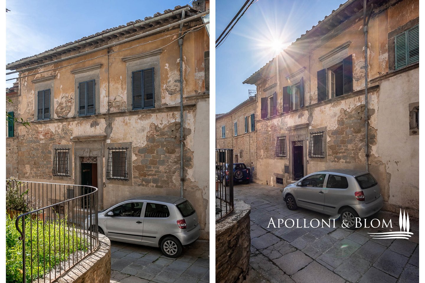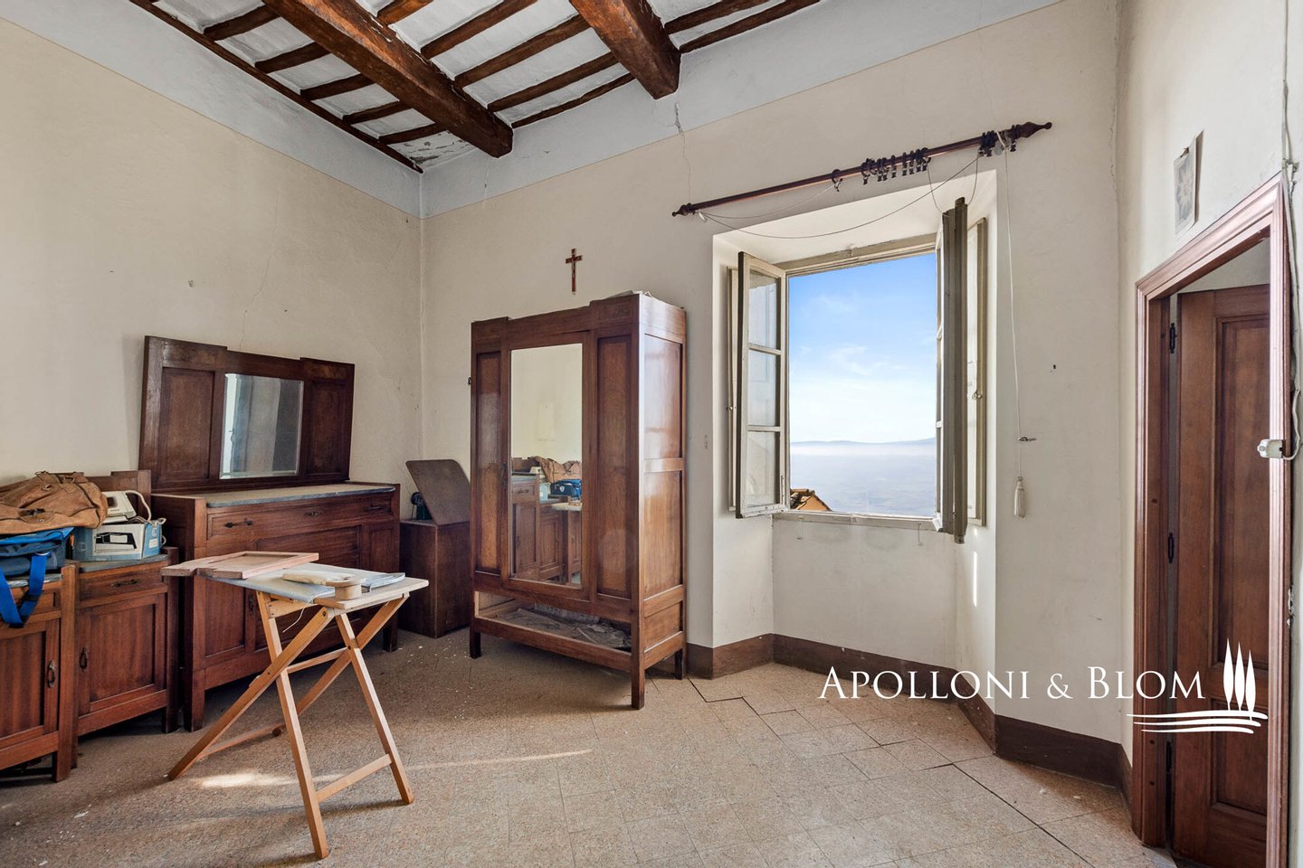 Im historischen Zentrum, Palazzo auf vier Etagen plus Mansarde, teilweise zu renovieren und individuell zu gestalten, Panoramablick zu verkaufen in Cortona. Im Herzen der Stadt, ein Palazzo aus dem 17. Jahrhundert mit einer Hauptfassade mit typischen