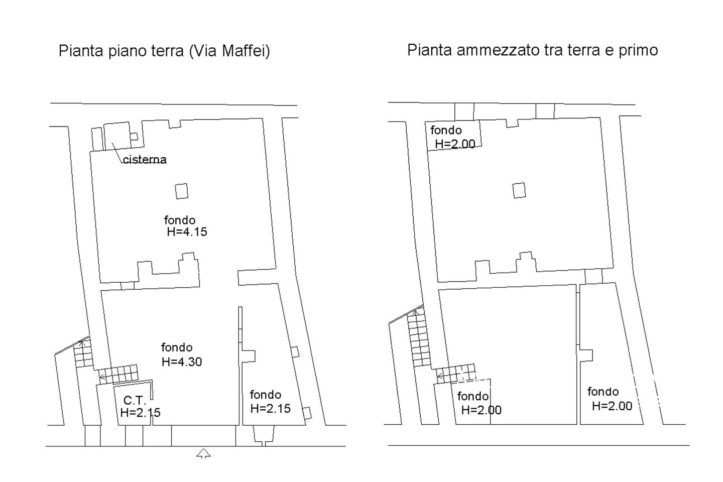 Typ: Gebäude im historischen Zentrum, Erdgeschoss für 453 Quadratmeter Fläche auf vier Ebenen plus Mansarde, doppelter Zugang, renovierter erster Stock mit 2 Schlafzimmern