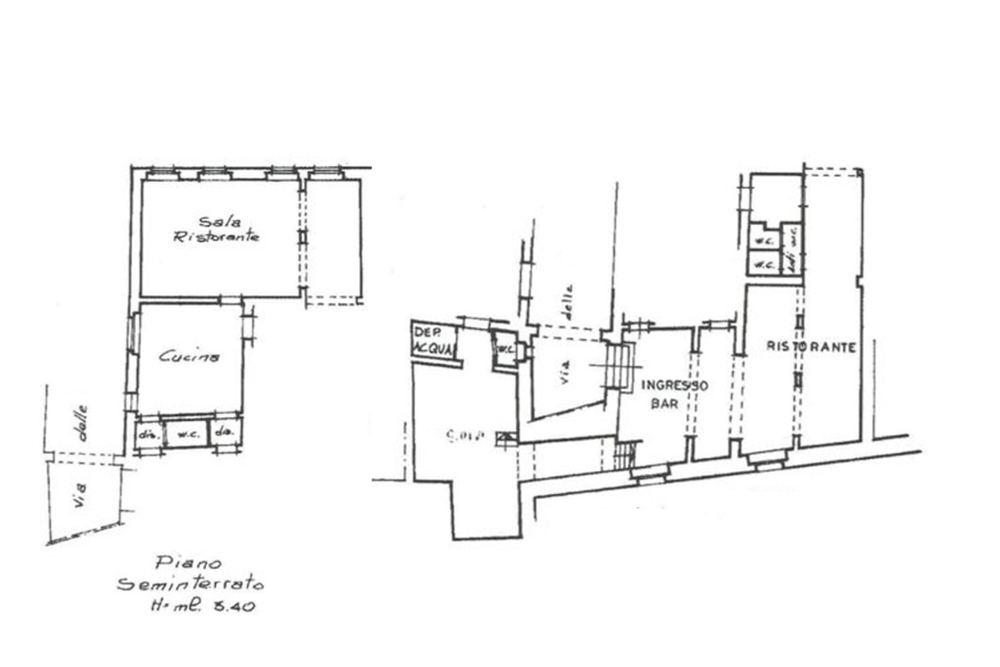 Erdgeschoss (unter der Hauptstraße): Keller, Eingang/Bar, Restaurantraum, 2 Service-Badezimmer und Ankleideraum