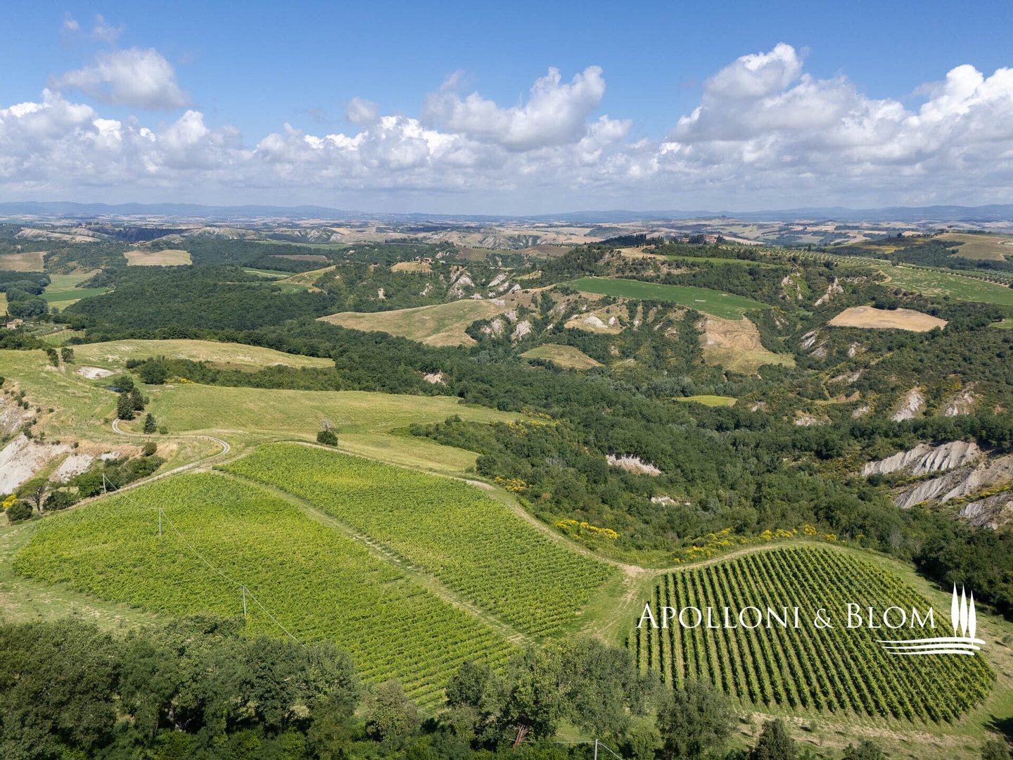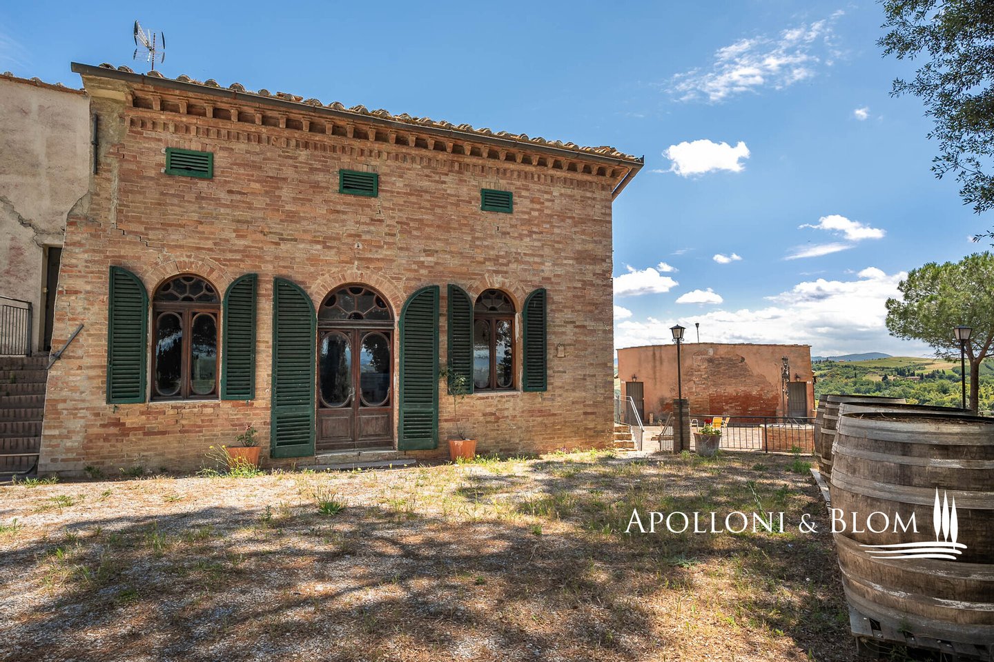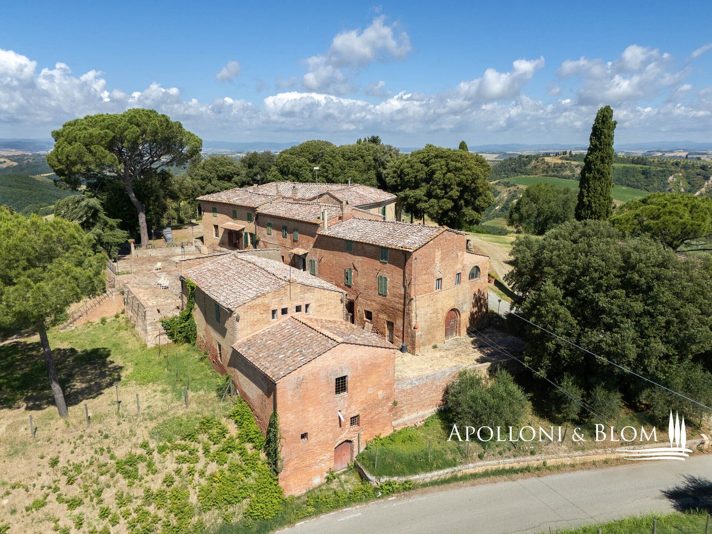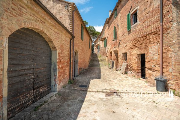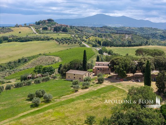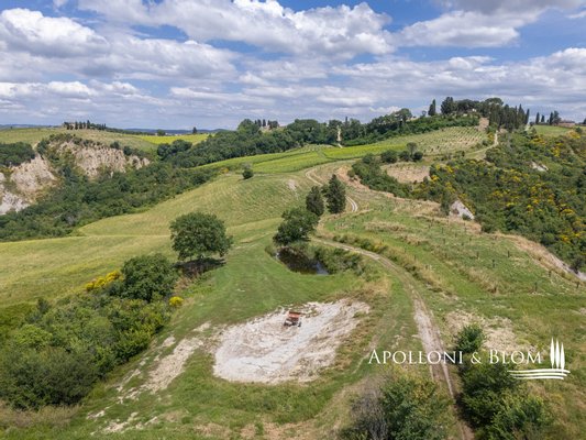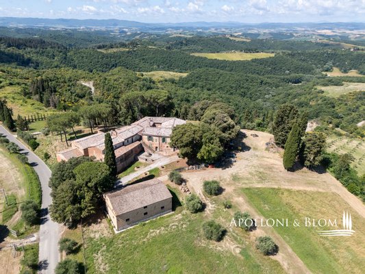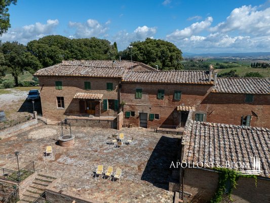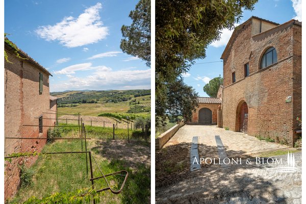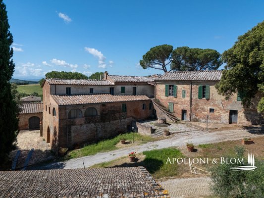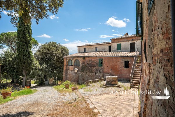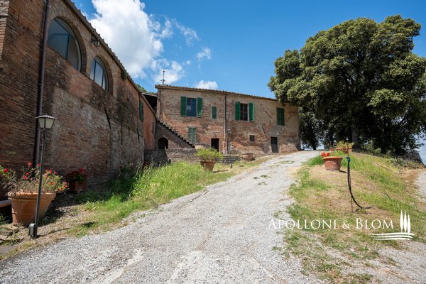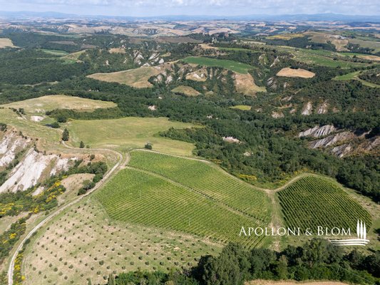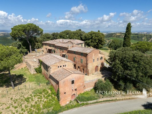 Einzigartige Aussicht, zu renovierendes Bauernhaus mit Weinkeller, alte Bauernhäuser, Trüffelreservat, Weinberg und Olivenhain zu verkaufen in Siena. In einer der faszinierendsten Landschaften der Crete Senesi südlich von Siena, an der Grenze zum Val d'Orcia, mit atemberaubender Aussicht und stimmungsvoller Landschaft, einem Panorama bis nach Montalcino, der Heimat des Brunello-Weins, und den Türmen von Siena. Mehr als 78 Hektar Land mit Seen, Wäldern, Schluchten, Weinbergen, Olivenhainen und einem alten Bauernhof mit Innenhof und Nebengebäuden. Er ist mittelalterlichen Ursprungs und wurde im 19. Jahrhundert als Kloster umgebaut und dann für landwirtschaftliche Zwecke genutzt. Das Gebiet mit seinem idealen Mikroklima ist von jeher für den Weinbau geeignet: Bereits 1695 wurde die Weinproduktion dokumentiert. Heute werden auf 4,8 Hektar, die ab 2023 als biologisch zertifiziert sind, die Rebsorten Sangiovese, Syrah, Canaiolo, Vermentino, Malvasia, Trebbiano und Verdea angebaut, aus denen jährlich etwa 30.000 Flaschen IGT Toscana, aber auch Grappa und Rosébläschen entstehen. Die Weine reifen in Barriques, Tonneaux und französischen Eichenfässern, teilweise in Zement und Stahl. Das Olivenöl ist das Aushängeschild des seit 1886 ausgezeichneten Betriebs: 3,8 Hektar mit 1.500 Olivenbäumen, darunter Moraiolo, Leccino, Frantoio, Pendolino und Correggiolo. Außerdem gibt es mehr als 3 Hektar Trüffelanbaugebiete mit wertvollen weißen, Marzuolo- und Scorzone-Trüffeln. Zu den über 2400 Quadratmeter großen Gebäuden aus Terrakotta-Ziegeln gehören eine Hauptvilla, fünf Ferienwohnungen, ehemalige Lagerhallen und Keller, die sich ideal für Veranstaltungen und Verkostungen eignen, sowie ein historischer Keller mit Gewölbedecken und zwei weitere Wohnungen. Die Immobilien sind sanierungsbedürftig mit PMAA und der Möglichkeit, zwei von ihnen in technologische Keller umzuwandeln. Anwesen mit großem Potenzial, ideal für Gastfreundschaft, Weintourismus und landwirtschaftliche Produktion von Exzellenz.