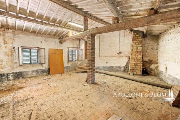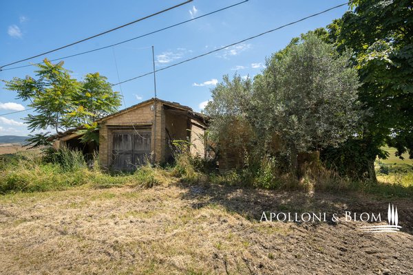 GEBÄUDE F - ehemalige Ofenruinen mit Anbau 210 qm - Losgelöst von der zentralen Anlage, auf den Rinnen der Kreta, in einer dominanten und panoramischen Position, 2 Ruinen eines alten Ofens, auch in der Catasto Leopoldino berichtet und von denen es Fotos, um die Konsistenz zu bezeugen. Vollständig zu planen und zu bauen