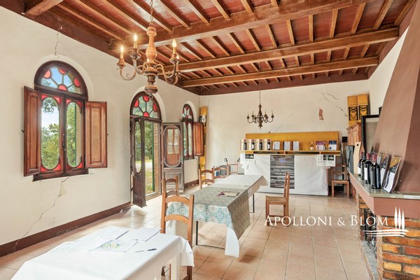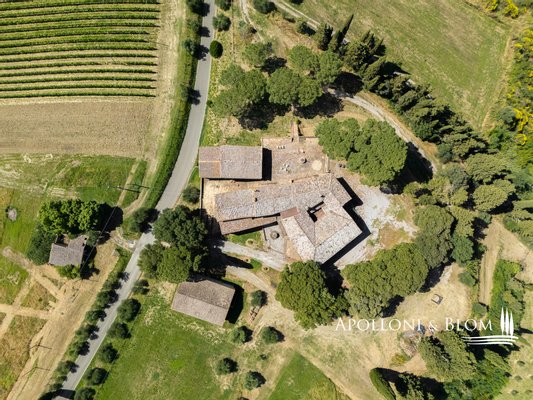 Art: Bauernhof mit insgesamt 2427 Quadratmetern an Gebäuden mit altem Kloster, Kellern und Nebengebäuden, die umgebaut werden können, sowie 78 Hektar Land, das mit Weinbergen, Olivenhainen, Ackerland, Trüffeln und Wald bebaut ist