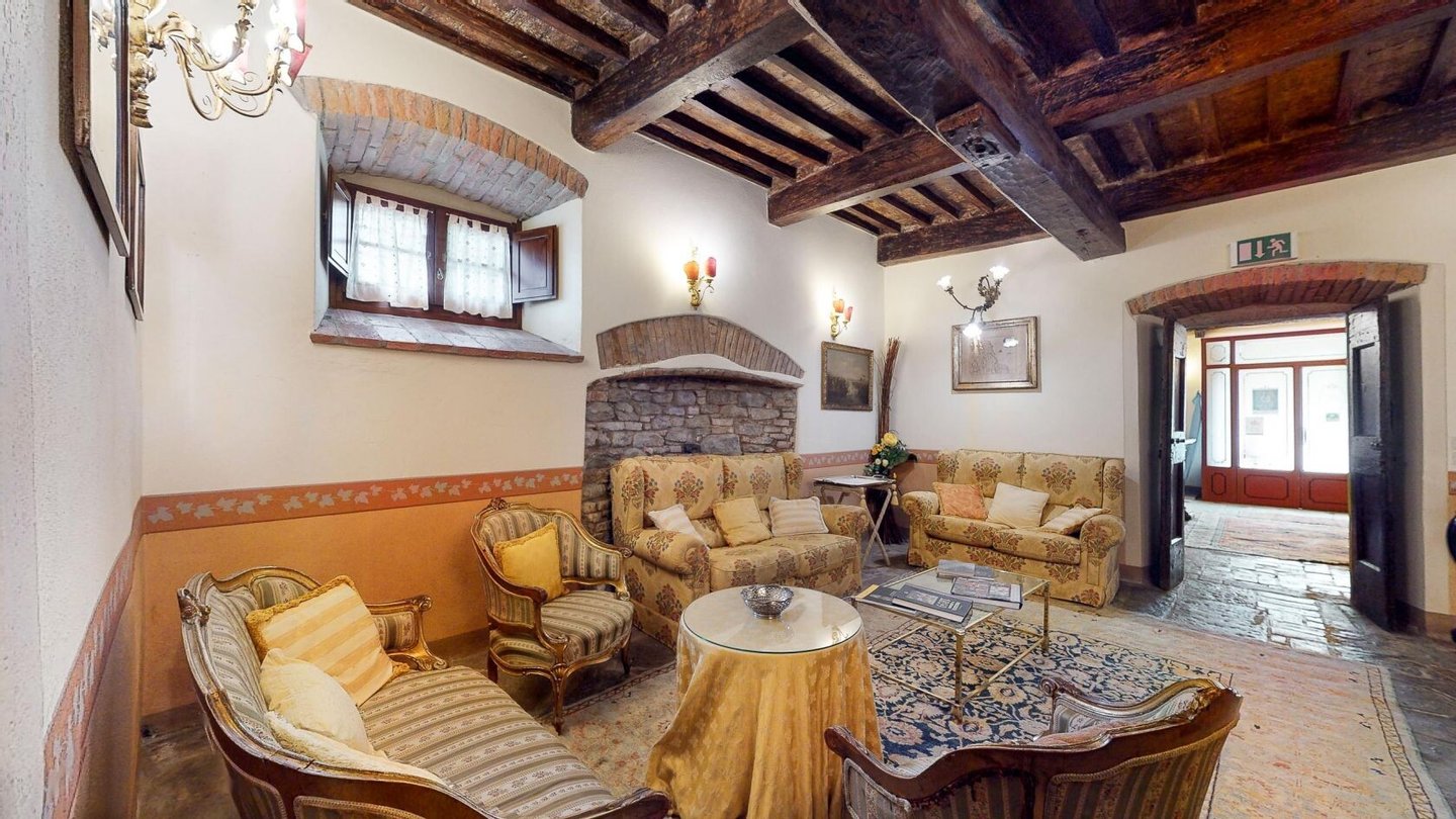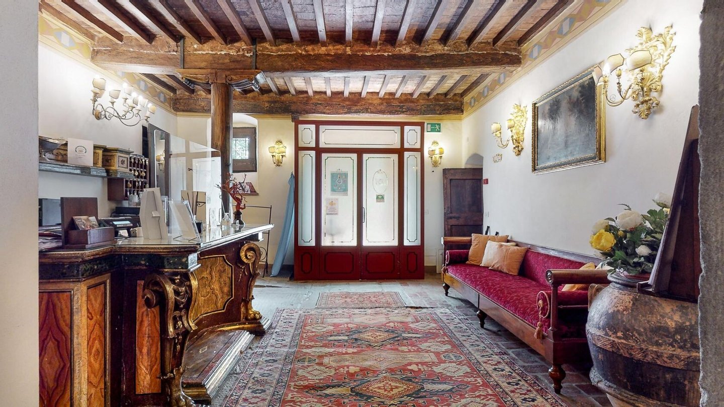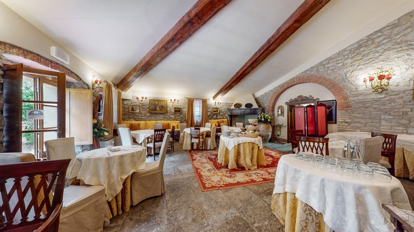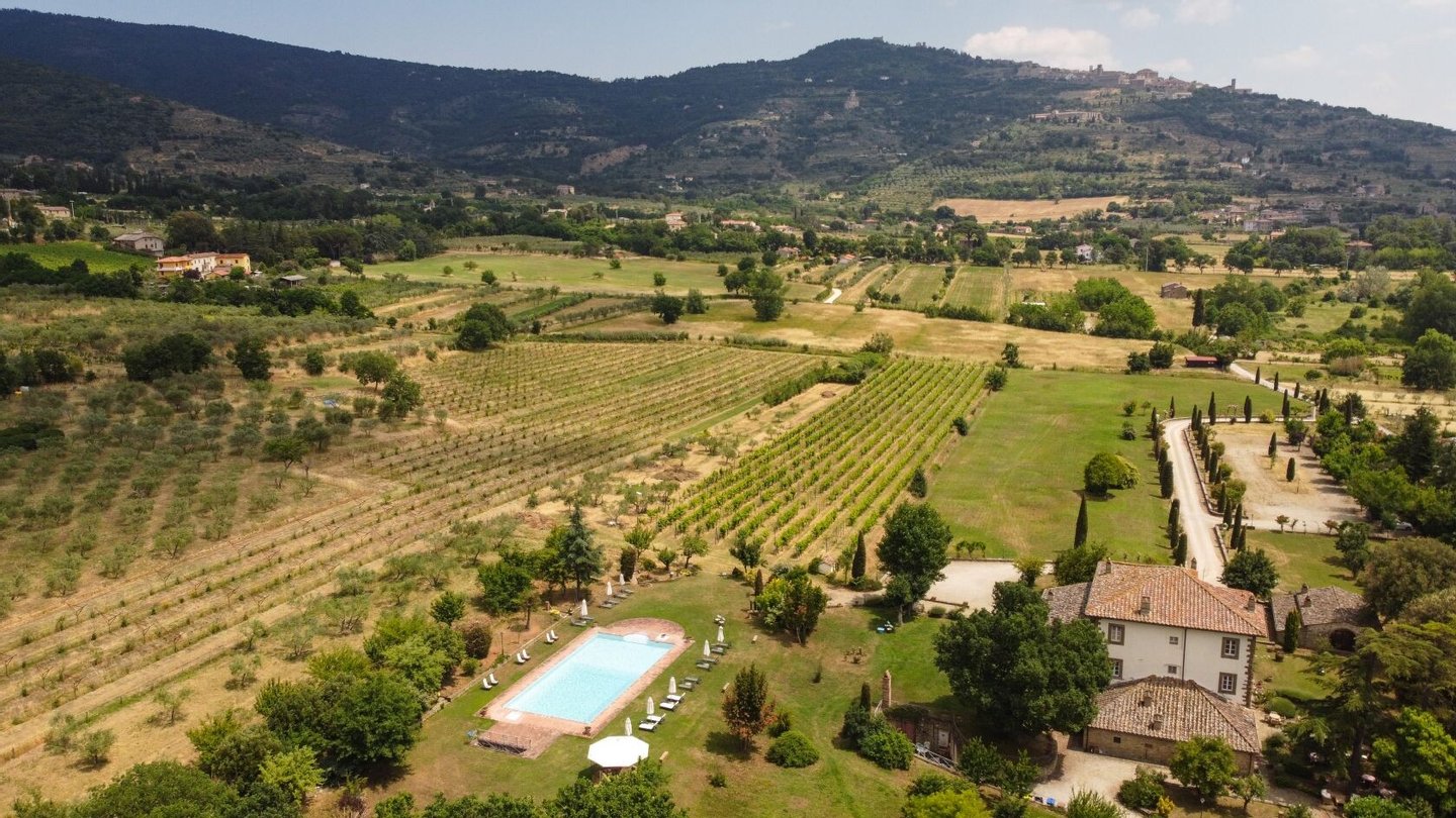 Restaurierter Adelssitz aus dem 18. Jahrhundert in einem charmanten Relais mit Pool und Park zu verkaufen in Cortona, Toskana. Strategisch günstig gelegen, nur 3 km vom historischen Zentrum von Cortona und in unmittelbarer Nähe der wichtigsten historischen, kulturellen und gastronomischen Routen an der Grenze zwischen der Toskana und Umbrien, nur 20 Minuten vom Trasimenischen See und eine halbe Stunde von Montepulciano und dem Val d'Orcia entfernt. Eingebettet in einen Park mit dem unvergleichlichen Panorama der Stadt Cortona am Horizont, ist Villa La Querce ein Herrenhaus aus dem 18. Jahrhundert, das einst die Sommerresidenz einer adligen Familie aus Cortona war. Jahrhundert, die einst Sommerresidenz einer adligen Familie aus Cortona war. Heute ist sie ein bezaubernder Wohnsitz dank einer sorgfältigen Restaurierung, bei der die verputzten, mit Wappen und Steindetails verzierten Fassaden, die Innenräume mit hohen Decken mit freiliegenden Holzbalken, antiken Türen, Wänden und Böden aus Stein aus dem 18. In der Villa La Querce befinden sich im Erdgeschoss die Lobby, die Salons und die Speisesäle, die mit Kaminen und charmanten Dekorationselementen, Fresken, Teppichen und antiken Möbeln geschmückt sind, sowie eine voll ausgestattete Profiküche, drei Doppelzimmer mit Bad und direktem Zugang zum Garten. In den oberen Stockwerken befinden sich weitere zehn Zimmer und Suiten. Alle sind elegant eingerichtet und verfügen über Satellitenfernsehen, Minibar, Safe und geräumige Bäder mit Whirlpool-Badewanne oder Hydromassage-Duschkabine. Im Außenbereich wurde eine Steinhütte mit zwei weiteren Suiten restauriert, eine zweite Hütte beherbergt ein Büro/Rezeption und einen alten Holzofen. Mitten im Grün des Parks, umgeben von jahrhundertealten Eichen, einem Olivenhain und einem kleinen Weinberg, findet der Swimmingpool seinen perfekten Rahmen, zusammen mit einer Sonnenterrasse, die mit handgefertigter Terrakotta gepflastert ist. Vor der Villa befindet sich ein weiteres Gebäude, das im Erdgeschoss einen Servicebereich für das Personal und technische Räume beherbergt, während im Untergeschoss eine große Garage mit Zugangsrampe untergebracht ist. Die Villa La Querce ist heute ein charmantes Relais mit einer treuen internationalen Kundschaft, das sich auch hervorragend als privater Wohnsitz für Familie und Freunde eignet.