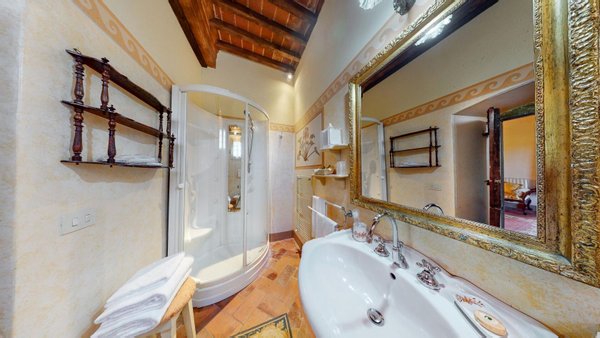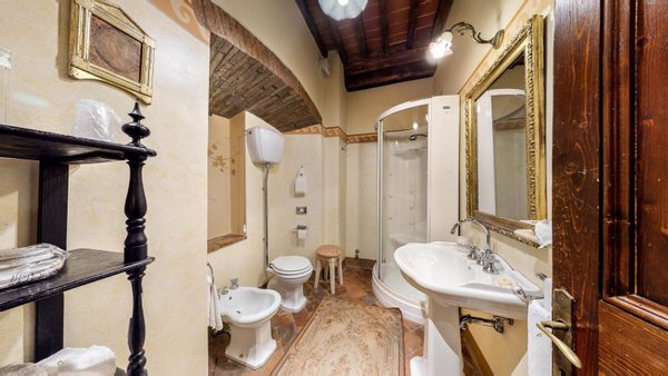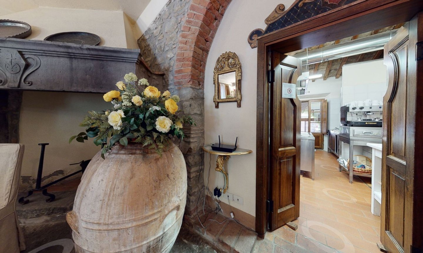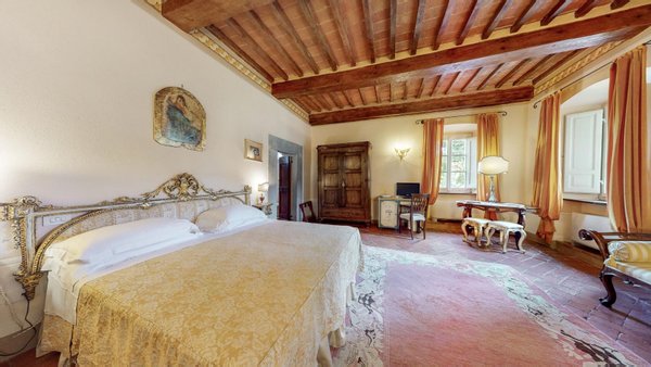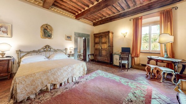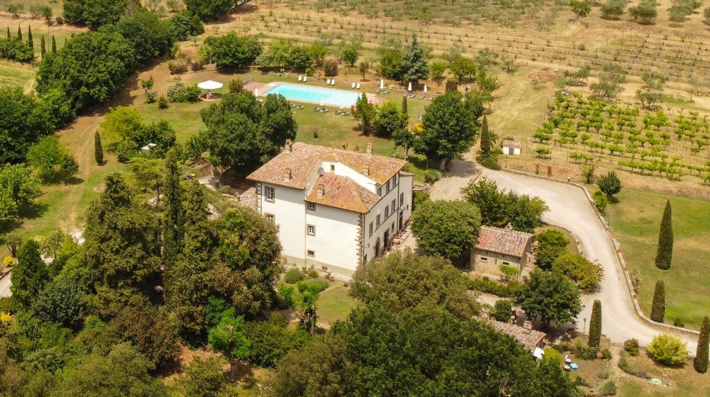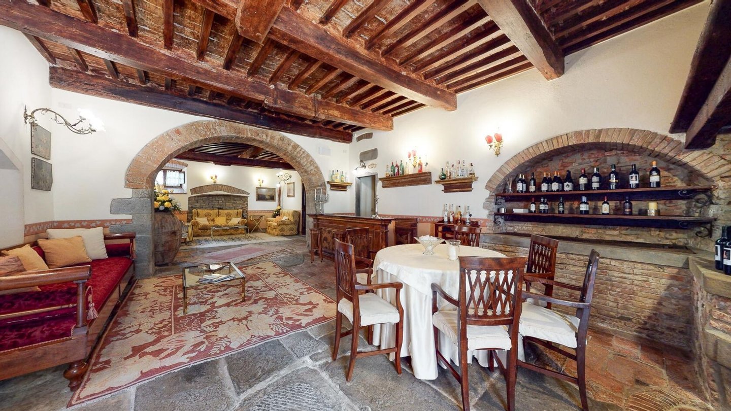 Restaurierter Adelssitz aus dem 18. Jahrhundert in einem charmanten Relais mit Pool und Park zu verkaufen in Cortona, Toskana. Strategisch günstig gelegen, nur 3 km vom historischen Zentrum von Cortona und in unmittelbarer Nähe der wichtigsten historischen, kulturellen und gastronomischen Routen an der Grenze zwischen der Toskana und Umbrien, nur 20 Minuten vom Trasimenischen See und eine halbe Stunde von Montepulciano und dem Val d'Orcia entfernt. Eingebettet in einen Park mit dem unvergleichlichen Panorama der Stadt Cortona am Horizont, ist Villa La Querce ein Herrenhaus aus dem 18. Jahrhundert, das einst die Sommerresidenz einer adligen Familie aus Cortona war. Jahrhundert, die einst Sommerresidenz einer adligen Familie aus Cortona war. Heute ist sie ein bezaubernder Wohnsitz dank einer sorgfältigen Restaurierung, bei der die verputzten, mit Wappen und Steindetails verzierten Fassaden, die Innenräume mit hohen Decken mit freiliegenden Holzbalken, antiken Türen, Wänden und Böden aus Stein aus dem 18. In der Villa La Querce befinden sich im Erdgeschoss die Lobby, die Salons und die Speisesäle, die mit Kaminen und charmanten Dekorationselementen, Fresken, Teppichen und antiken Möbeln geschmückt sind, sowie eine voll ausgestattete Profiküche, drei Doppelzimmer mit Bad und direktem Zugang zum Garten. In den oberen Stockwerken befinden sich weitere zehn Zimmer und Suiten. Alle sind elegant eingerichtet und verfügen über Satellitenfernsehen, Minibar, Safe und geräumige Bäder mit Whirlpool-Badewanne oder Hydromassage-Duschkabine. Im Außenbereich wurde eine Steinhütte mit zwei weiteren Suiten restauriert, eine zweite Hütte beherbergt ein Büro/Rezeption und einen alten Holzofen. Mitten im Grün des Parks, umgeben von jahrhundertealten Eichen, einem Olivenhain und einem kleinen Weinberg, findet der Swimmingpool seinen perfekten Rahmen, zusammen mit einer Sonnenterrasse, die mit handgefertigter Terrakotta gepflastert ist. Vor der Villa befindet sich ein weiteres Gebäude, das im Erdgeschoss einen Servicebereich für das Personal und technische Räume beherbergt, während im Untergeschoss eine große Garage mit Zugangsrampe untergebracht ist. Die Villa La Querce ist heute ein charmantes Relais mit einer treuen internationalen Kundschaft, das sich auch hervorragend als privater Wohnsitz für Familie und Freunde eignet.