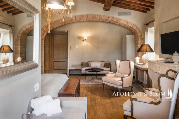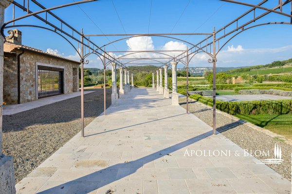Typ: Weingut von ca. 33,81 Hektar mit Weiler für ca. 2633 Quadratmeter Gebäude, bestehend aus 1 Villa auf drei Etagen und 4 restaurierten Bauernhäusern mit 17 Zimmern und Suiten, Büros und Mehrzweckräumen, sowie einem Stall mit Reitzentrum, einer Ölmühle, Weinbergen mit Weinkeller, zusätzlichen Gebäuden für die landwirtschaftliche Nutzung, Park mit italienischem Garten, Schwimmbad mit Poolhaus, Tennis, Volleyball, Golf und Heliport