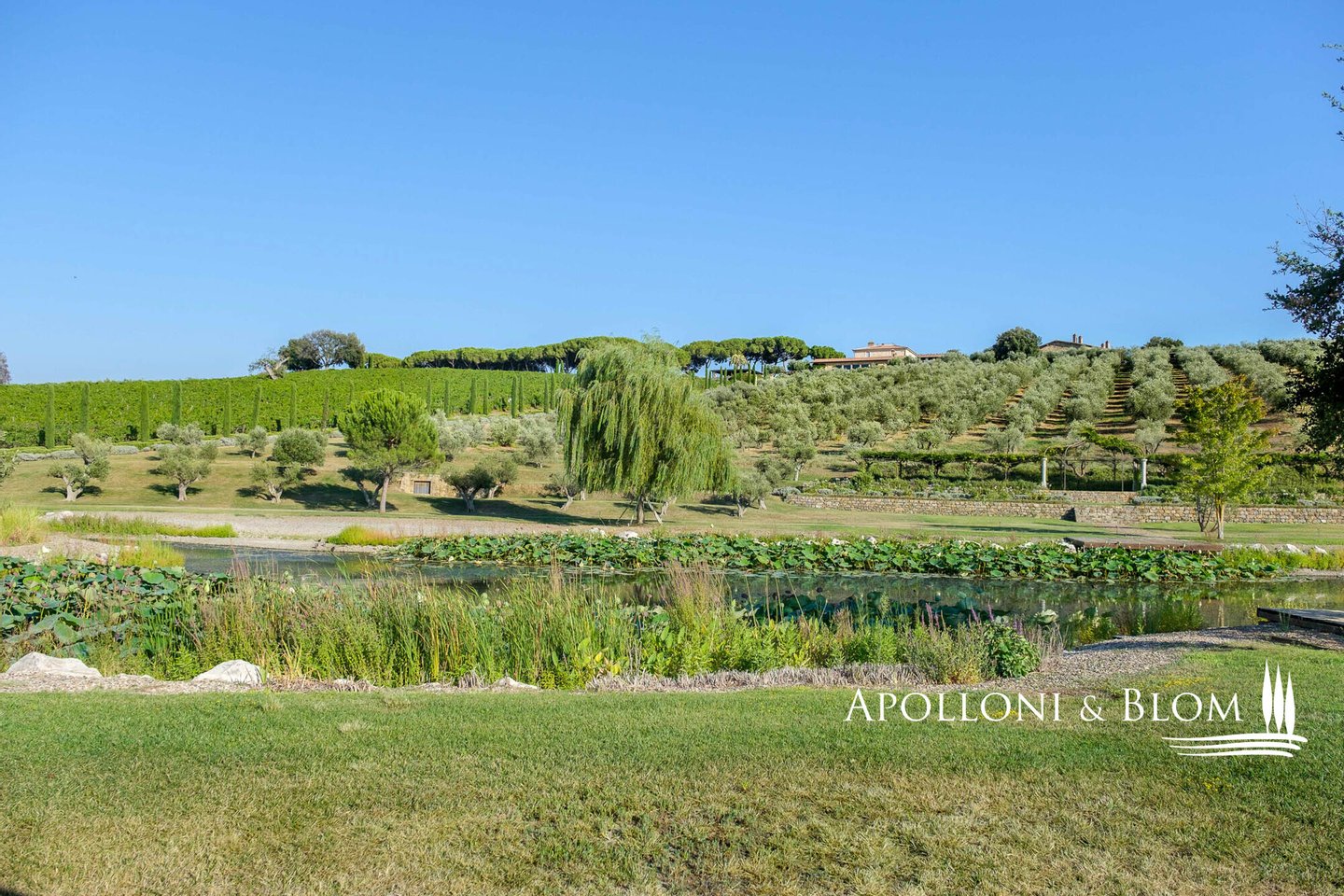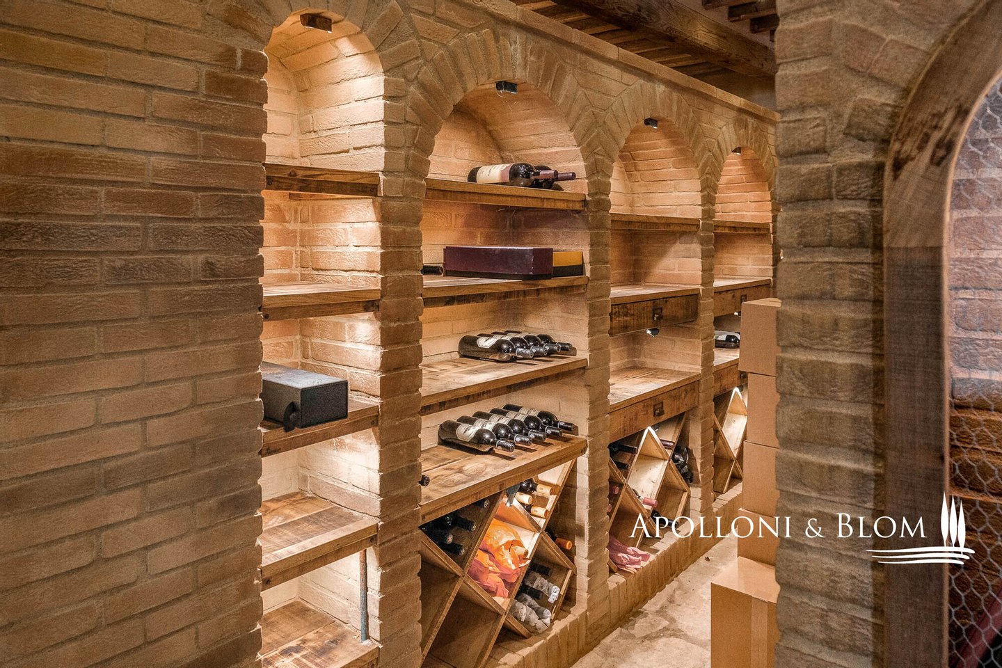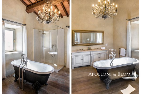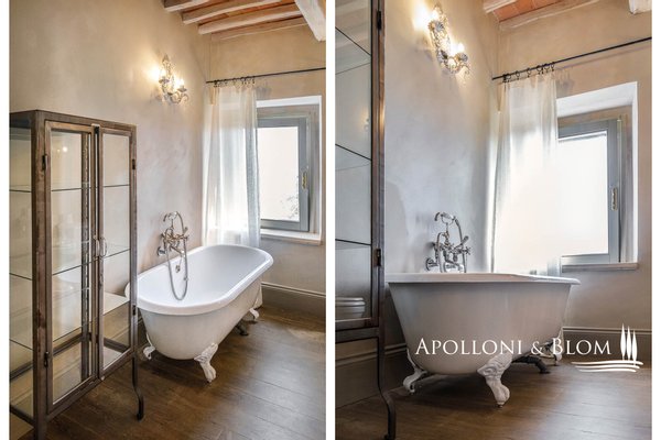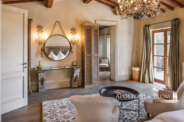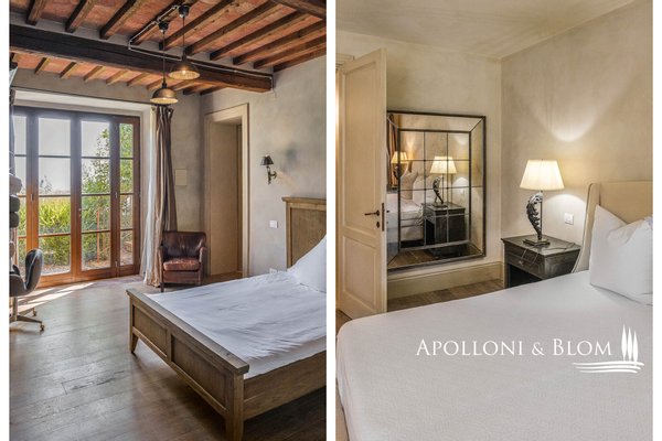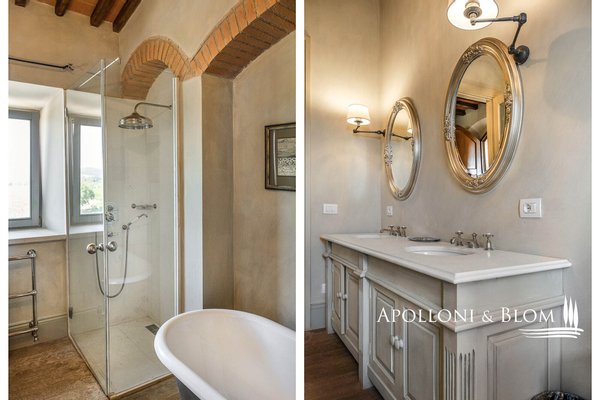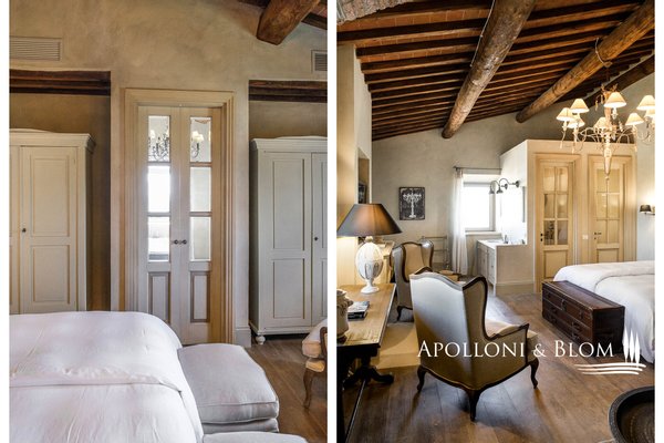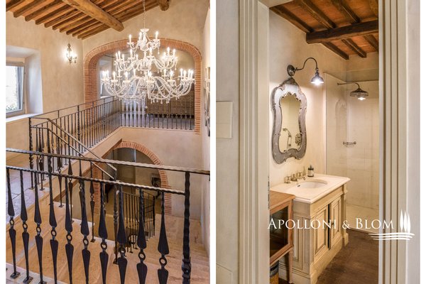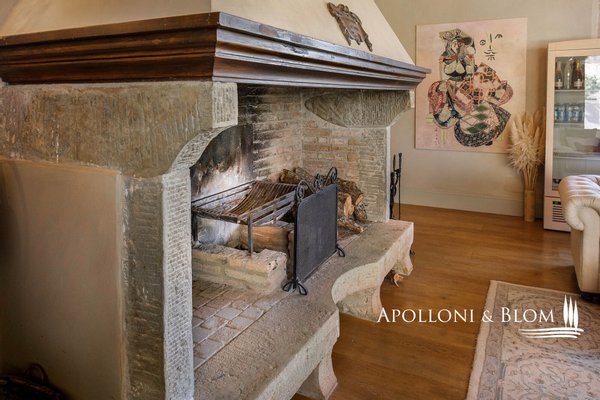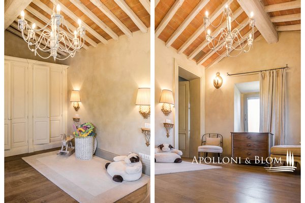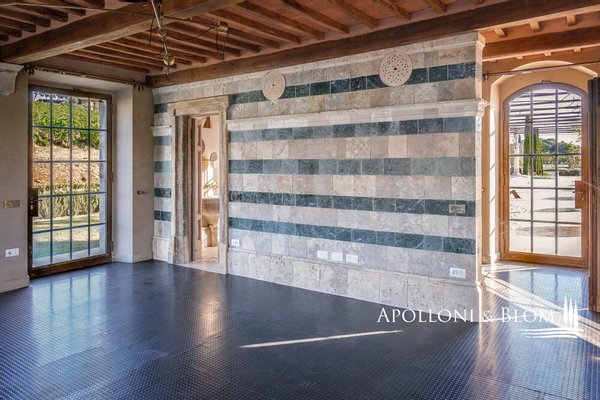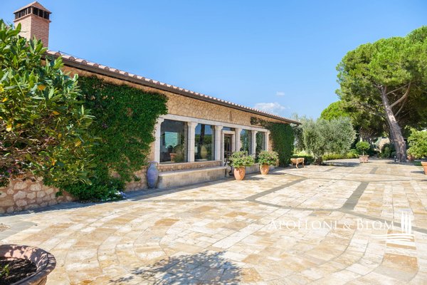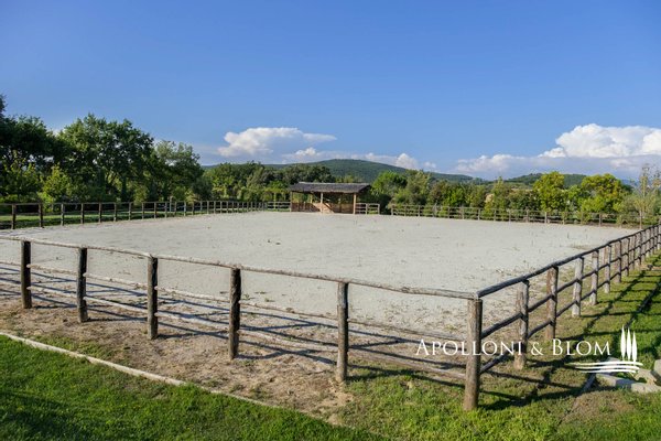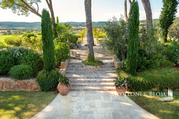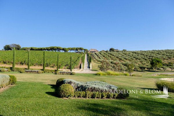 Land: 33,81 Hektar einschließlich des Parks, ein Gemüsegarten mit einem Obstgarten von ca. 1 Hektar, 20,7 Hektar Ackerland, 7,4 Hektar Olivenhain mit 1.100 Bäumen, 3,7 Hektar Ackerland mit Baumbestand und Wald, 2,7 Hektar Weinberg mit Sangiovese, Merlot und Cabernet Sauvignon