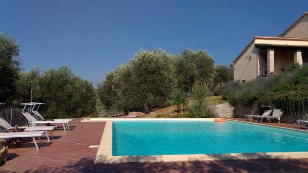 Typ: 370 m² zweistöckiges, restauriertes Landhaus mit 4 eigenständigen Einheiten auf 1 ha Land mit Schwimmbad und jahrhundertealtem Olivenhain, möbliert