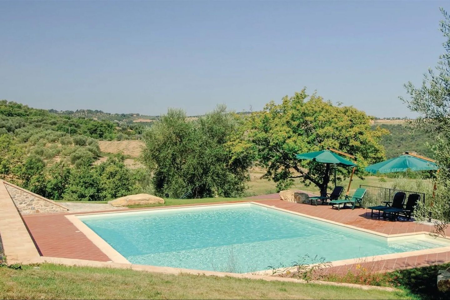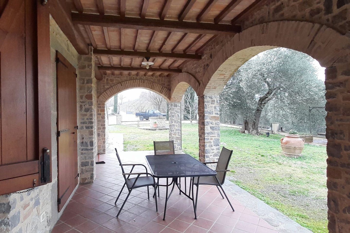 Land: 1 ha, davon 100 m² Weinberg für die interne Produktion und 300 jahrhundertealte Olivenbäume. Möglichkeit zum Erwerb von 16,8 ha, davon 6 ha Seggianese Olivastra Olivenhaine, 3 ha Gehölze und der Rest Ackerland