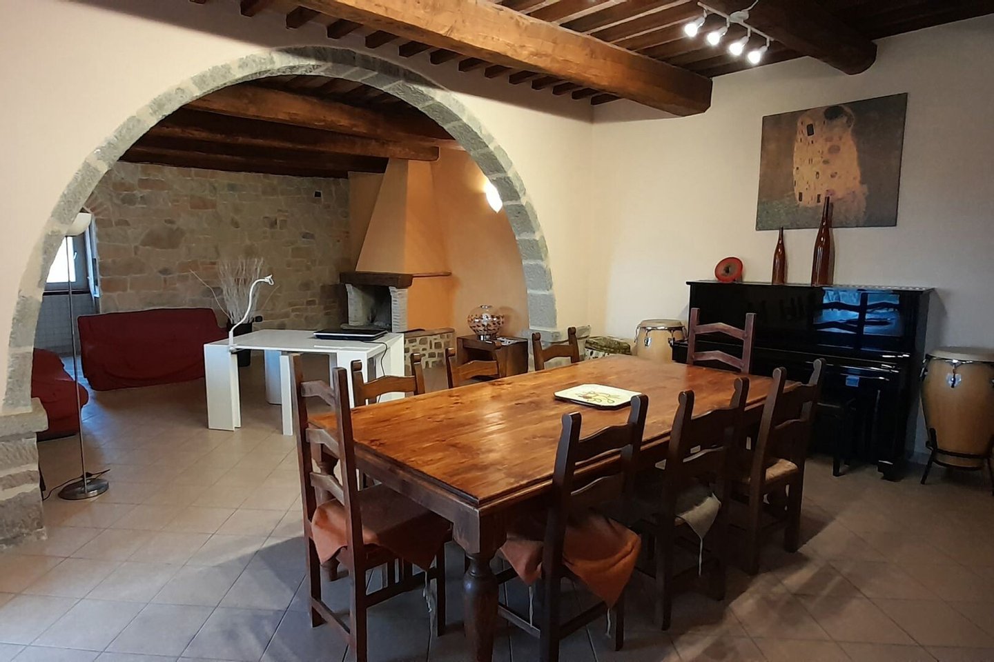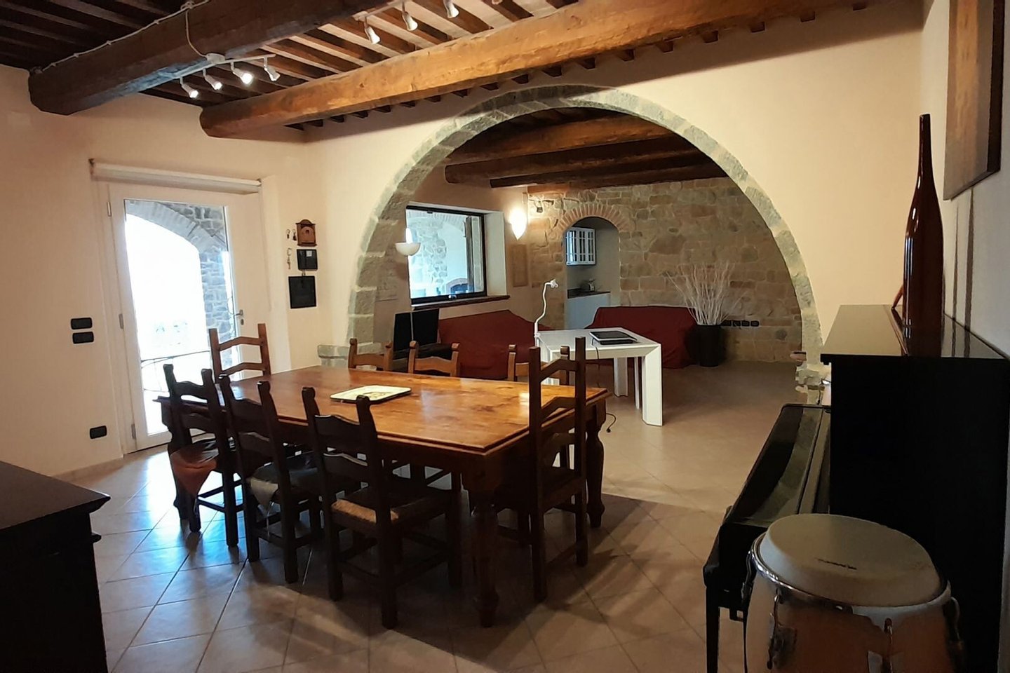 Vollständig restauriertes altes Landhaus, Energieeffizienzklasse A3, mit Schwimmbad und jahrhundertealtem Olivenhain in Castel del Piano, Grosseto, zu verkaufen. Eingebettet in die sanften Hügel am Fuße des Monte Amiata, in einer dominanten und panoramischen Position, ist La Gabella ein Bauernhaus aus Stein, das auf das Jahr 1200 zurückgeht. Seine schlichte Form zeugt von seinem Ursprung, der seit 1215 dokumentiert ist, als Grenzstation für die Entrichtung der Zölle zwischen der Republik Siena und dem Kirchenstaat. Es ist vollständig eingezäunt und über einen 1,3 km langen, gut gepflegten Feldweg zu erreichen. Das Haus wurde vor kurzem für Wohn- und Gaststättenzwecke restauriert und ist sowohl außen als auch innen mit Gips und Stein verkleidet; die Decken sind mit den für die ländliche toskanische Architektur typischen Holzbalken und Terrakottafliesen versehen, dazwischen befinden sich Steinbögen, die den Wohnbereich in einzelne Räume unterteilen. Die Böden sind mit wunderschönen handgefertigten Terrakotta- und Keramikfliesen belegt. Das Haus ist in vier Einheiten der Energieklasse A3 und D unterteilt, die getrennt sind, aber bei Bedarf leicht zusammengelegt werden können. Die Hauptwohnung befindet sich im ersten Stock, während das Erdgeschoss in eine größere Wohnung und zwei Mini-Wohnungen unterteilt ist. Das Bauernhaus verfügt außerdem über einen Keller, eine Terrasse, die die Hauptfassade einnimmt, und eine gemütliche Veranda mit Blick auf den Swimmingpool. Das Schwimmbad hat eine römische Treppe und eine gepflasterte Sonnenterrasse, von der aus man eine atemberaubende Aussicht genießen kann. Das Anwesen befindet sich auf einem ca. 1 Hektar großen Grundstück, zu dem auch ein Weinberg für den Eigenanbau und ein Olivenhain mit 30 Jahrhunderte alten Olivenbäumen gehören. Es besteht auch die Möglichkeit, das gesamte Unternehmen zu erwerben, einschließlich einer renommierten Ölmühle und bis zu 16,8 Hektar Land.