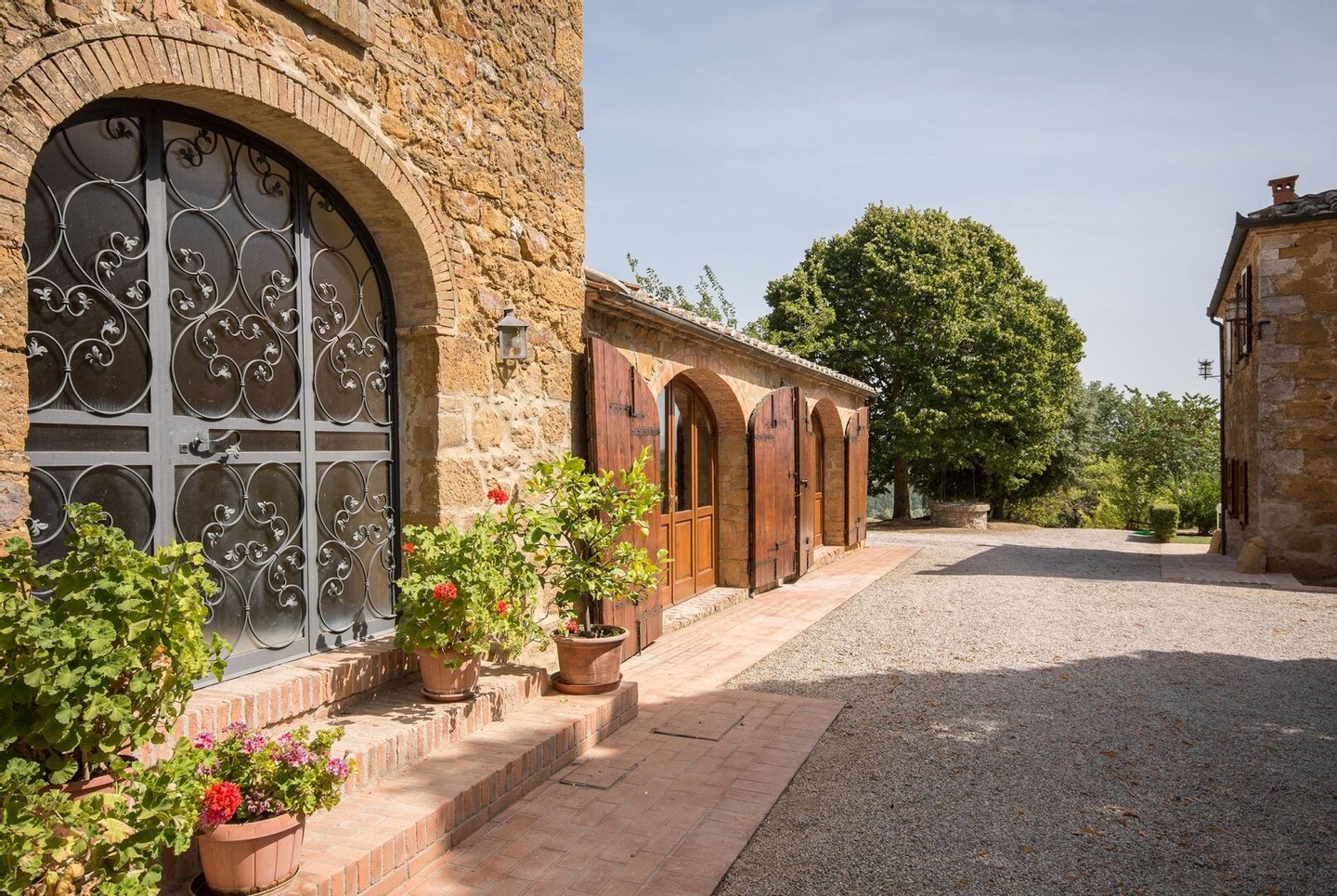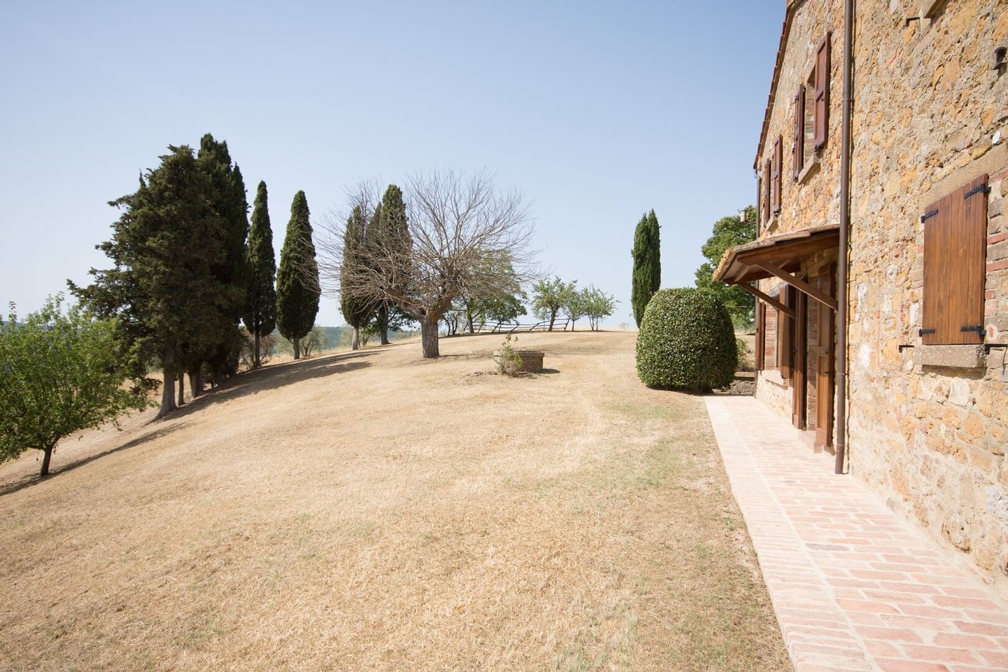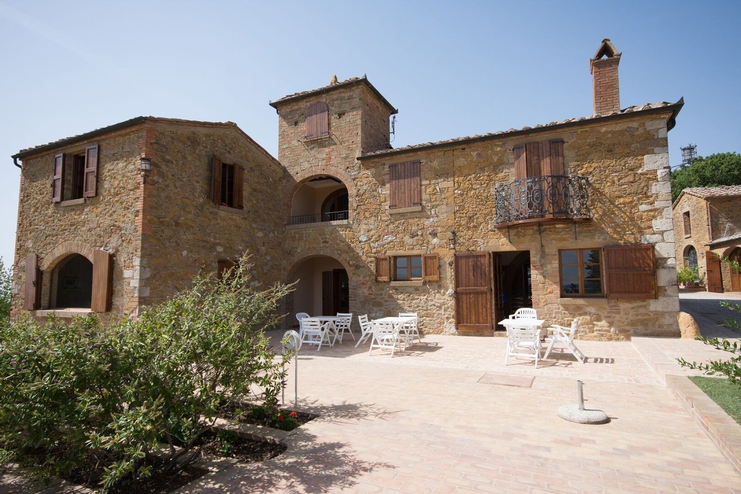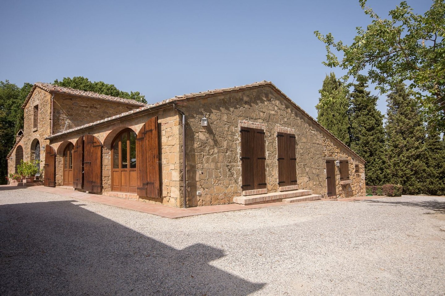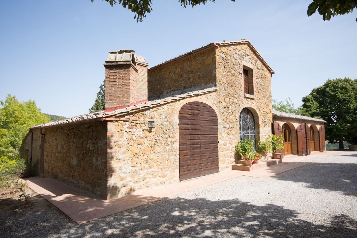 Renoviertes Bauernhaus aus dem 19. Jahrhundert mit zwei Nebengebäuden, Garten mit Schwimmbad, Nebengebäuden und Ackerland zwischen Pienza und Montepulciano, Siena, zu verkaufen. Zwischen dem Val d'Orcia und dem Valdichiana, südlich von Siena, in den Hügeln zwischen Pienza und Montepulciano, auf 3,8 Hektar privatem Land, ist Casale Montecchi ein ehemaliges Bauernhaus aus dem 19. Jahrhundert auf zwei Ebenen mit Steinfassaden, renoviert im Jahr 2017 unter Beibehaltung der Loggien, Bögen und einem kleinen Turm auf dem Dach und beherbergt eine elegante Residenz im rustikalen toskanischen Stil mit Wohnräumen mit Kaminen, freiliegenden Holzbalkendecken und majestätischen Ziegelbögen. Alle Einbauten sind aus traditionellem Holz und haben Doppelverglasung, jedes Zimmer hat viel natürliches Licht und große Fenster bieten einen Panoramablick auf den Garten und die sanften Hügel der sienesischen Landschaft. Im ersten Stock gibt es ein Hauptschlafzimmer mit Zugang zu einem Balkon, ein komplett mit Marmor verkleidetes Bad mit Doppelwaschbecken, Badewanne und Dusche, eine Garderobe, drei weitere Schlafzimmer und zwei Bäder. Der gleiche rustikale Stil wurde für die beiden Gästewohnungen gewählt, eine davon mit direktem Zugang zum Pool, beide mit zwei Zimmern, großen Öffnungen und Kaminen. Der Garten wurde mit Ziegeln und Rasenterrassen angelegt, die über Stufen zum Pool führen. Ein Schuppen/Garage von über 100 Quadratmetern, ein zweites landwirtschaftliches Nebengebäude für die Lagerung, ein Brunnen und ein Olivenhain vervollständigen Casale Montecchi, ein bezaubernder Ort in ruhiger und zurückhaltender Lage, aber in der Nähe aller wichtigen Kunstzentren und Dienstleistungen, ideal für das Leben mit Familie und Freunden oder für kurze touristische Vermietungen und die Beherbergung von Reisenden aus der ganzen Welt für ihren Urlaub.