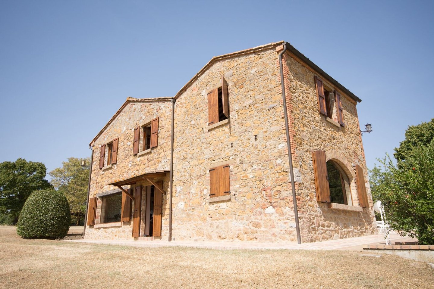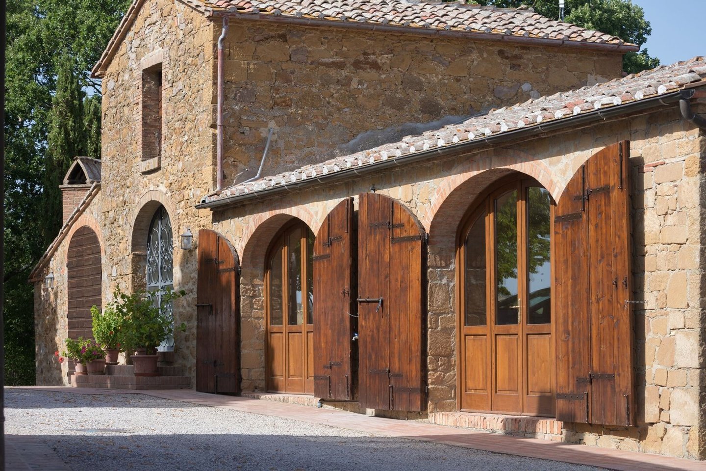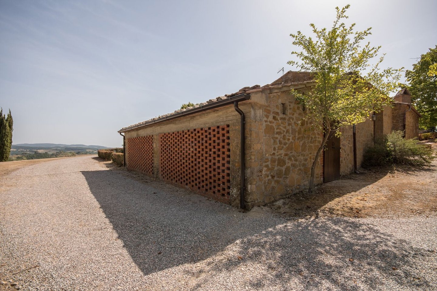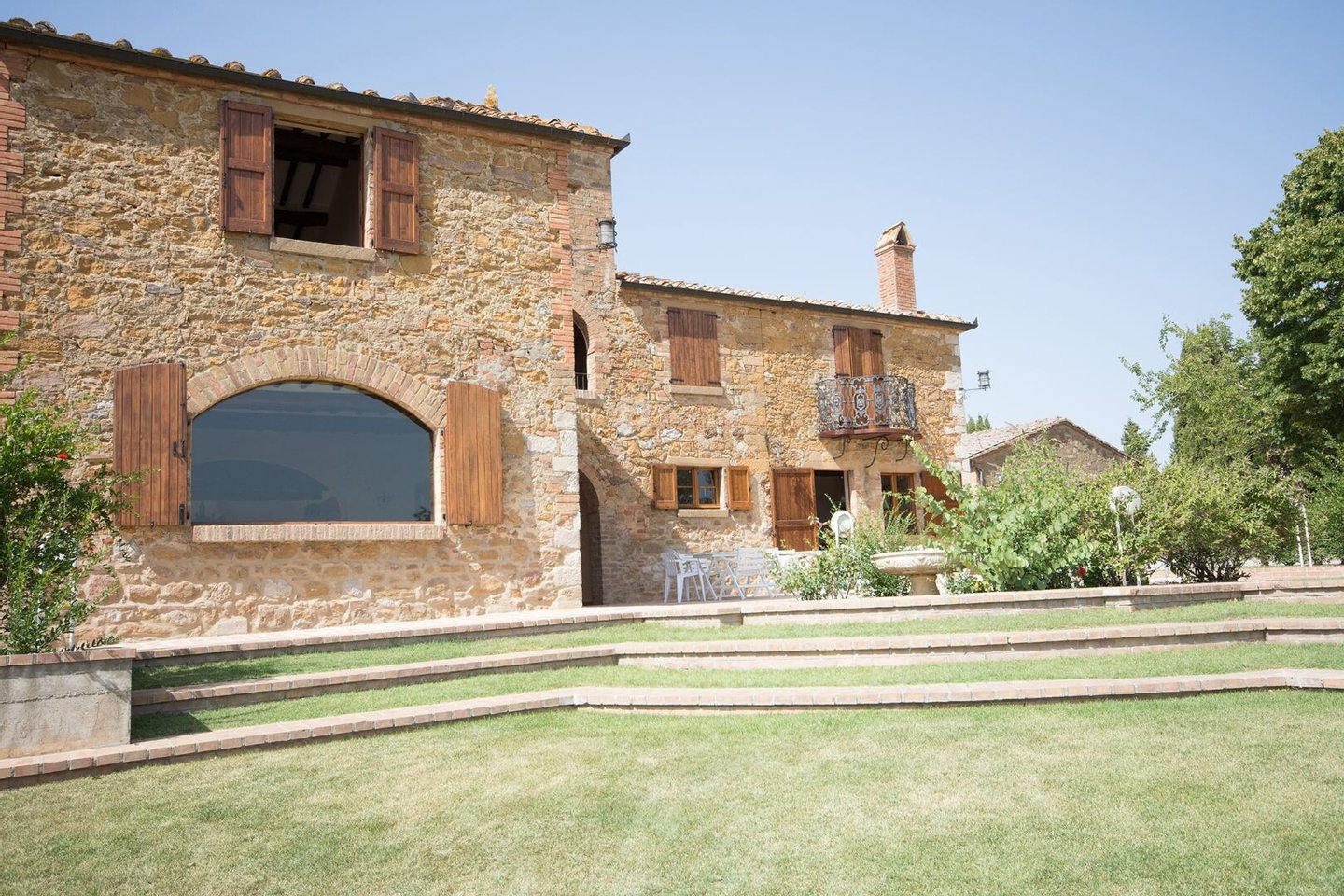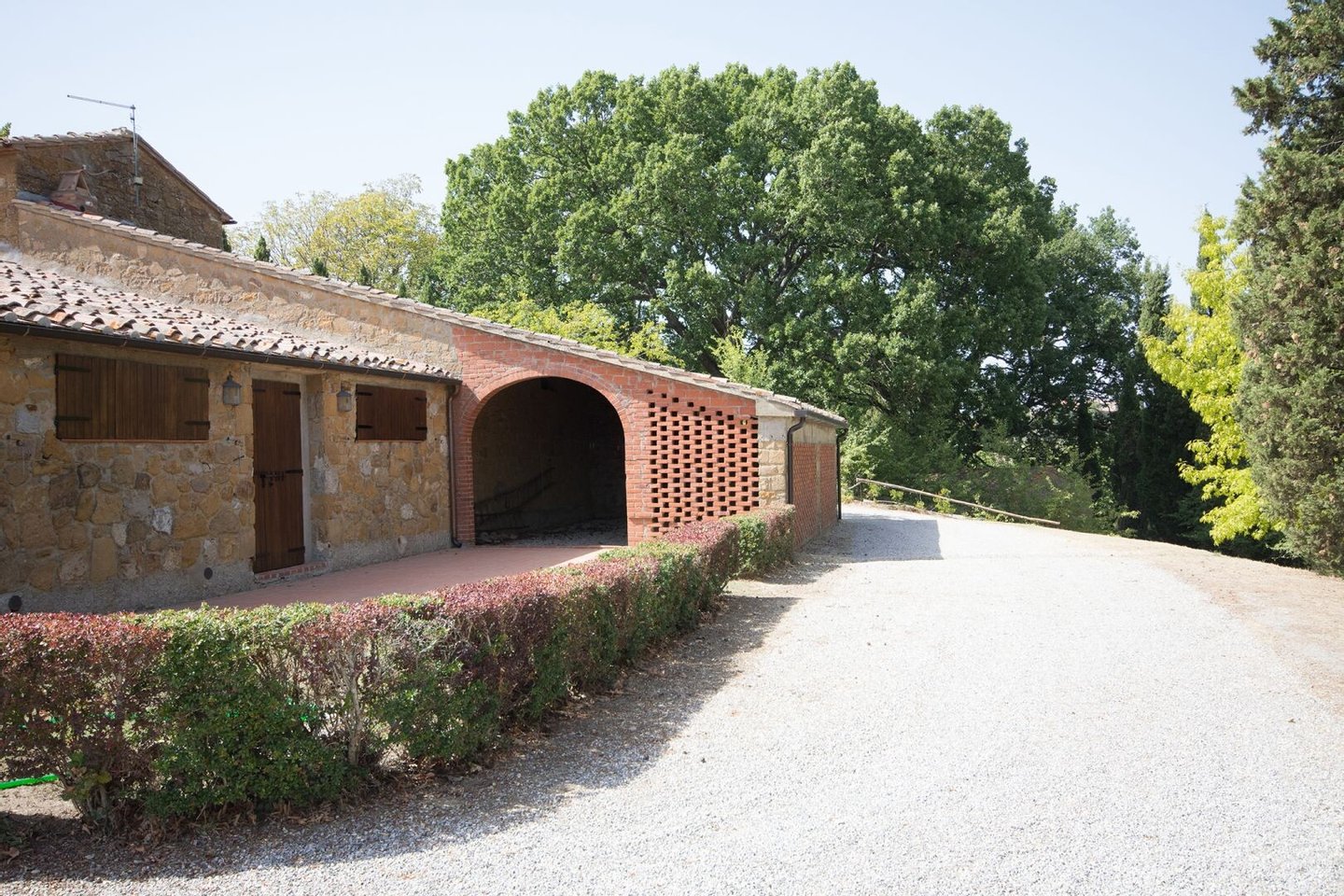 Renoviertes Bauernhaus aus dem 19. Jahrhundert mit zwei Nebengebäuden, Garten mit Schwimmbad, Nebengebäuden und Ackerland zwischen Pienza und Montepulciano, Siena, zu verkaufen. Zwischen dem Val d'Orcia und dem Valdichiana, südlich von Siena, in den Hügeln zwischen Pienza und Montepulciano, auf 3,8 Hektar privatem Land, ist Casale Montecchi ein ehemaliges Bauernhaus aus dem 19. Jahrhundert auf zwei Ebenen mit Steinfassaden, renoviert im Jahr 2017 unter Beibehaltung der Loggien, Bögen und einem kleinen Turm auf dem Dach und beherbergt eine elegante Residenz im rustikalen toskanischen Stil mit Wohnräumen mit Kaminen, freiliegenden Holzbalkendecken und majestätischen Ziegelbögen. Alle Einbauten sind aus traditionellem Holz und haben Doppelverglasung, jedes Zimmer hat viel natürliches Licht und große Fenster bieten einen Panoramablick auf den Garten und die sanften Hügel der sienesischen Landschaft. Im ersten Stock gibt es ein Hauptschlafzimmer mit Zugang zu einem Balkon, ein komplett mit Marmor verkleidetes Bad mit Doppelwaschbecken, Badewanne und Dusche, eine Garderobe, drei weitere Schlafzimmer und zwei Bäder. Der gleiche rustikale Stil wurde für die beiden Gästewohnungen gewählt, eine davon mit direktem Zugang zum Pool, beide mit zwei Zimmern, großen Öffnungen und Kaminen. Der Garten wurde mit Ziegeln und Rasenterrassen angelegt, die über Stufen zum Pool führen. Ein Schuppen/Garage von über 100 Quadratmetern, ein zweites landwirtschaftliches Nebengebäude für die Lagerung, ein Brunnen und ein Olivenhain vervollständigen Casale Montecchi, ein bezaubernder Ort in ruhiger und zurückhaltender Lage, aber in der Nähe aller wichtigen Kunstzentren und Dienstleistungen, ideal für das Leben mit Familie und Freunden oder für kurze touristische Vermietungen und die Beherbergung von Reisenden aus der ganzen Welt für ihren Urlaub.