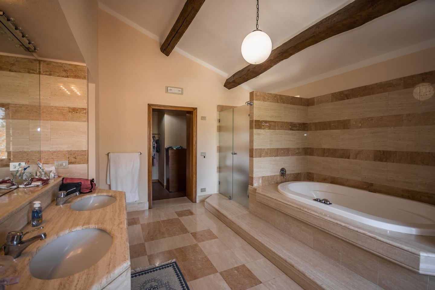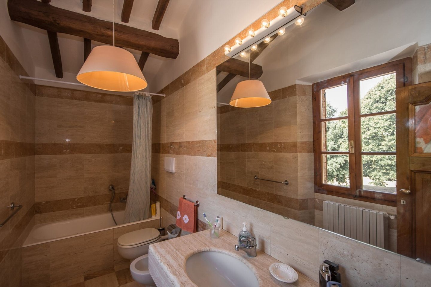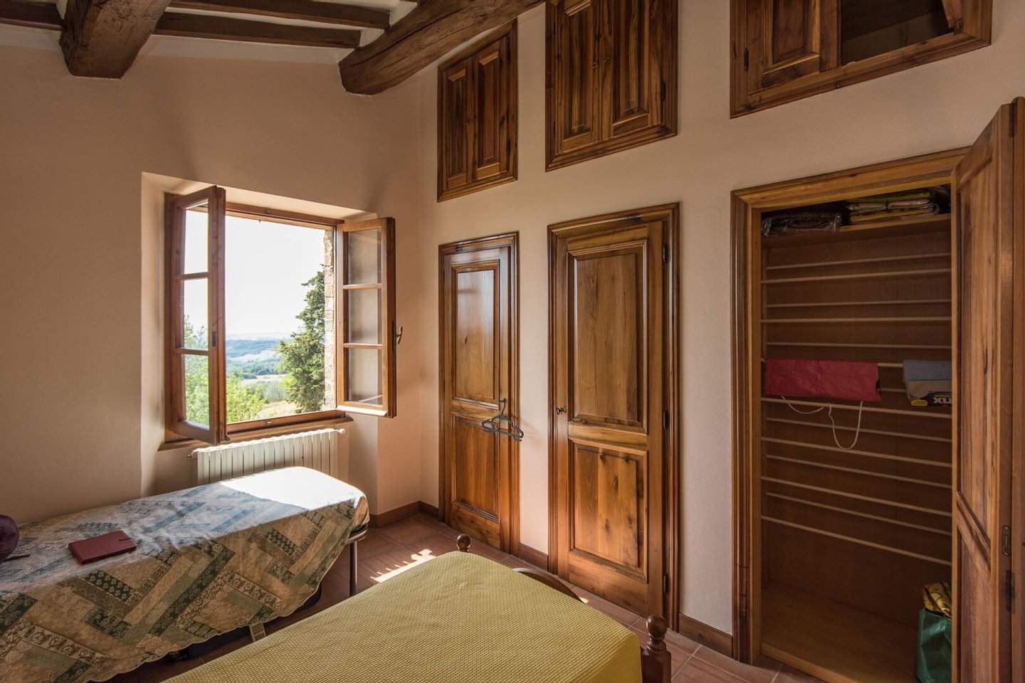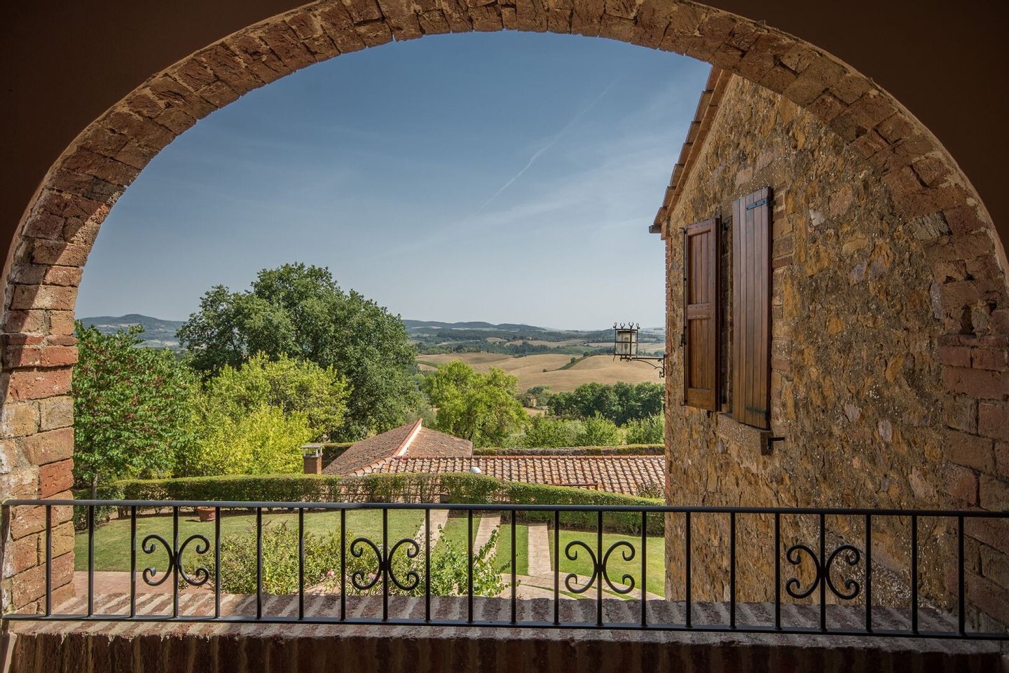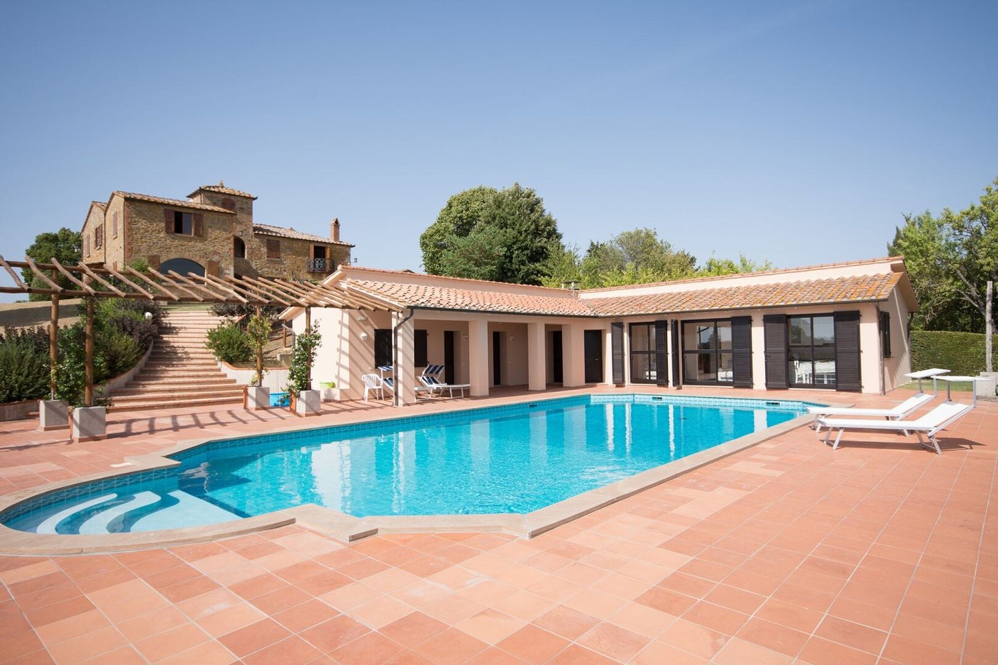 Renoviertes Bauernhaus aus dem 19. Jahrhundert mit zwei Nebengebäuden, Garten mit Schwimmbad, Nebengebäuden und Ackerland zwischen Pienza und Montepulciano, Siena, zu verkaufen. Zwischen dem Val d'Orcia und dem Valdichiana, südlich von Siena, in den Hügeln zwischen Pienza und Montepulciano, auf 3,8 Hektar privatem Land, ist Casale Montecchi ein ehemaliges Bauernhaus aus dem 19. Jahrhundert auf zwei Ebenen mit Steinfassaden, renoviert im Jahr 2017 unter Beibehaltung der Loggien, Bögen und einem kleinen Turm auf dem Dach und beherbergt eine elegante Residenz im rustikalen toskanischen Stil mit Wohnräumen mit Kaminen, freiliegenden Holzbalkendecken und majestätischen Ziegelbögen. Alle Einbauten sind aus traditionellem Holz und haben Doppelverglasung, jedes Zimmer hat viel natürliches Licht und große Fenster bieten einen Panoramablick auf den Garten und die sanften Hügel der sienesischen Landschaft. Im ersten Stock gibt es ein Hauptschlafzimmer mit Zugang zu einem Balkon, ein komplett mit Marmor verkleidetes Bad mit Doppelwaschbecken, Badewanne und Dusche, eine Garderobe, drei weitere Schlafzimmer und zwei Bäder. Der gleiche rustikale Stil wurde für die beiden Gästewohnungen gewählt, eine davon mit direktem Zugang zum Pool, beide mit zwei Zimmern, großen Öffnungen und Kaminen. Der Garten wurde mit Ziegeln und Rasenterrassen angelegt, die über Stufen zum Pool führen. Ein Schuppen/Garage von über 100 Quadratmetern, ein zweites landwirtschaftliches Nebengebäude für die Lagerung, ein Brunnen und ein Olivenhain vervollständigen Casale Montecchi, ein bezaubernder Ort in ruhiger und zurückhaltender Lage, aber in der Nähe aller wichtigen Kunstzentren und Dienstleistungen, ideal für das Leben mit Familie und Freunden oder für kurze touristische Vermietungen und die Beherbergung von Reisenden aus der ganzen Welt für ihren Urlaub.