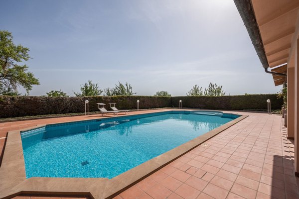Typ: Bauernhaus mit Türmchen von 357 m², zwei Nebengebäude von 270 und 84 m², Lager/Garage, Schwimmbad und Garten, Land mit Olivenhain und Wald