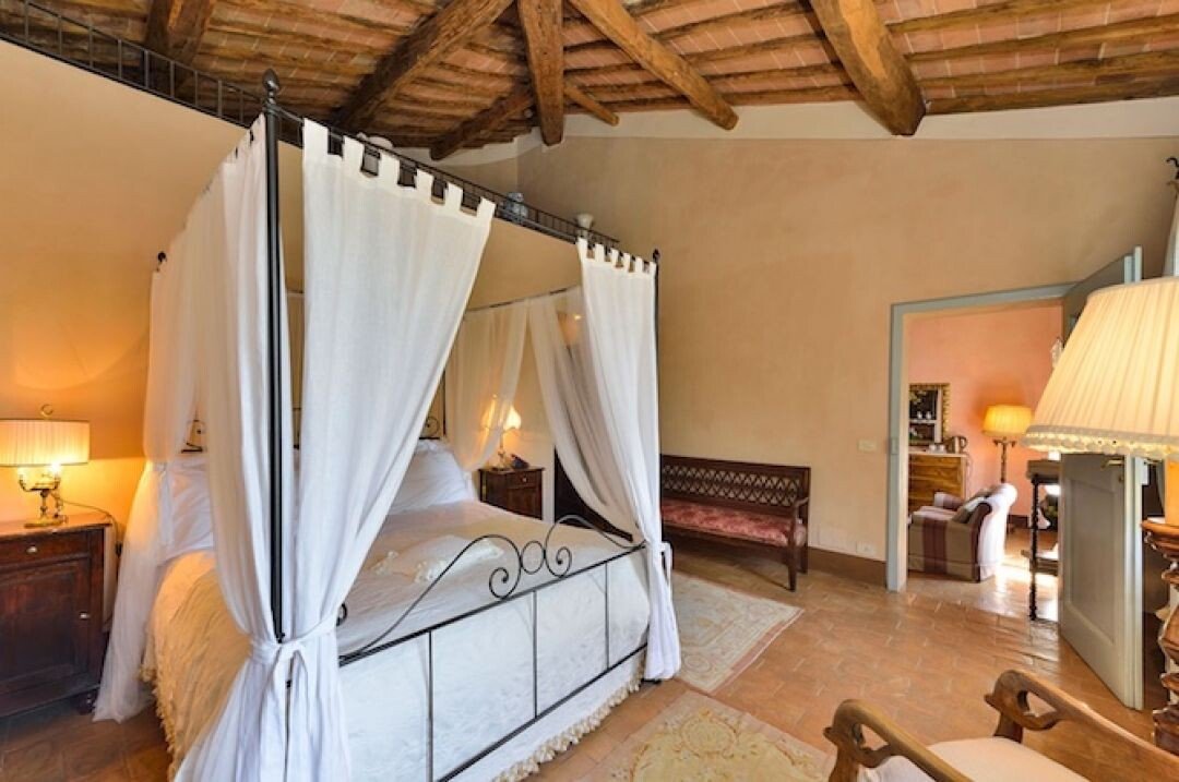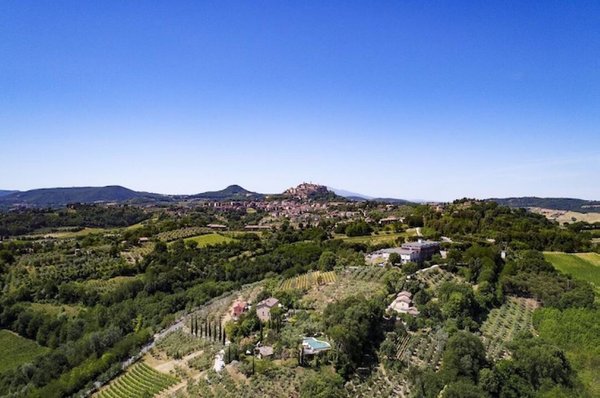 Ein Adelssitz aus dem 16. Jahrhundert mit Park in Montepulciano. Heute finden wir ein wunderbares Luxusrelais voller Charakter und Geschichte, mitten im Grünen, nur einen Steinwurf vom berühmten Borgo di Montepulciano entfernt: ein mittelalterliches Städtchen von seltener Schönheit, das auf einem Hügel thront und mit eleganten Renaissancepalästen, alten Kirchen, herrlichen Plätzen und kleinen versteckten Winkeln bereichert ist. Seine strategische Lage macht es zu einem idealen Ausgangspunkt für die Entdeckung dieser schönen Ecke der Toskana. Das harmonische Pienza, der Kurort Bagno Vignoni, das berühmte Montalcino und viele andere bezaubernde Dörfer sind von hier aus leicht zu erreichen. Bis zum Ende des 19. Jahrhunderts war es der Landsitz einer adligen Polizianer-Familie. Der Bau geht auf das späte 16. Jahrhundert zurück, aber die unterirdischen Gänge, die heute in die Keller der Villa integriert sind, lassen die Ursprünge des Anwesens auf die Zeit der Etrusker zurückgehen. Es besteht aus einer Hauptvilla, Nebengebäuden, einem Restaurant und einem herrlichen Panoramaschwimmbad und ist von verschiedenen Gartentypen umgeben: dem toskanischen Garten, der von Olivenbäumen und Blumen umgeben ist und zum Infinity-Pool führt; dem italienischen Garten mit einem Travertinbrunnen und einem Rosengarten mit roten und weißen Rosen; und den kleineren Gärten rund um das Hauptgebäude, in denen man auch speisen kann. Insgesamt umfassen die Villa und das Gästehaus 13 Zimmer, plus die Flaggschiff-Suite Casa Albero, die sich inmitten des Olivenhains befindet und die neueste Ergänzung im Jahr 2019 ist, eine moderne Struktur, die maximale Privatsphäre für diejenigen garantiert, die ein romantisches Erlebnis genießen möchten. Die Suite bietet von drei Seiten Blick auf die Landschaft und verfügt über eine große Terrasse, auf der man sich tagsüber entspannen und abends den Sternenhimmel beobachten kann Die Villa und ihr Komplex sind eine hervorragende Investition, um an einem magischen Ort in einem einzigartigen Gebiet zu leben und zu arbeiten.