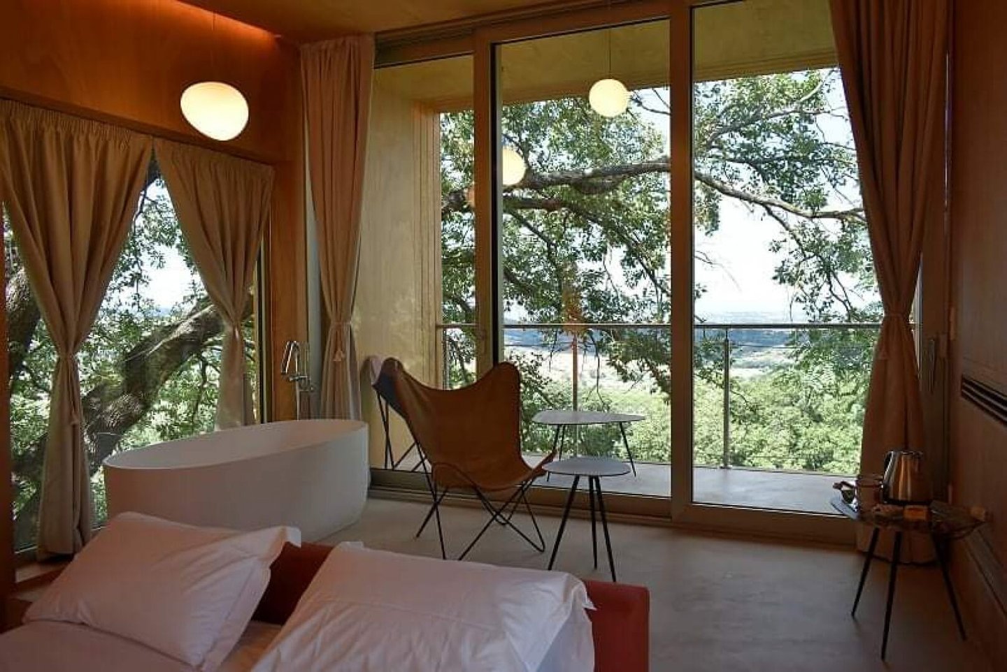 Nebengebäude: Gebäude von ca. 150 qm auf zwei Ebenen; Holzsuite von ca. 36 qm in Energieklasse A, ökologisch; Cottage von ca. 80 qm; ein weiteres Gebäude von ca. 150 qm mit Restaurant, Küche und einer Wohnung, alle schallisoliert; schließlich ein Nebengebäude von ca. 30 qm mit Außenofen; private Kapelle; Möglichkeit von 6/7 Zimmern mit eigenem Bad