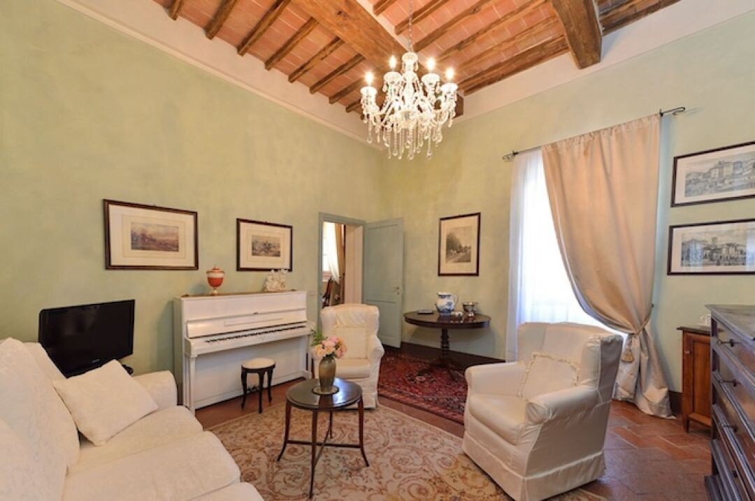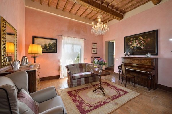 Land/Garten: ca. 3,5 Hektar, davon 9.700 qm Weinberg mit Sangiovese, Mammolo, Colorino Trauben und ein Olivenhain mit 450 Olivenbäumen. Ein schöner Park umgibt das Anwesen.