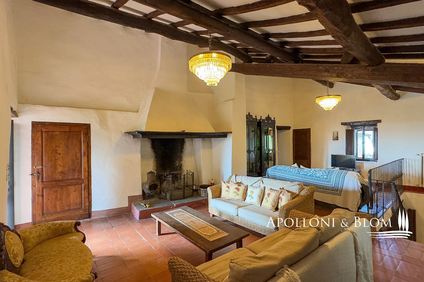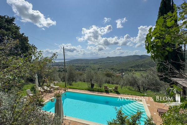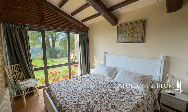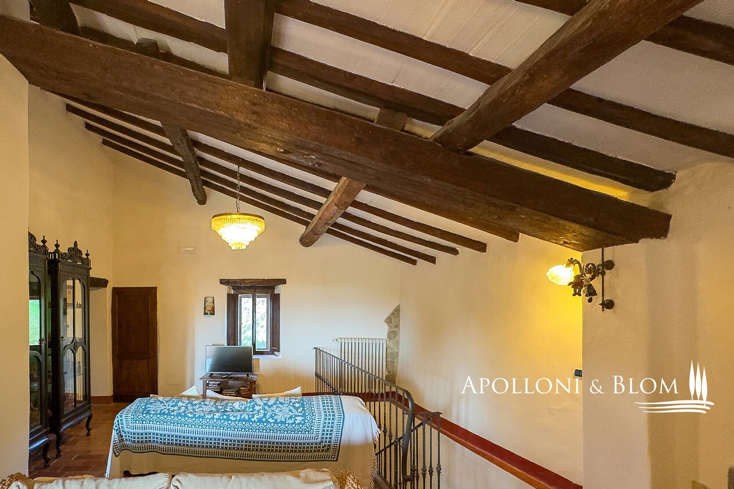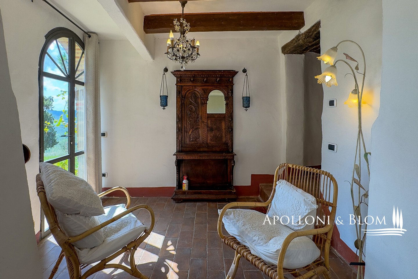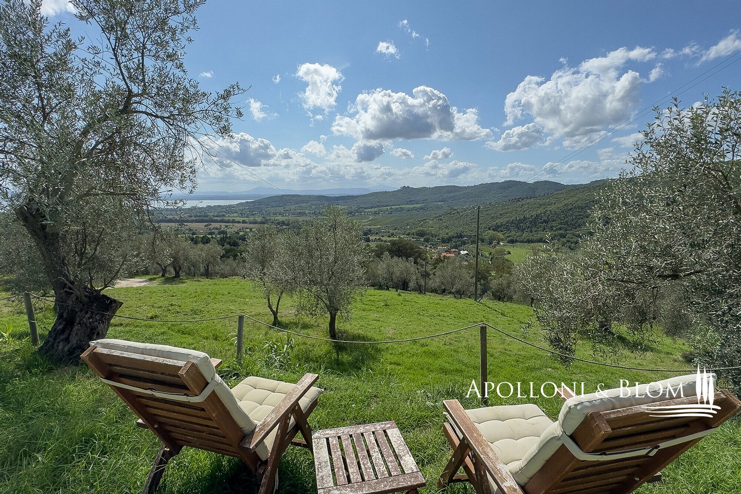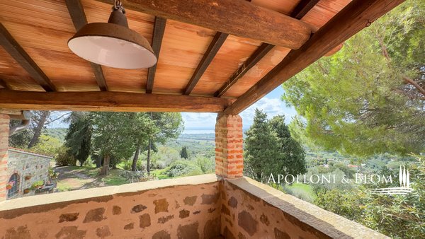 Typ: Bauernhaus aus dem Jahr 1800 mit Blick auf den Trasimeno-See, 364 qm auf zwei Ebenen mit Veranda, Loggia, separates Gästehaus, Garten mit Rosengarten und Panoramaschwimmbad, 3,6 ha Olivenhain mit jahrhundertealten Pflanzen