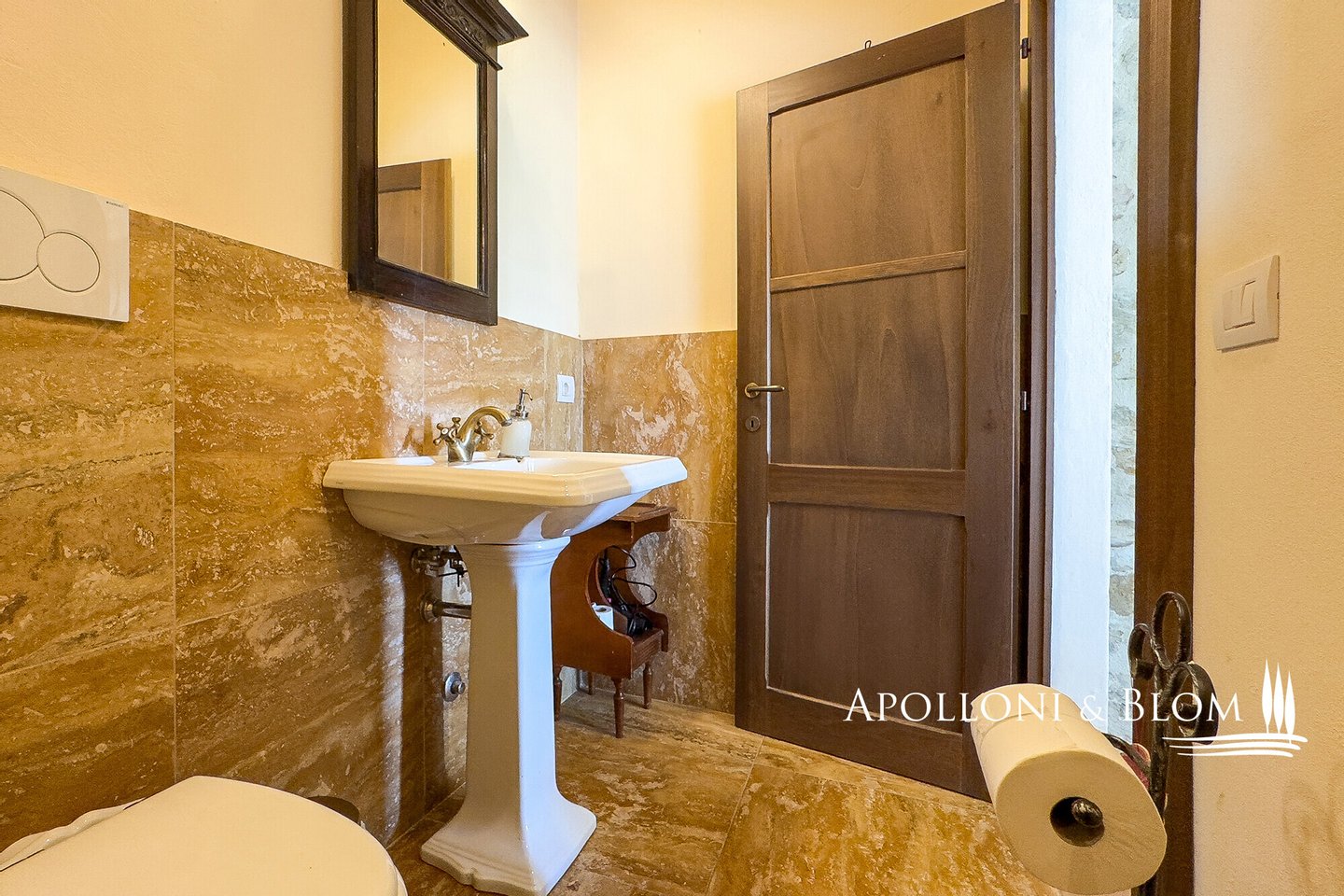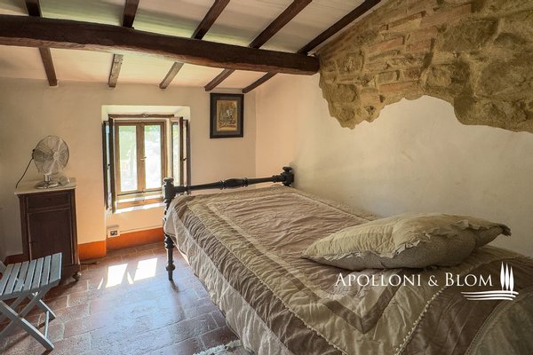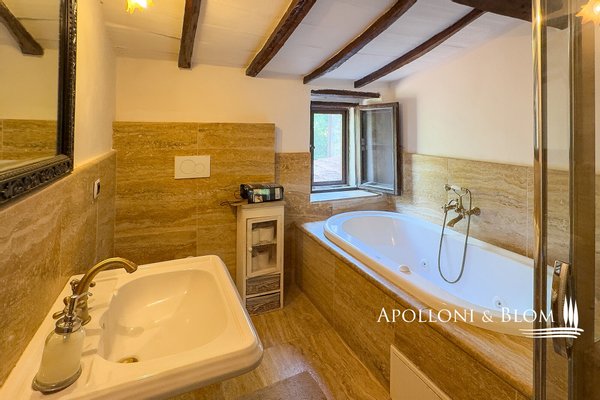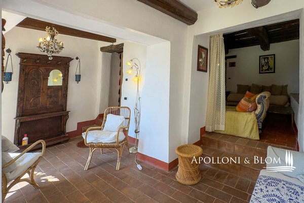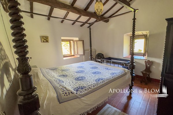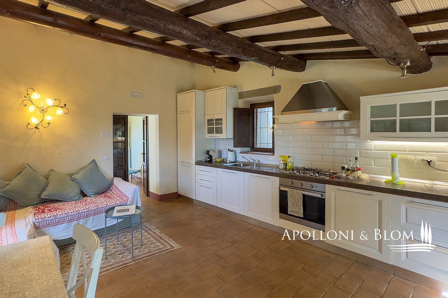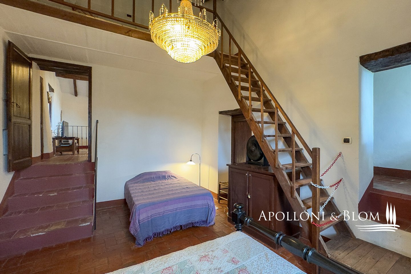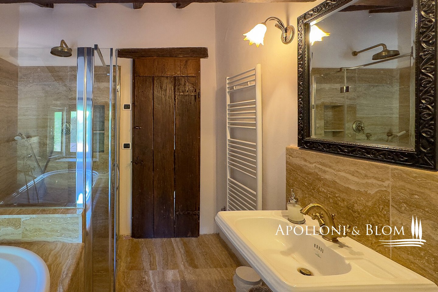 Typ: Bauernhaus aus dem Jahr 1800 mit Blick auf den Trasimeno-See, 364 qm auf zwei Ebenen mit Veranda, Loggia, separates Gästehaus, Garten mit Rosengarten und Panoramaschwimmbad, 3,6 ha Olivenhain mit jahrhundertealten Pflanzen