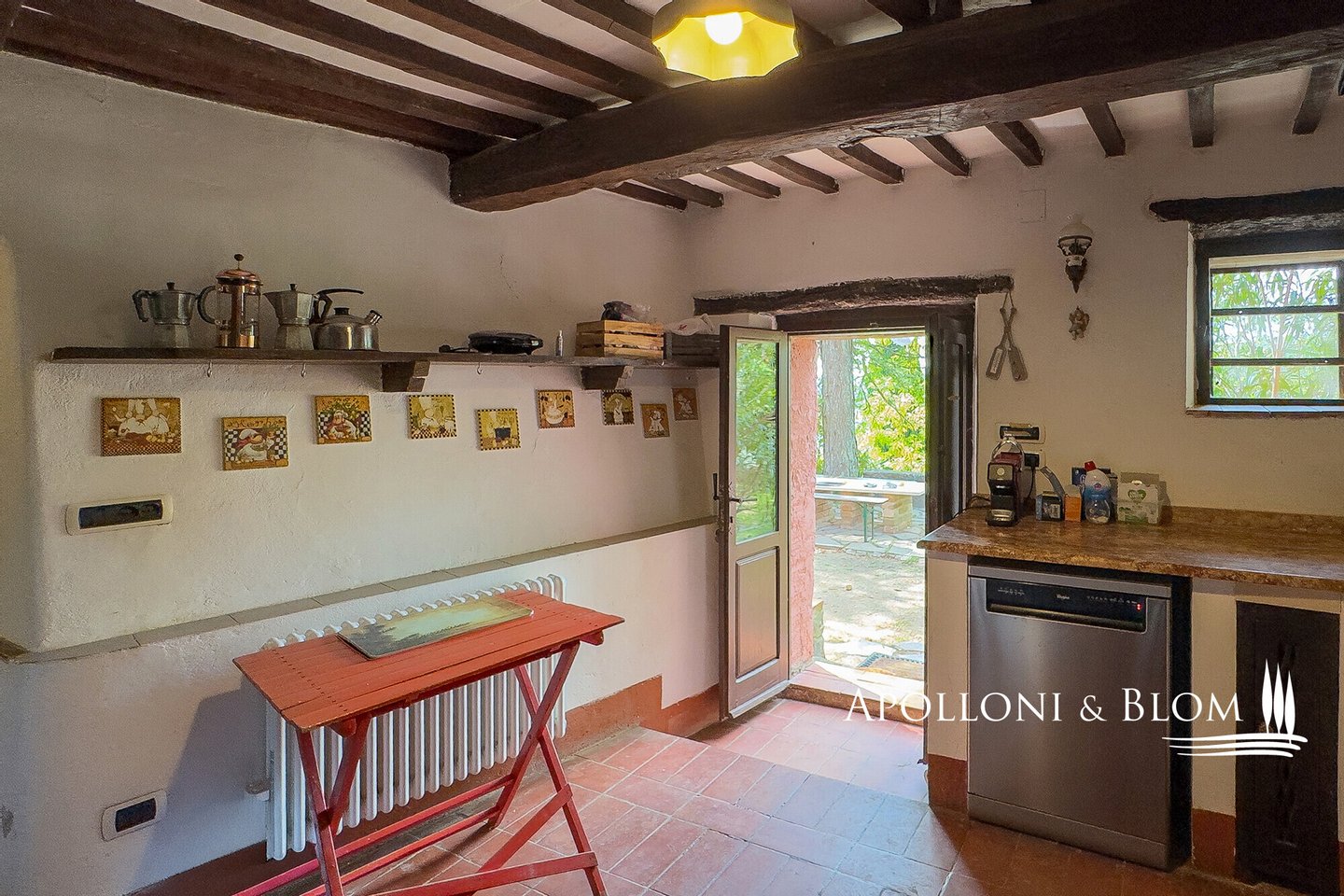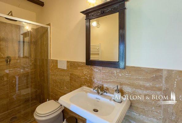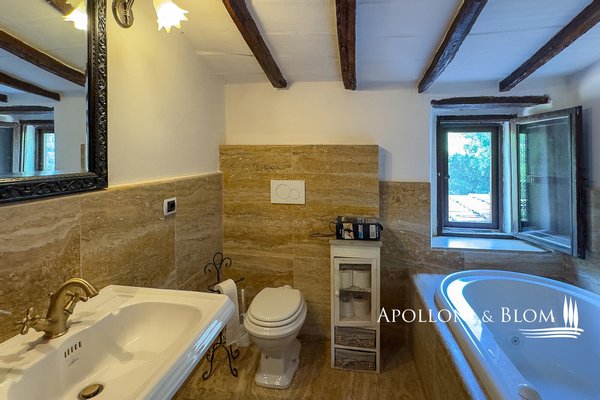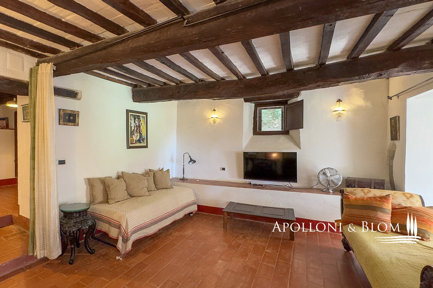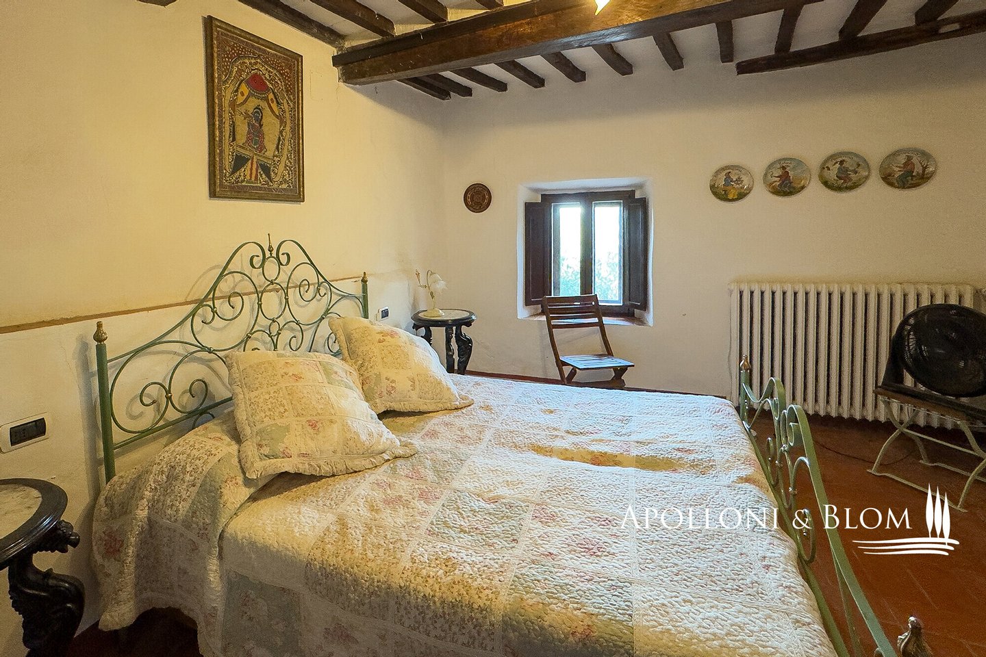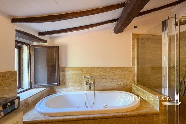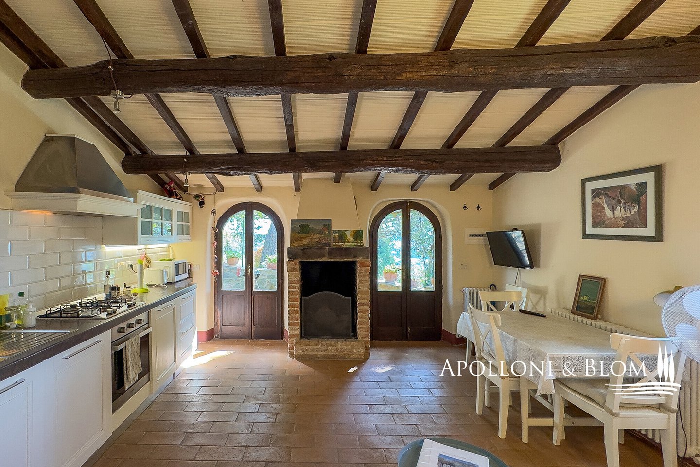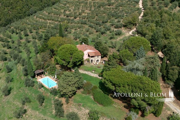 Typ: Bauernhaus aus dem Jahr 1800 mit Blick auf den Trasimeno-See, 364 qm auf zwei Ebenen mit Veranda, Loggia, separates Gästehaus, Garten mit Rosengarten und Panoramaschwimmbad, 3,6 ha Olivenhain mit jahrhundertealten Pflanzen