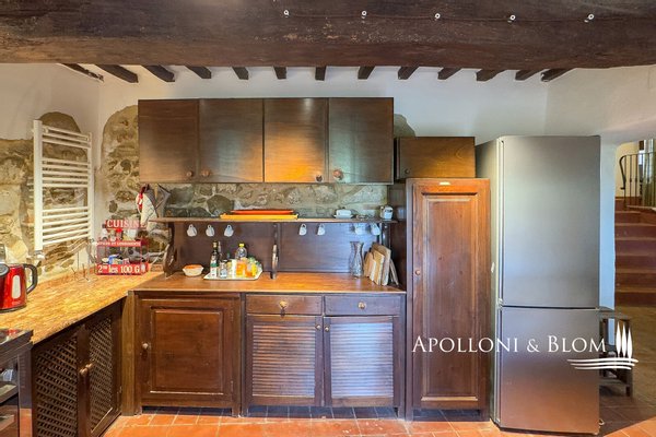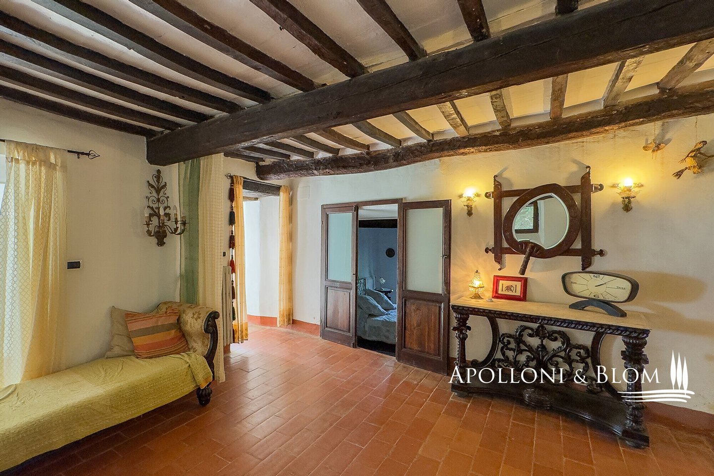 Mit freiem Blick auf den See, Landhaus mit 5 Schlafzimmern, Gästeanbau, Schwimmbad, Garten mit Rosengarten, Olivenhain, zu verkaufen in Tuoro sul Trasimeno, Perugia. Traditionelle Zimmer im rustikalen Stil mit spektakulärem Panoramablick auf den See, an der toskanischen Grenze und nur 15 km von Cortona entfernt. Eine historische Stätte, die Villa ist auf den gleichen Hügeln der berühmten Schlacht von Hannibal im Jahr 217 v. Chr. gebaut, wo er in den Hinterhalt und besiegte die mächtigen Römer. Casale Poggio alle Rose ist eine typisch umbrische Landvilla mit Gästetrakt, die Anfang des 19. Jahrhunderts erbaut wurde, 350 Meter über dem Meeresspiegel liegt, nach Süden ausgerichtet ist und einen bezaubernden Blick auf den Trasimenischen See bietet, inmitten von 300 Olivenbäumen, von denen einige Jahrhunderte alt sind. Casale Poggio alle Rose verfügt über 30 Rosensorten aus Italien und England, Obstbäume mit Feigen, Walnüssen, Kaki und Kirschbäumen. Rund um den Swimmingpool mit einer römischen Treppe befindet sich ein terrassenförmiger Garten mit über 100 Blumenarten und exotischen Sträuchern, um eine Außenküche mit einem Bereich für Mahlzeiten im Freien. Die Fassaden sind teilweise aus Naturstein mit einer Loggia im ersten Stock. Die Innenräume haben ihren ursprünglichen Charakter mit hohen Decken mit sichtbaren Holzbalken und handgefertigten Terrakottaböden bewahrt. Die Bäder wurden vor kurzem mit Travertinstein renoviert, wobei das Bad des Hauptschlafzimmers mit einer Whirlpool-Badewanne ausgestattet ist. Das Gebäude kann um weitere 100 Quadratmeter erweitert werden. Vor dem Gästehaus bietet eine mehr als 50 Jahre alte Glyzinie eine schattige Pergola zum Essen und Entspannen. Die 600 m lange Zufahrt ist eine Kombination aus Beton und Schotter und kann von allen Stadtautos problemlos befahren werden.