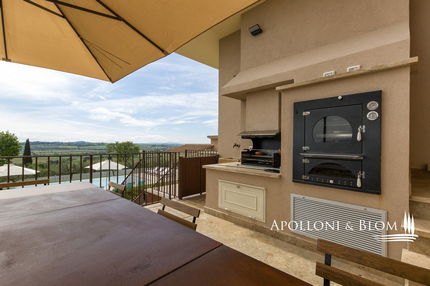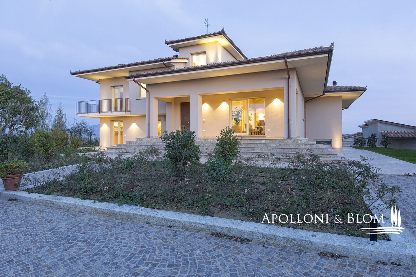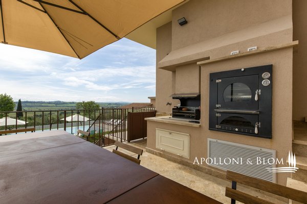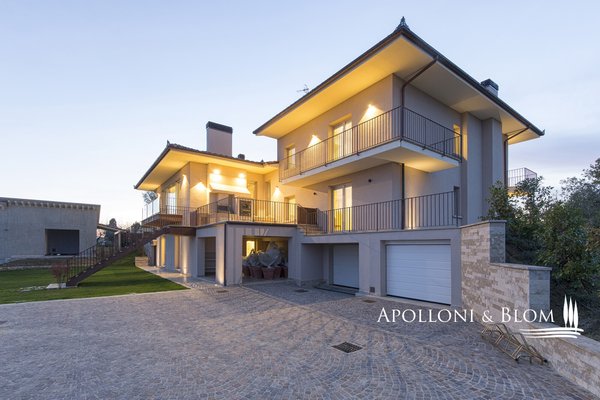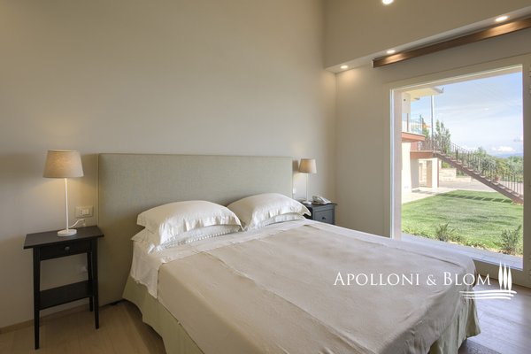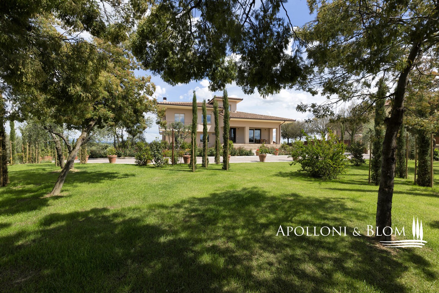 Ruhig gelegene Luxusvilla A4 mit Nebengebäude, Schwimmbad, Photovoltaikanlage und Olivenhain in Foiano della Chiana zu verkaufen. In einer der aussichtsreichsten und reserviertesten Gegenden des Val di Chiana, verbindet diese prestigeträchtige Luxusvilla zum Verkauf in Foiano della Chiana Eleganz, Komfort und Nachhaltigkeit. Das 2019 mit modernsten Technologien errichtete Anwesen ist mit einer 10,8-kW-Photovoltaikanlage und einer 8-kW-Solarthermieanlage für die Erzeugung von Strom und Warmwasser ausgestattet, die maximale Energieeffizienz und Autonomie garantieren. Die auf drei Ebenen verteilte Villa mit einer Gesamtfläche von etwa 820 Quadratmetern verfügt über eine sehr hochwertige Ausstattung: massive Eichen- und Travertinböden, Fußbodenheizung mit Wärmepumpen und Pelletöfen, kontrollierte mechanische Belüftung, Fensterrahmen aus Eiche und Aluminium mit Dreifachverglasung, motorisierte Innenrollläden, fortschrittliche Haustechnik, Videoüberwachungssystem mit Außenkameras und doppelte Alarmanlage. Im Außenbereich wird die Villa durch einen 12x6 m großen Infinity-Pool mit rutschfester Sonnenterrasse, einen perfekt gepflegten Garten von ca. 4.000 m² mit automatischem Bewässerungssystem und einen 3 ha großen Olivenhain mit ca. 3.000 Bäumen, der ebenfalls mit Tropfbewässerung ausgestattet ist, bereichert. Die Lage mit freiem Blick auf etwa 80 Kilometer toskanische Landschaft garantiert Privatsphäre und natürliche Schönheit. Das Anwesen wird durch ein unabhängiges 60 Quadratmeter großes Nebengebäude vervollständigt, das ideal für Gäste oder Personal ist, sowie durch einen Wellnessbereich mit Jacuzzi und türkischem Bad, eine 75 Quadratmeter große Garage und zahlreiche Nebenräume. Nur 900 Meter von den wichtigsten Dienstleistungen entfernt und mit perfekter Anbindung an die bekanntesten touristischen Zentren der Toskana und Umbriens, stellt diese Villa eine exklusive Lösung dar, die sich sowohl als prestigeträchtige Privatresidenz als auch als Beherbergungsbetrieb auf hohem Niveau eignet.