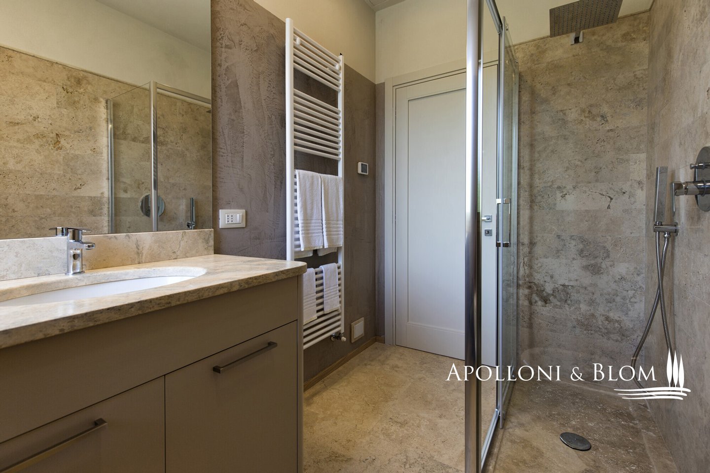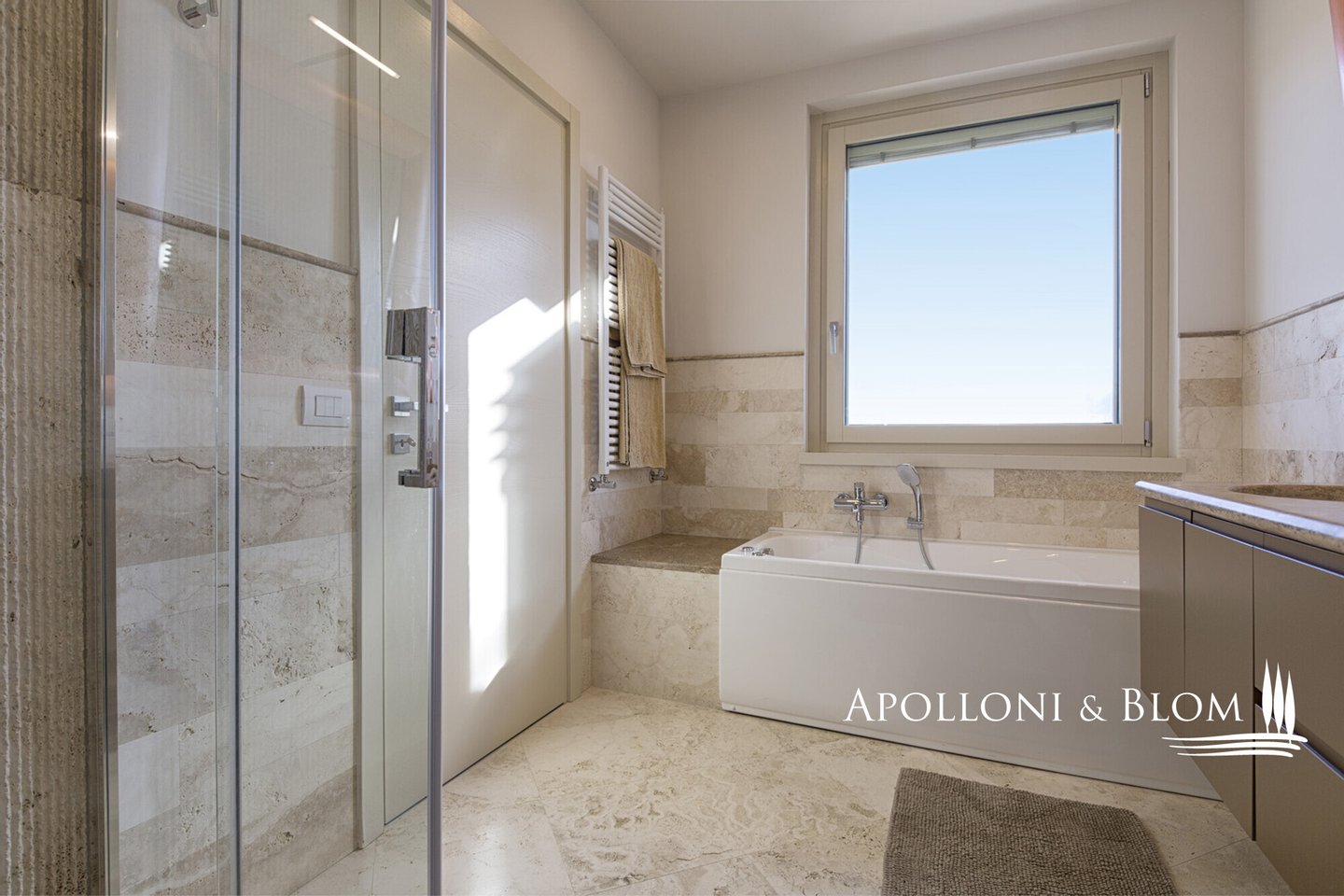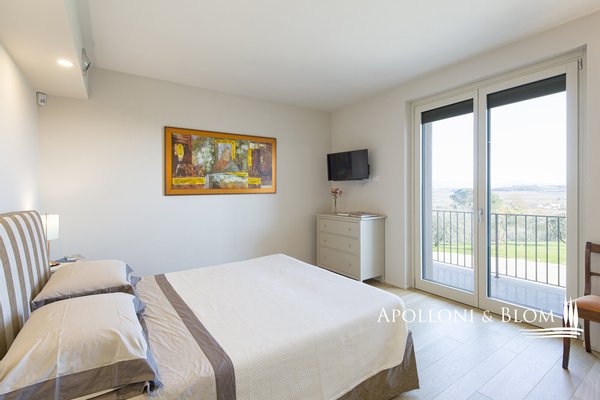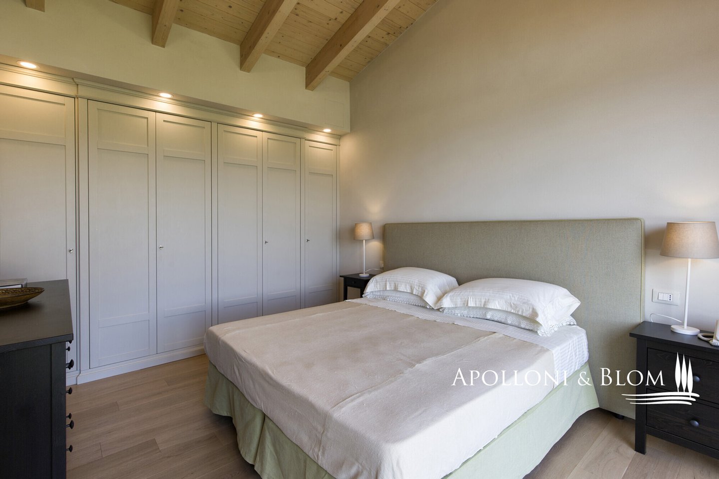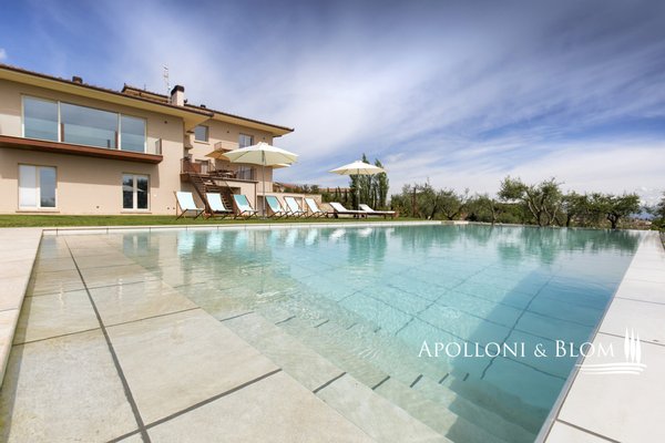 Ruhig gelegene Luxusvilla A4 mit Nebengebäude, Schwimmbad, Photovoltaikanlage und Olivenhain in Foiano della Chiana zu verkaufen. In einer der aussichtsreichsten und reserviertesten Gegenden des Val di Chiana, verbindet diese prestigeträchtige Luxusvilla zum Verkauf in Foiano della Chiana Eleganz, Komfort und Nachhaltigkeit. Das 2019 mit modernsten Technologien errichtete Anwesen ist mit einer 10,8-kW-Photovoltaikanlage und einer 8-kW-Solarthermieanlage für die Erzeugung von Strom und Warmwasser ausgestattet, die maximale Energieeffizienz und Autonomie garantieren. Die auf drei Ebenen verteilte Villa mit einer Gesamtfläche von etwa 820 Quadratmetern verfügt über eine sehr hochwertige Ausstattung: massive Eichen- und Travertinböden, Fußbodenheizung mit Wärmepumpen und Pelletöfen, kontrollierte mechanische Belüftung, Fensterrahmen aus Eiche und Aluminium mit Dreifachverglasung, motorisierte Innenrollläden, fortschrittliche Haustechnik, Videoüberwachungssystem mit Außenkameras und doppelte Alarmanlage. Im Außenbereich wird die Villa durch einen 12x6 m großen Infinity-Pool mit rutschfester Sonnenterrasse, einen perfekt gepflegten Garten von ca. 4.000 m² mit automatischem Bewässerungssystem und einen 3 ha großen Olivenhain mit ca. 3.000 Bäumen, der ebenfalls mit Tropfbewässerung ausgestattet ist, bereichert. Die Lage mit freiem Blick auf etwa 80 Kilometer toskanische Landschaft garantiert Privatsphäre und natürliche Schönheit. Das Anwesen wird durch ein unabhängiges 60 Quadratmeter großes Nebengebäude vervollständigt, das ideal für Gäste oder Personal ist, sowie durch einen Wellnessbereich mit Jacuzzi und türkischem Bad, eine 75 Quadratmeter große Garage und zahlreiche Nebenräume. Nur 900 Meter von den wichtigsten Dienstleistungen entfernt und mit perfekter Anbindung an die bekanntesten touristischen Zentren der Toskana und Umbriens, stellt diese Villa eine exklusive Lösung dar, die sich sowohl als prestigeträchtige Privatresidenz als auch als Beherbergungsbetrieb auf hohem Niveau eignet.