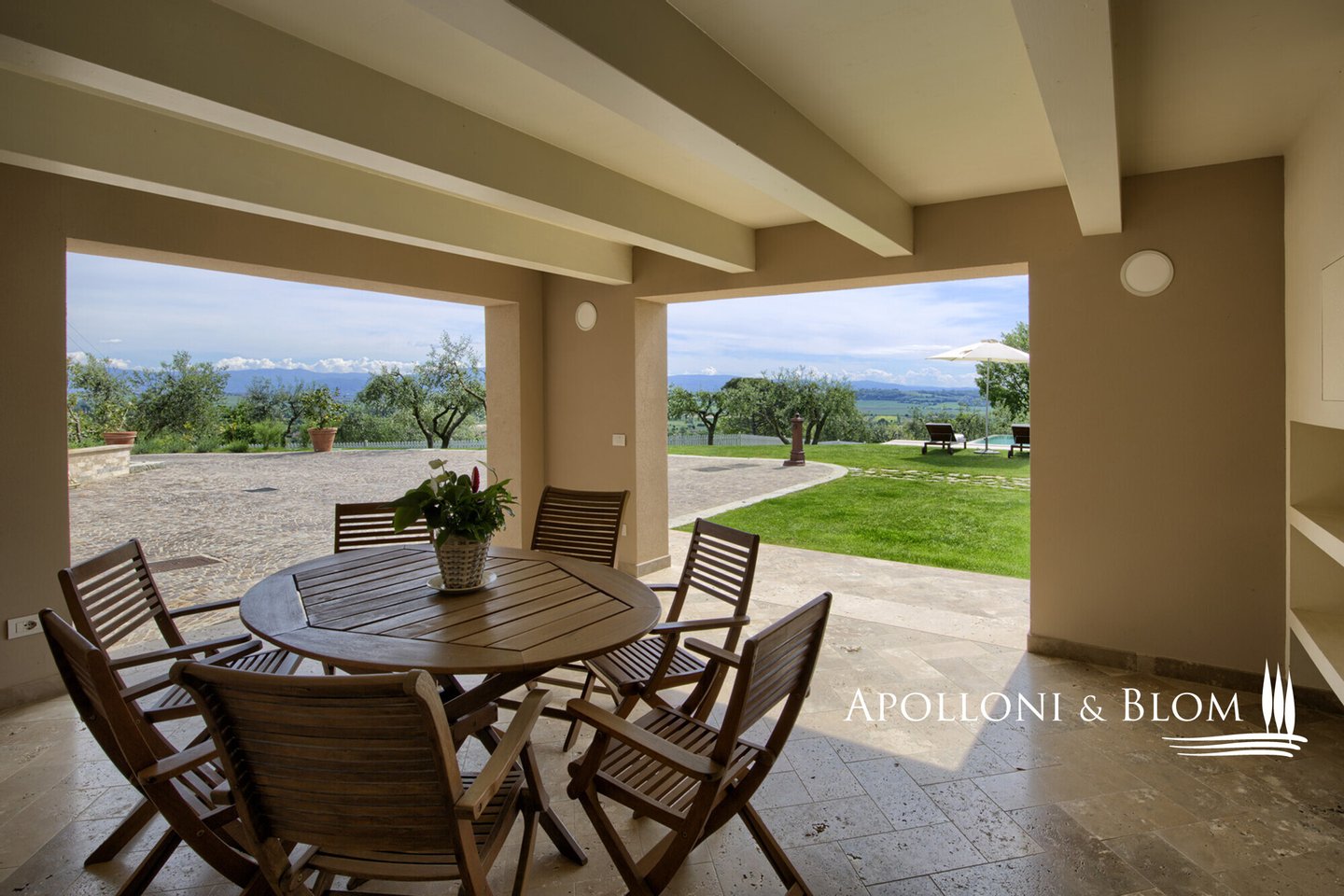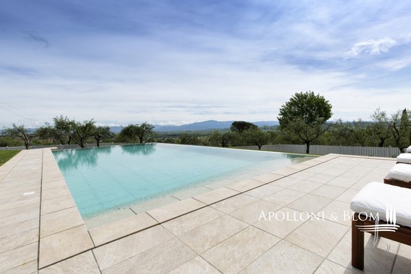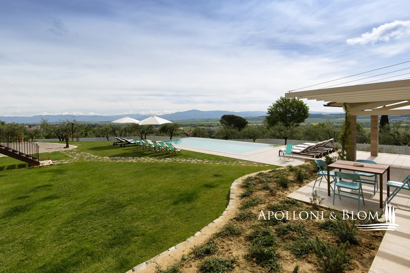 Ruhig gelegene Luxusvilla A4 mit Nebengebäude, Schwimmbad, Photovoltaikanlage und Olivenhain in Foiano della Chiana zu verkaufen. In einer der aussichtsreichsten und reserviertesten Gegenden des Val di Chiana, verbindet diese prestigeträchtige