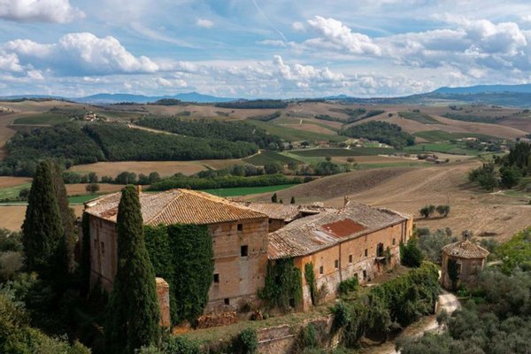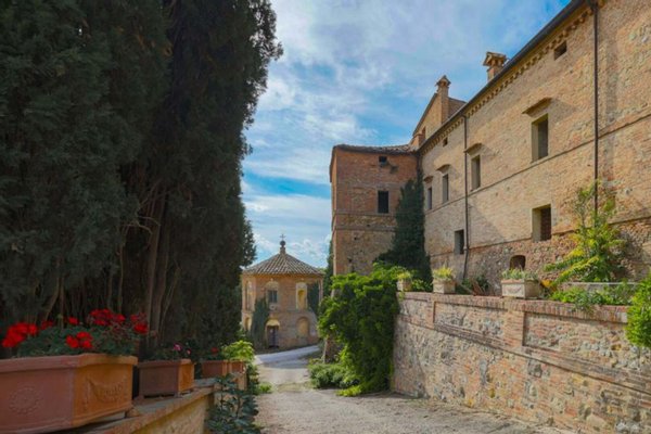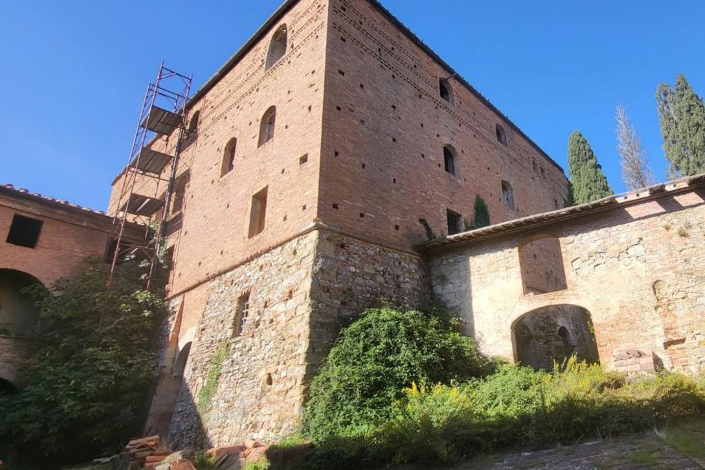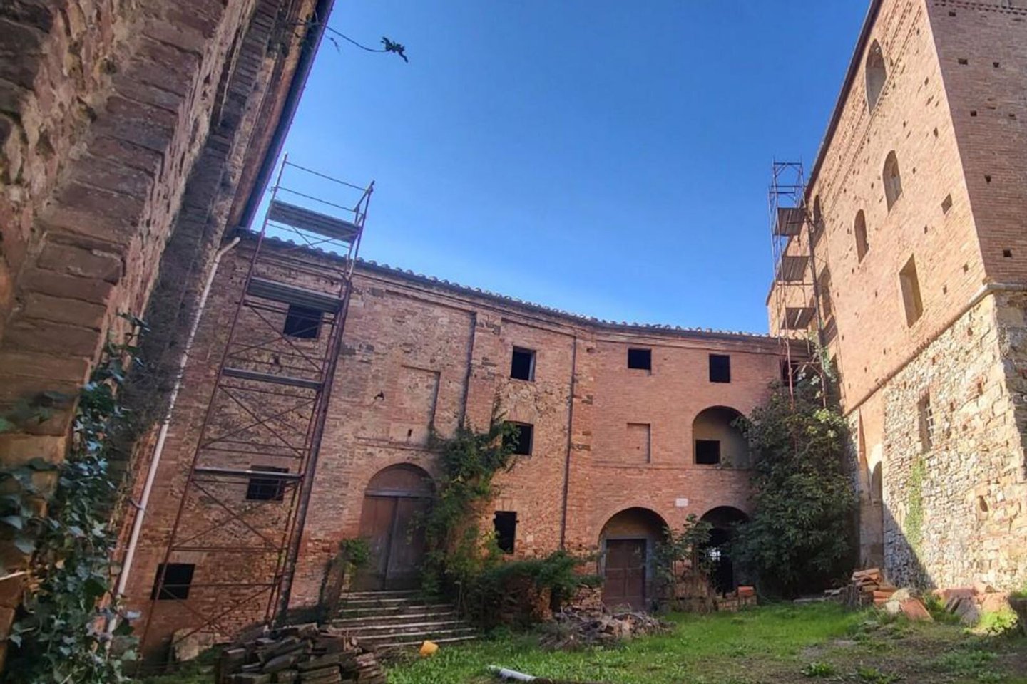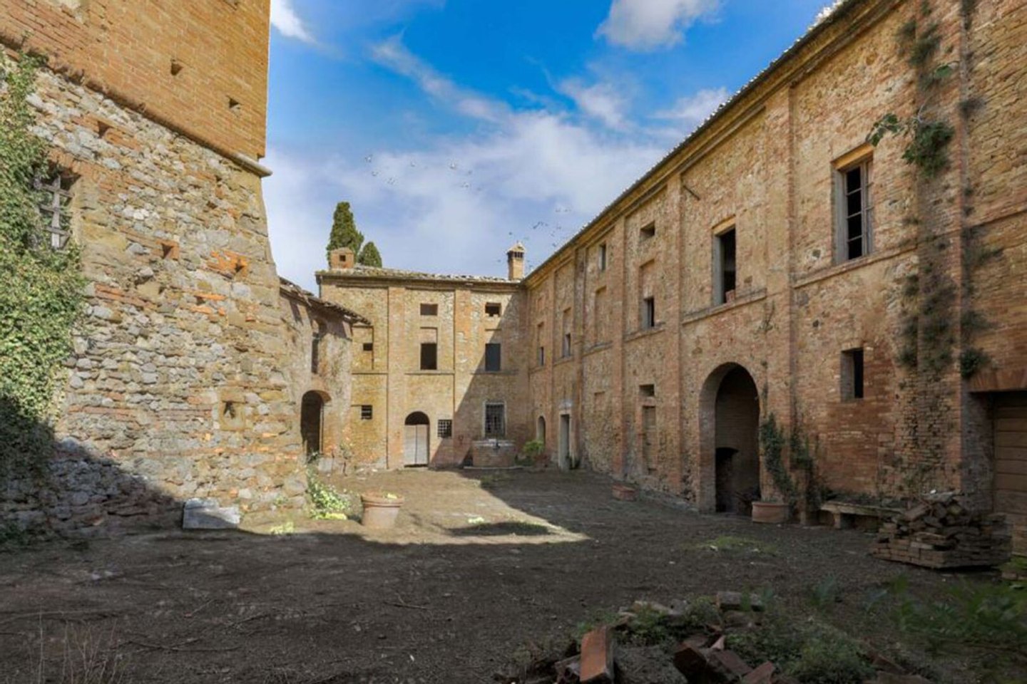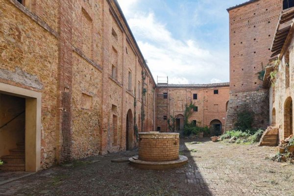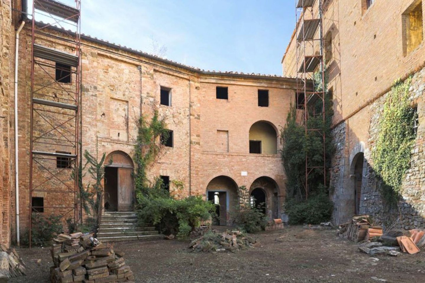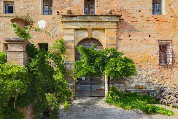 Außergewöhnliche Aussicht, Schloss aus dem 14. Jahrhundert mit Nebengebäuden, Privatkirche, zu restaurieren mit genehmigtem Projekt, in der Nähe von Montalcino zu verkaufen. Ein mittelalterliches Juwel von ca. 3900 Quadratmetern mit unglaublichem Potenzial, eine elegante Privatresidenz, ein luxuriöser Rückzugsort für touristische Gastfreundschaft oder ein einzigartiger Ort für unvergessliche Veranstaltungen zu werden. Eingebettet zwischen Hügeln mit Weinbergen, Eichen, Steineichen und Gestrüpp, bietet das Schloss eine dominante Lage mit bezauberndem Blick auf die Crete Senesi und die charakteristischen Landschaften von Montalcino, das nur 11 km entfernt ist. Eine Allee, die von zwei dichten Reihen jahrhundertealter Zypressen flankiert wird, führt zum Herzstück des Schlosses, einem imposanten Backsteinbau aus dem 14. Jahrhundert, der eine Höhe von 18 Metern erreicht und aus zwei getrennten Blöcken mit steilem Sockel und anderen Körpern besteht, die sich um einen zentralen rechteckigen Hof mit einem Brunnen entwickeln. Die Kanonenöffnungen im obersten Stockwerk zeugen von seinem militärischen Charakter als Verteidigungsvorposten während der langen Kriege zwischen Siena und Florenz. Nach 1453 wurde es zum Landsitz einer adligen Grafenfamilie, die das Gebäude durch den Bau einer anmutigen achteckigen Familienkapelle weiter ausbaute. Trotz der sieben Jahrhunderte währenden Geschichte sind viele der architektonischen Merkmale und vor allem der Charme und die Faszination der damaligen Zeit perfekt erhalten geblieben. In den Innenräumen sind die Backsteinmauern, Bögen, Säulengänge und Decken erhalten, die gewölbt oder mit Fresken aus dem 17. Jahrhundert verziert sind. Jahrhundert verziert sind. Der gesamte Komplex ist seit Jahrzehnten vernachlässigt, und obwohl einige Verstärkungen an den Wänden und Böden vorgenommen wurden, ist eine vollständige Renovierung für die Wiederherstellung zu Wohn- und/oder Unterbringungszwecken erforderlich. Es liegt bereits ein von den zuständigen Behörden genehmigtes Projekt vor, das die landschaftlichen und architektonischen Besonderheiten berücksichtigt und darauf abzielt, die jahrhundertealte Geschichte zu bewahren, wobei die Materialien sorgfältig ausgewählt und die dekorativen Details berücksichtigt werden.