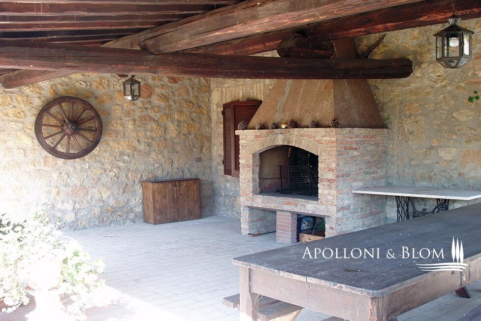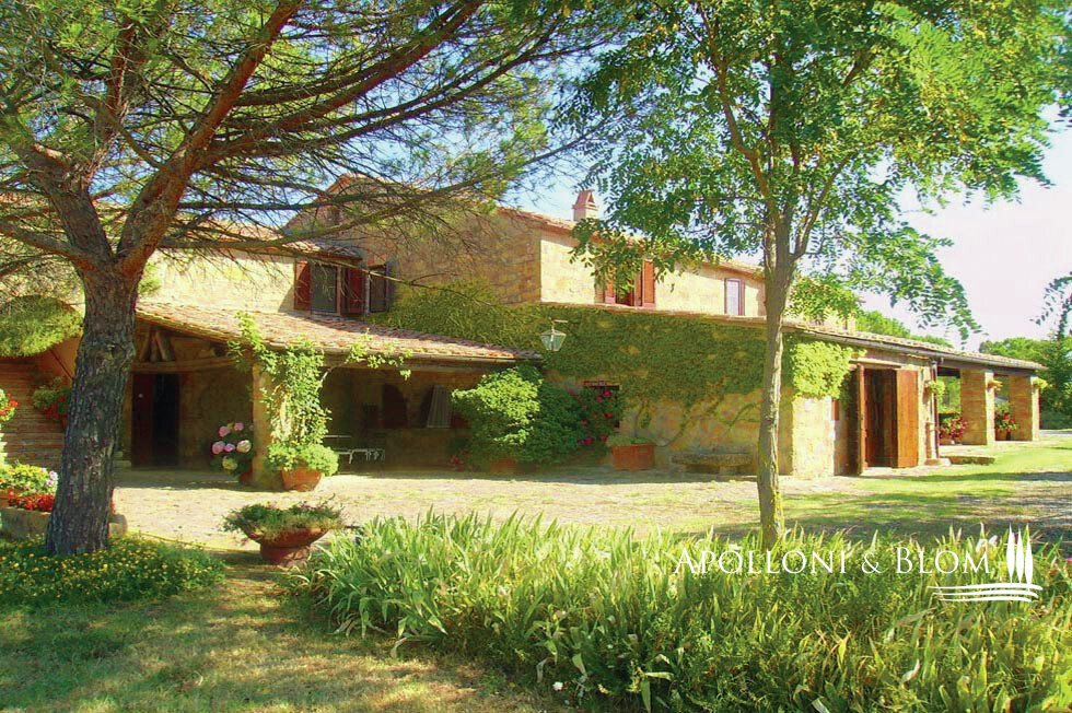 Eine charakteristische toskanische Residenz inmitten der Stille und der magischen Atmosphäre des Val d'Orcia mit atemberaubendem Blick auf Pienza zu verkaufen. In beherrschender Lage auf einer sanften Anhöhe im Herzen des Val d'Orcia - einem UNESCO-Kulturerbe - stellt diese elegante Residenz aus dem 19. Jahrhundert ein perfektes Gleichgewicht zwischen historischem Charme, natürlicher Schönheit und exklusivem Lifestyle-Potenzial dar. Umgeben von Olivenhainen, Weinbergen und einem fachmännisch angelegten Park, genießt das Anwesen absolute Privatsphäre und einen unvergleichlichen Blick auf eine der schönsten Landschaften der Toskana, nur wenige Minuten von Pienza entfernt. Mit einer Innenfläche von ca. 470 Quadratmetern verteilt es sich auf zwei Ebenen: Im Erdgeschoss, das von einem 80 Quadratmeter großen Portikus eingeleitet wird, befinden sich großzügige und stimmungsvolle Wohnräume, die sich durch Terrakottaböden, sichtbare Balken und einen authentischen toskanischen Kamin auszeichnen, der der Umgebung Wärme und schlichte Eleganz verleiht. Der Wohnbereich öffnet sich zu einem formellen Esszimmer und einer Einbauküche mit Speisekammer. Ein Billardzimmer verleiht den Unterhaltungsräumen eine raffinierte Note, während technische Räume, ein Weinkeller, ein Holzlager und ein voll funktionsfähiger Holzofen die Funktionalität der Immobilie vervollständigen. In einem unabhängigen Flügel des Erdgeschosses befindet sich ein ca. 40 Quadratmeter großes Studio-Apartment mit eigenem Zugang, ideal für Gäste, Personal oder touristische Vermietungen. Im Obergeschoss, das entweder über eine Innentreppe oder über eine reizvolle Außenloggia mit antiken Terrakottastufen erreichbar ist, befinden sich ein weiteres Wohnzimmer, sechs helle Schlafzimmer und drei Bäder, alle mit Blick auf die umliegende Hügellandschaft. Das Anwesen umfasst ca. 4,5 Hektar Land, davon 3 Hektar Olivenhain (ca. 600 Bäume), 0,7 Hektar Weinberg (70% Sangiovese, 30% Merlot) und weitere Teile für Obstgarten, Gemüsegarten und Zierpark. Eine eigene Quelle sorgt für die Bewässerung, und zum Verkauf gehören auch landwirtschaftliche Geräte und ein Traktor. Es besteht die Möglichkeit, vorbehaltlich einer städtebaulichen Genehmigung, einen Swimmingpool zu errichten, um die Empfangs- oder Wohnfunktion des Anwesens weiter aufzuwerten. Natürlich auf dem höchsten Punkt des Hügels gelegen und immer dem Licht zugewandt, stellt diese einzigartige Residenz eine seltene Gelegenheit für diejenigen dar, die in einem authentischen und prestigeträchtigen Kontext investieren möchten, inmitten von Eleganz, Natur und Geschichte im reinsten Herzen der Toskana.