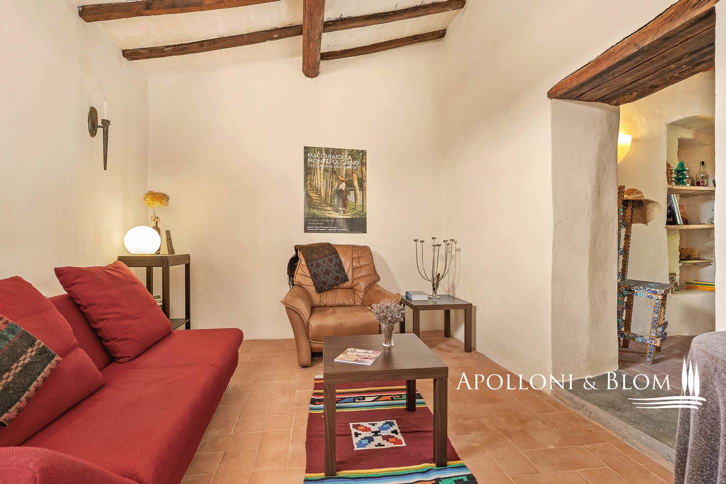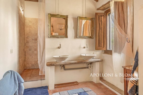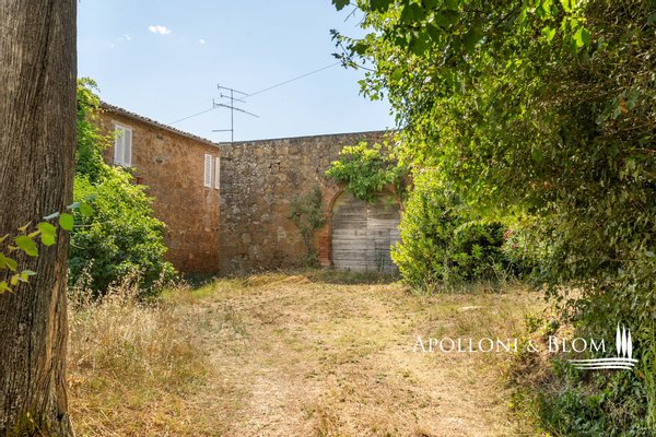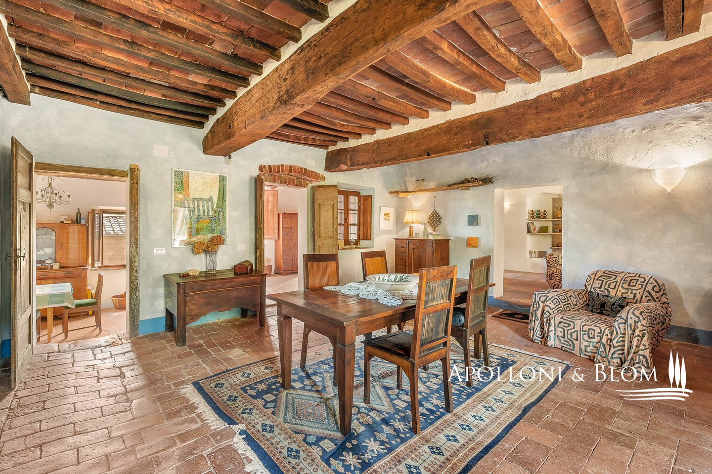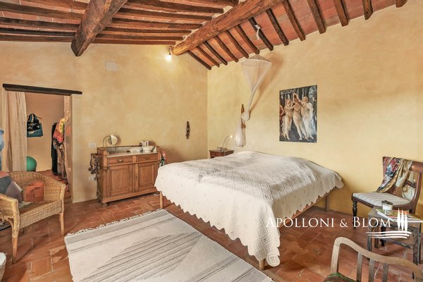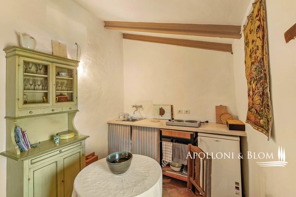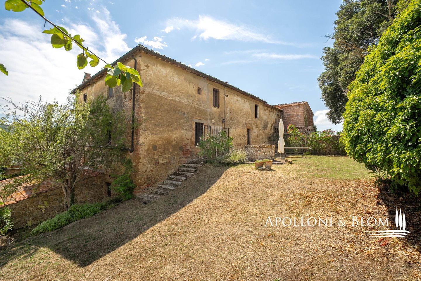 Bauernhaus mit schönem Innenhof, Terrasse und Olivenhain bei Trequanda, Siena - Toskana. Versteckt unter dem Hügel von Castelmuzio, umgeben von Bäumen und windgeschützt, mit offenem Blick nach Süden, ist dieses Bauernhaus ein wahres Juwel für seine gegliederte Struktur, seine komfortablen Innen- und Außenräume und für die authentische Atmosphäre, die trotz der jüngsten, minimalen Restaurierung erhalten wurde. Am Ende eines kurzen Stücks unbefestigter Straße empfängt uns das Bauernhaus, das auf drei Seiten frei ist, durch eine alte Holztür, die in einen schönen Hof führt, in dem sich der Haupteingang und die Räume für die landwirtschaftliche Nutzung befinden. Über eine schöne Treppe aus lokalem Travertin gelangt man in den ersten Stock, wo sich der Wohnbereich mit einem großen Wohnzimmer und einer Küche mit einem wunderschönen antiken Kamin befindet, von wo aus man auf die Terrasse gelangt, die eine ganze Seite des Hofes einnimmt und von der aus man ein wunderschönes Panorama und die Sonne genießen kann, die diese Seite des Anwesens den ganzen Tag über küsst. Ein Arbeitszimmer und ein intimes Wohnzimmer vervollständigen diese Ebene. Im Obergeschoss befinden sich drei Schlafzimmer und ein Badezimmer, in denen die Familie und Freunde untergebracht werden können, in einem authentischen Ambiente, in dem man sich das Landleben einer längst vergangenen Zeit vorstellen kann. In einem Flügel des Anwesens befindet sich eine unabhängige Zwischengeschosswohnung mit direktem Zugang zum Innenhof, die mit einer Kochnische, einem Badezimmer, einem Doppelzimmer und einem Arbeitszimmer ausgestattet ist. Der Außenbereich wird durch einen vom Hauptgebäude abgetrennten Anbau bereichert, in dem ein perfekt funktionierender Ofen und ein Holzschuppen untergebracht sind, sowie durch einen Brunnen zum Sammeln von Regenwasser und einen an das Gebäude angelehnten Schuppen, in dem sich derzeit zwei Wasserzisternen befinden. Ringsherum schmücken aromatische Pflanzen, Glyzinien, Flieder und Olivenbäume den Außenbereich und verströmen angenehme Düfte. Dieses Bauernhaus ist die perfekte Lösung für diejenigen, die in das authentische Landleben eintauchen und seine Privatsphäre genießen oder es mit Freunden und Verwandten teilen möchten, mit der Möglichkeit, den gesamten Komplex zu kaufen (Anzeigen TRQ3109 und TRQ3106).