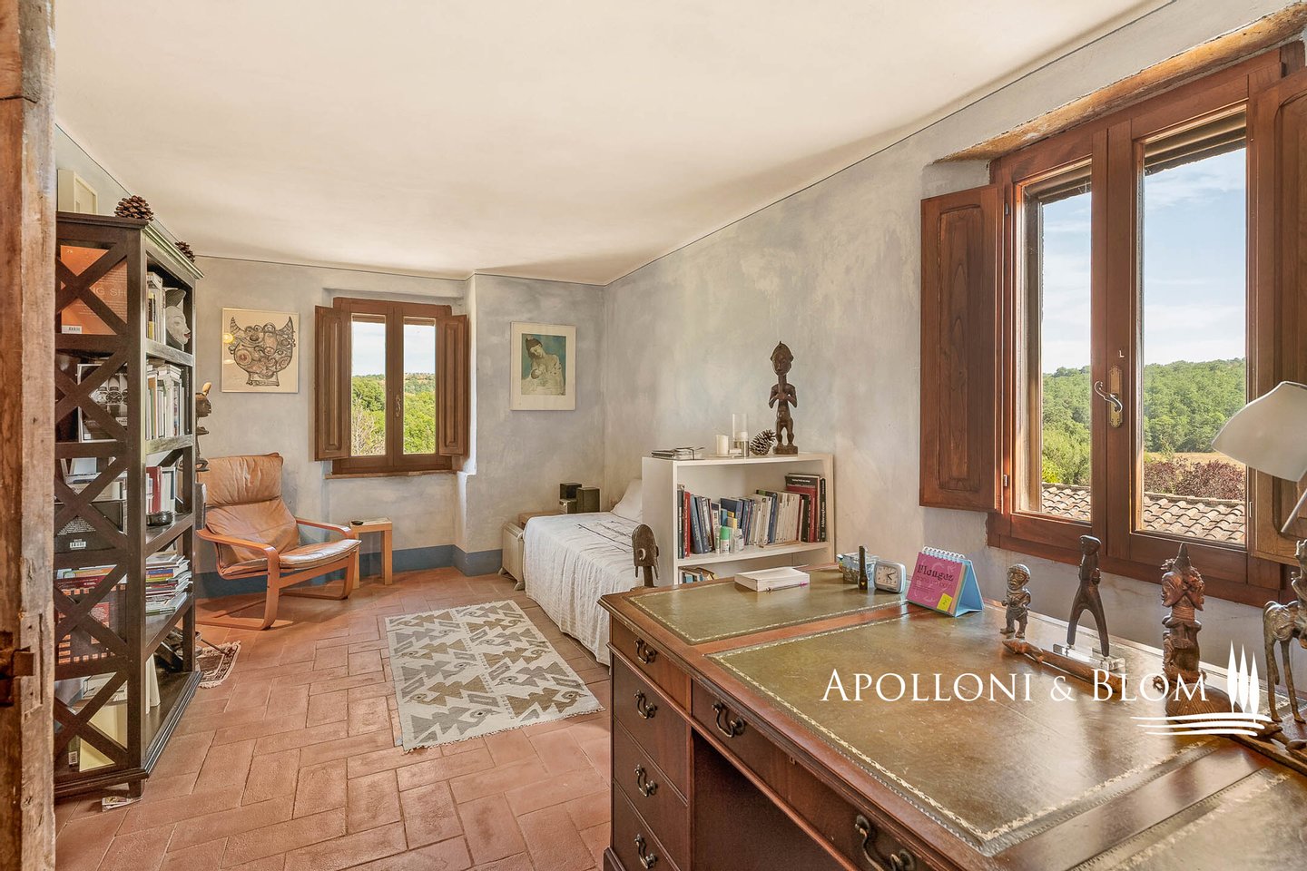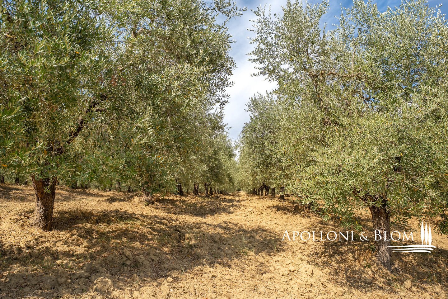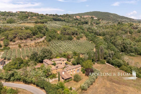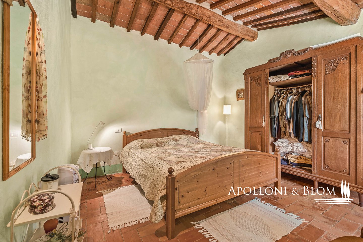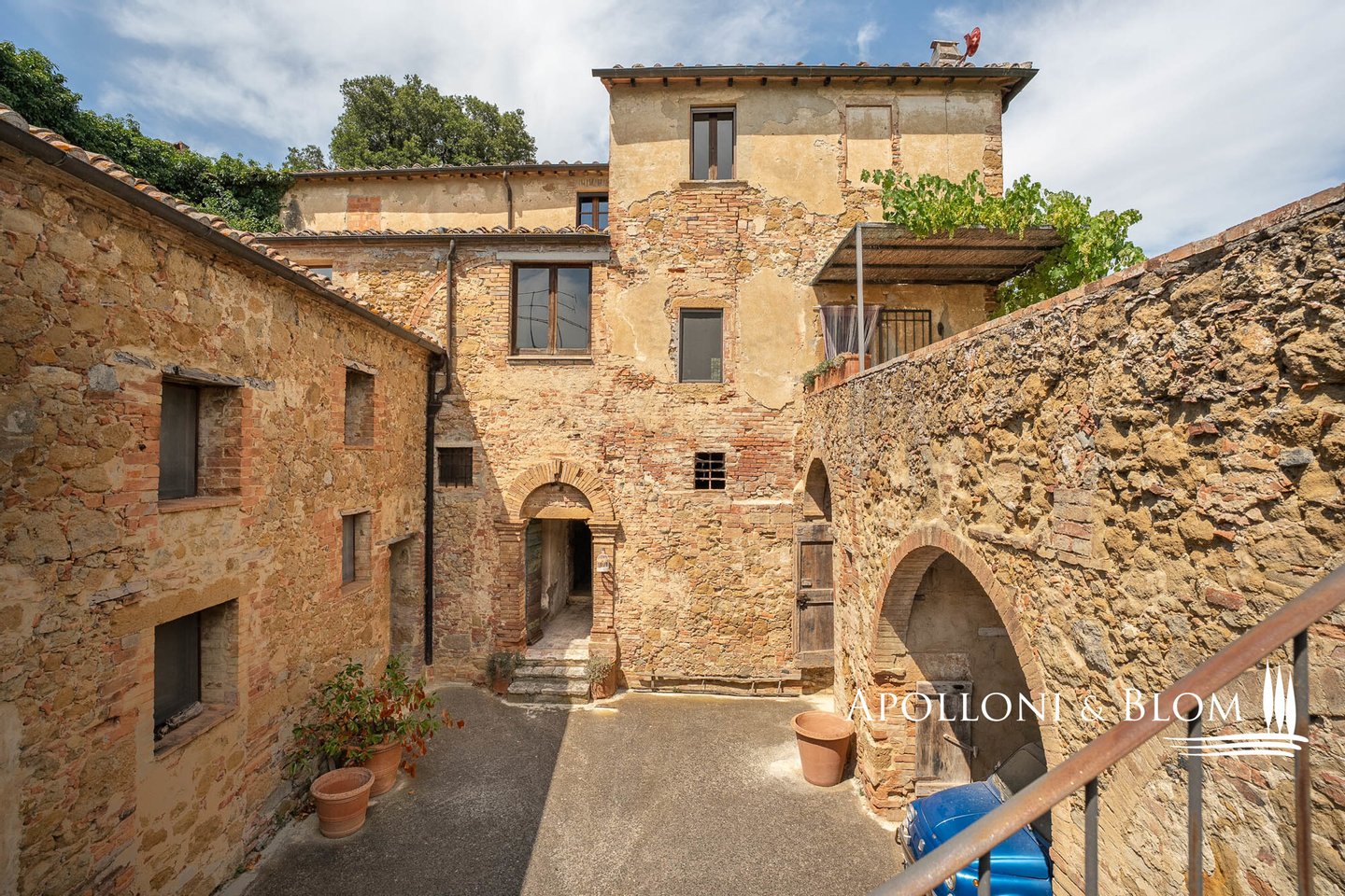 Bauernhaus mit schönem Innenhof, Terrasse und Olivenhain bei Trequanda, Siena - Toskana. Versteckt unter dem Hügel von Castelmuzio, umgeben von Bäumen und windgeschützt, mit offenem Blick nach Süden, ist dieses Bauernhaus ein wahres Juwel für seine gegliederte Struktur, seine komfortablen Innen- und Außenräume und für die authentische Atmosphäre, die trotz der jüngsten, minimalen Restaurierung erhalten wurde. Am Ende eines kurzen Stücks unbefestigter Straße empfängt uns das Bauernhaus, das auf drei Seiten frei ist, durch eine alte Holztür, die in einen schönen Hof führt, in dem sich der Haupteingang und die Räume für die landwirtschaftliche Nutzung befinden. Über eine schöne Treppe aus lokalem Travertin gelangt man in den ersten Stock, wo sich der Wohnbereich mit einem großen Wohnzimmer und einer Küche mit einem wunderschönen antiken Kamin befindet, von wo aus man auf die Terrasse gelangt, die eine ganze Seite des Hofes einnimmt und von der aus man ein wunderschönes Panorama und die Sonne genießen kann, die diese Seite des Anwesens den ganzen Tag über küsst. Ein Arbeitszimmer und ein intimes Wohnzimmer vervollständigen diese Ebene. Im Obergeschoss befinden sich drei Schlafzimmer und ein Badezimmer, in denen die Familie und Freunde untergebracht werden können, in einem authentischen Ambiente, in dem man sich das Landleben einer längst vergangenen Zeit vorstellen kann. In einem Flügel des Anwesens befindet sich eine unabhängige Zwischengeschosswohnung mit direktem Zugang zum Innenhof, die mit einer Kochnische, einem Badezimmer, einem Doppelzimmer und einem Arbeitszimmer ausgestattet ist. Der Außenbereich wird durch einen vom Hauptgebäude abgetrennten Anbau bereichert, in dem ein perfekt funktionierender Ofen und ein Holzschuppen untergebracht sind, sowie durch einen Brunnen zum Sammeln von Regenwasser und einen an das Gebäude angelehnten Schuppen, in dem sich derzeit zwei Wasserzisternen befinden. Ringsherum schmücken aromatische Pflanzen, Glyzinien, Flieder und Olivenbäume den Außenbereich und verströmen angenehme Düfte. Dieses Bauernhaus ist die perfekte Lösung für diejenigen, die in das authentische Landleben eintauchen und seine Privatsphäre genießen oder es mit Freunden und Verwandten teilen möchten, mit der Möglichkeit, den gesamten Komplex zu kaufen (Anzeigen TRQ3109 und TRQ3106).