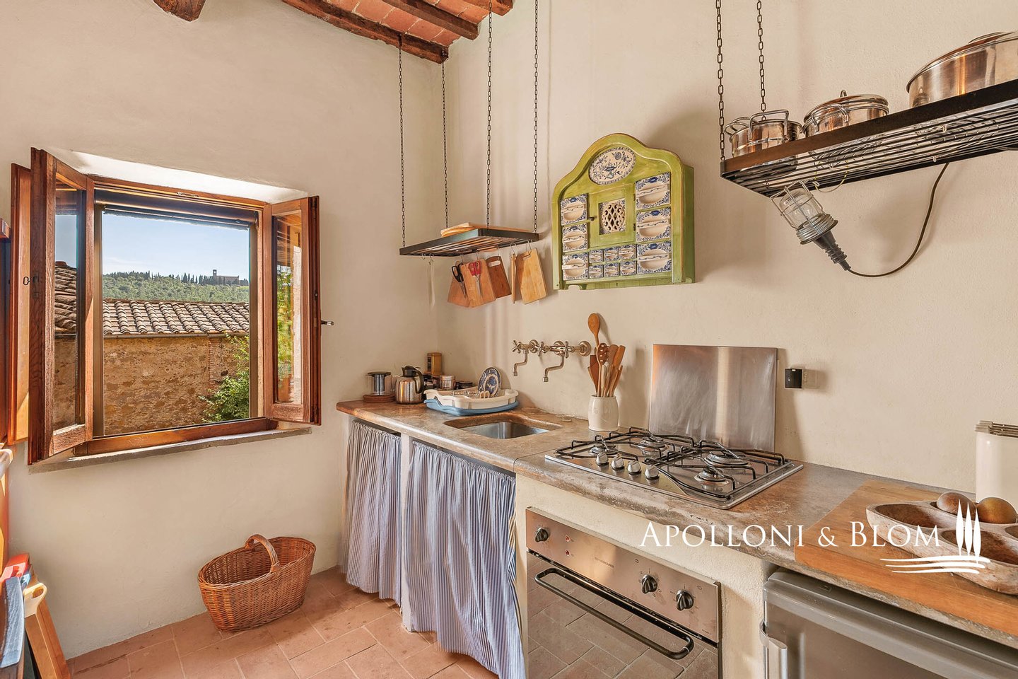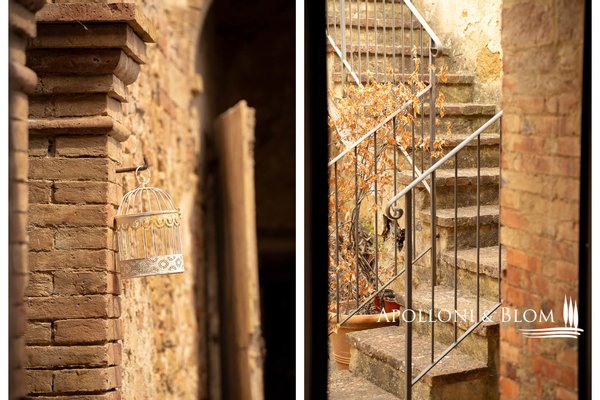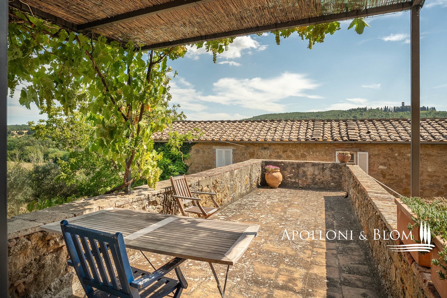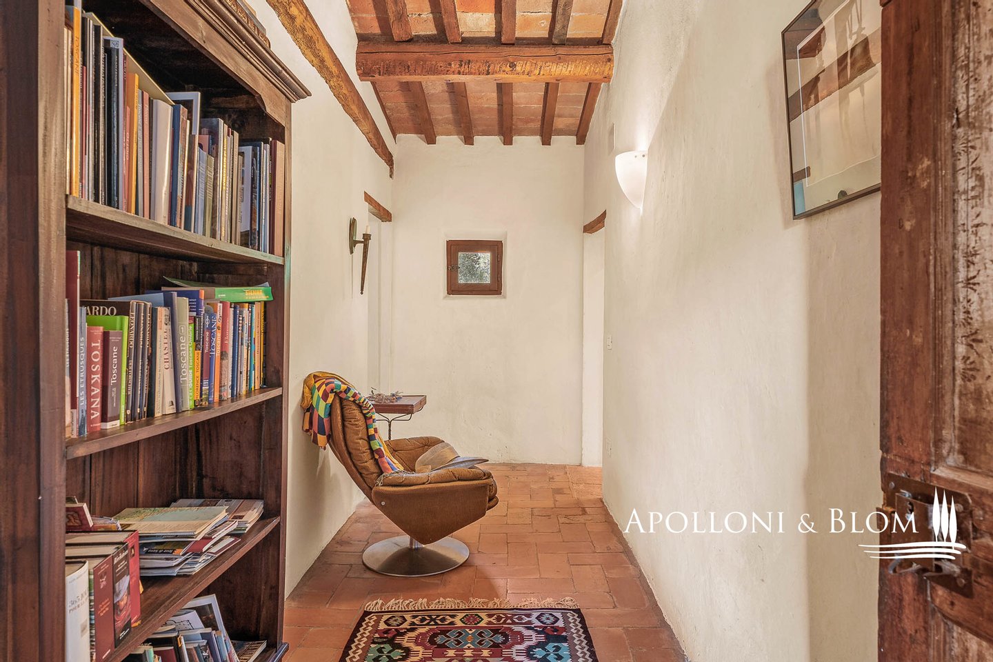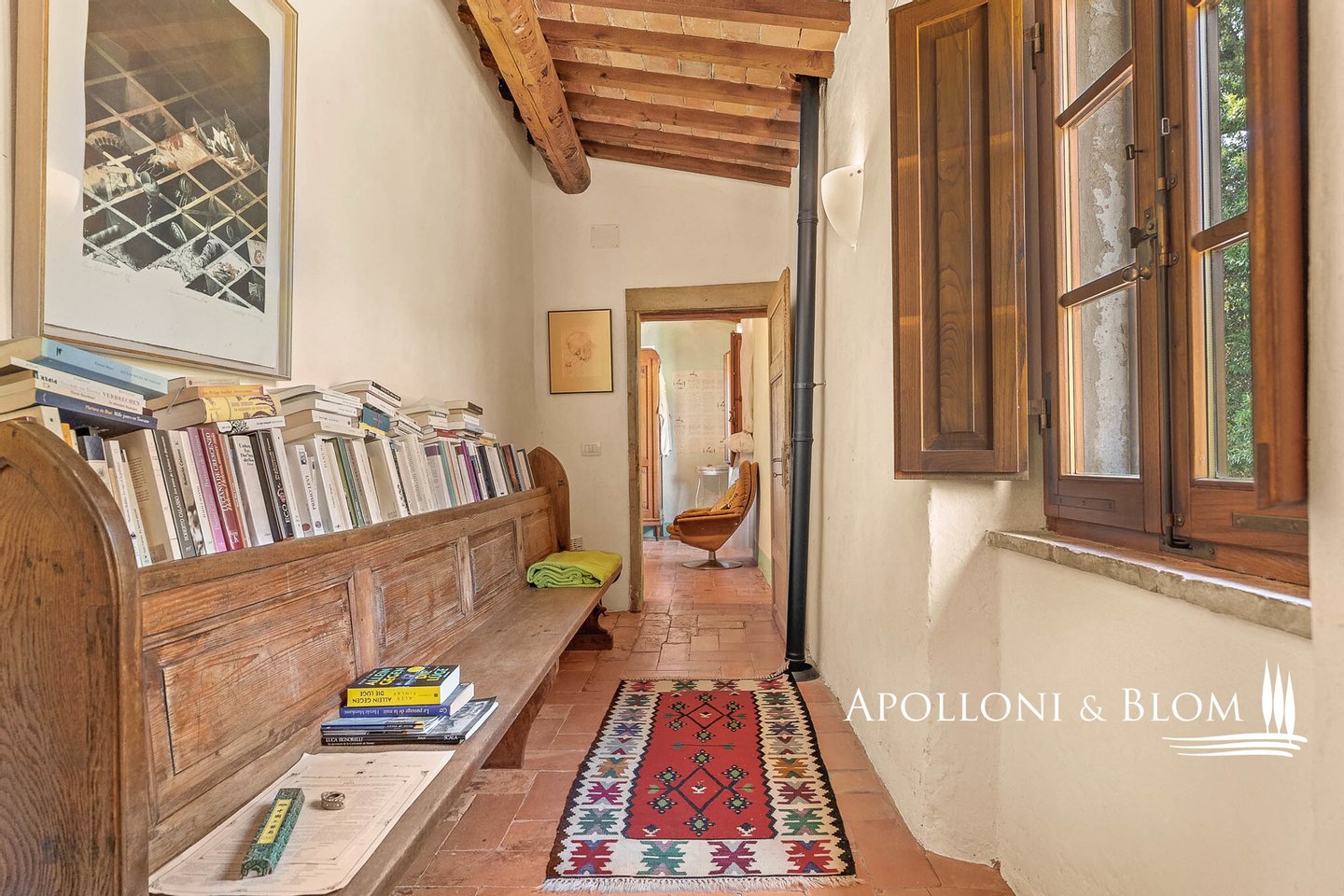 Bauernhaus mit schönem Innenhof, Terrasse und Olivenhain bei Trequanda, Siena - Toskana. Versteckt unter dem Hügel von Castelmuzio, umgeben von Bäumen und windgeschützt, mit offenem Blick nach Süden, ist dieses Bauernhaus ein wahres Juwel für seine gegliederte Struktur, seine komfortablen Innen- und Außenräume und für die authentische Atmosphäre, die trotz der jüngsten, minimalen Restaurierung erhalten wurde. Am Ende eines kurzen Stücks unbefestigter Straße empfängt uns das Bauernhaus, das auf drei Seiten frei ist, durch eine alte Holztür, die in einen schönen Hof führt, in dem sich der Haupteingang und die Räume für die landwirtschaftliche Nutzung befinden. Über eine schöne Treppe aus lokalem Travertin gelangt man in den ersten Stock, wo sich der Wohnbereich mit einem großen Wohnzimmer und einer Küche mit einem wunderschönen antiken Kamin befindet, von wo aus man auf die Terrasse gelangt, die eine ganze Seite des Hofes einnimmt und von der aus man ein wunderschönes Panorama und die Sonne genießen kann, die diese Seite des Anwesens den ganzen Tag über küsst. Ein Arbeitszimmer und ein intimes Wohnzimmer vervollständigen diese Ebene. Im Obergeschoss befinden sich drei Schlafzimmer und ein Badezimmer, in denen die Familie und Freunde untergebracht werden können, in einem authentischen Ambiente, in dem man sich das Landleben einer längst vergangenen Zeit vorstellen kann. In einem Flügel des Anwesens befindet sich eine unabhängige Zwischengeschosswohnung mit direktem Zugang zum Innenhof, die mit einer Kochnische, einem Badezimmer, einem Doppelzimmer und einem Arbeitszimmer ausgestattet ist. Der Außenbereich wird durch einen vom Hauptgebäude abgetrennten Anbau bereichert, in dem ein perfekt funktionierender Ofen und ein Holzschuppen untergebracht sind, sowie durch einen Brunnen zum Sammeln von Regenwasser und einen an das Gebäude angelehnten Schuppen, in dem sich derzeit zwei Wasserzisternen befinden. Ringsherum schmücken aromatische Pflanzen, Glyzinien, Flieder und Olivenbäume den Außenbereich und verströmen angenehme Düfte. Dieses Bauernhaus ist die perfekte Lösung für diejenigen, die in das authentische Landleben eintauchen und seine Privatsphäre genießen oder es mit Freunden und Verwandten teilen möchten, mit der Möglichkeit, den gesamten Komplex zu kaufen (Anzeigen TRQ3109 und TRQ3106).
