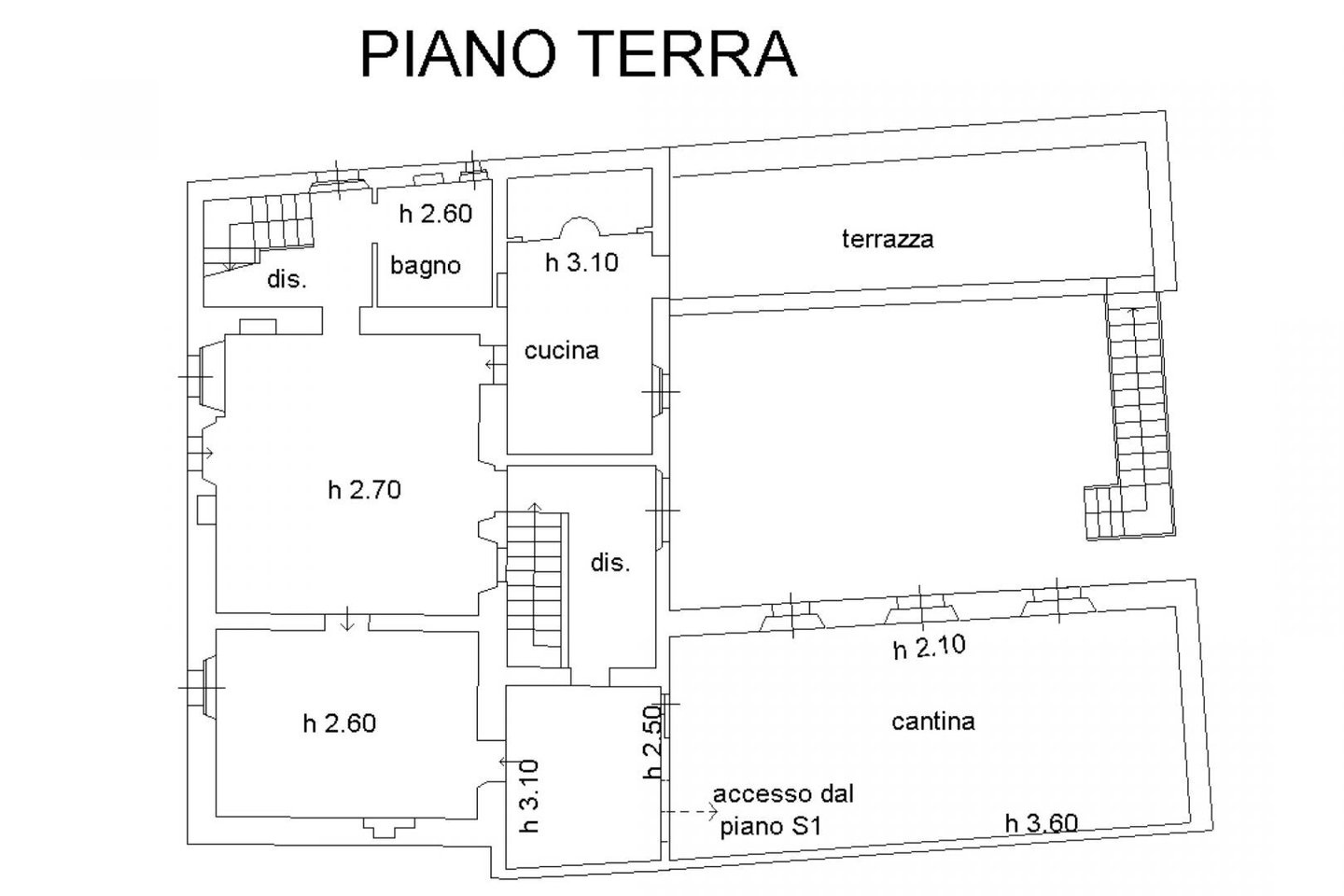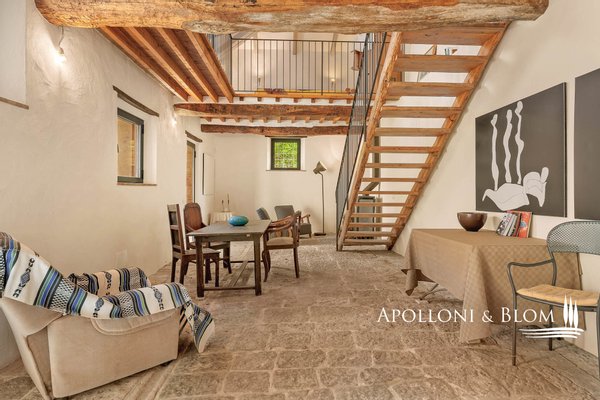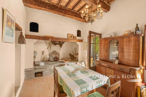 Typ: Teil des Bauernhauses, frei auf drei Seiten, auf drei Ebenen, qm 370 einschließlich Anhang mit Ofen und Holzschuppen + Nebengebäude + 1625 qm Land mit Olivenhain