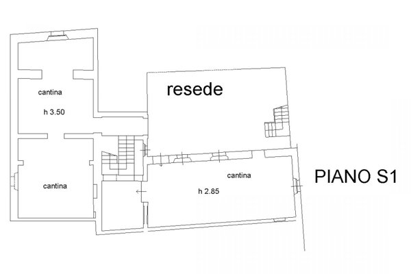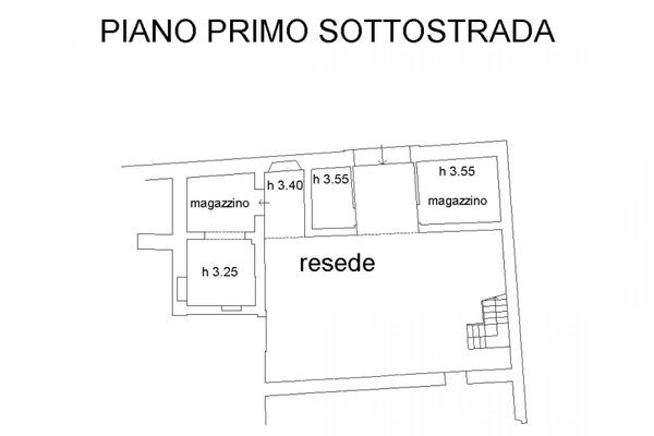 Etage -1: Innenhof, 2 große Räume, die als Keller genutzt werden, Mezzanin-Studio mit Schlafzimmer, Bad und Kochnische