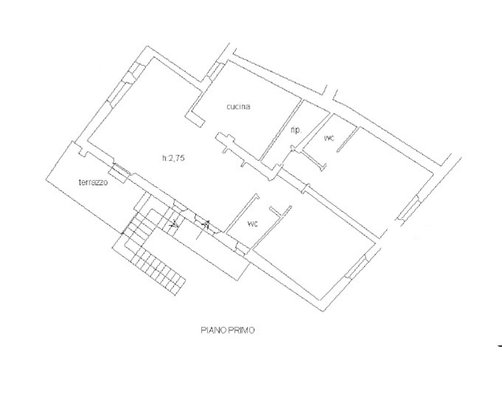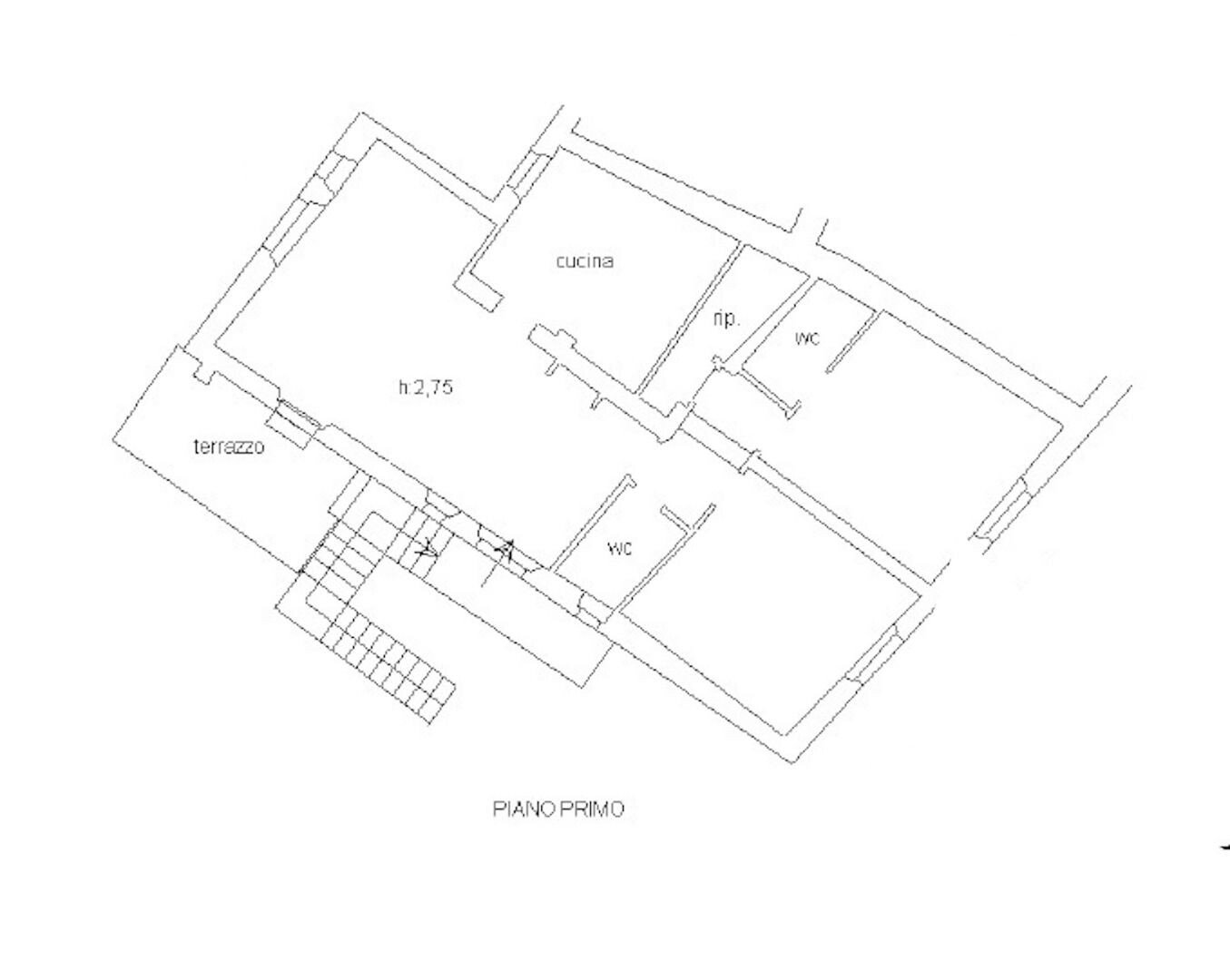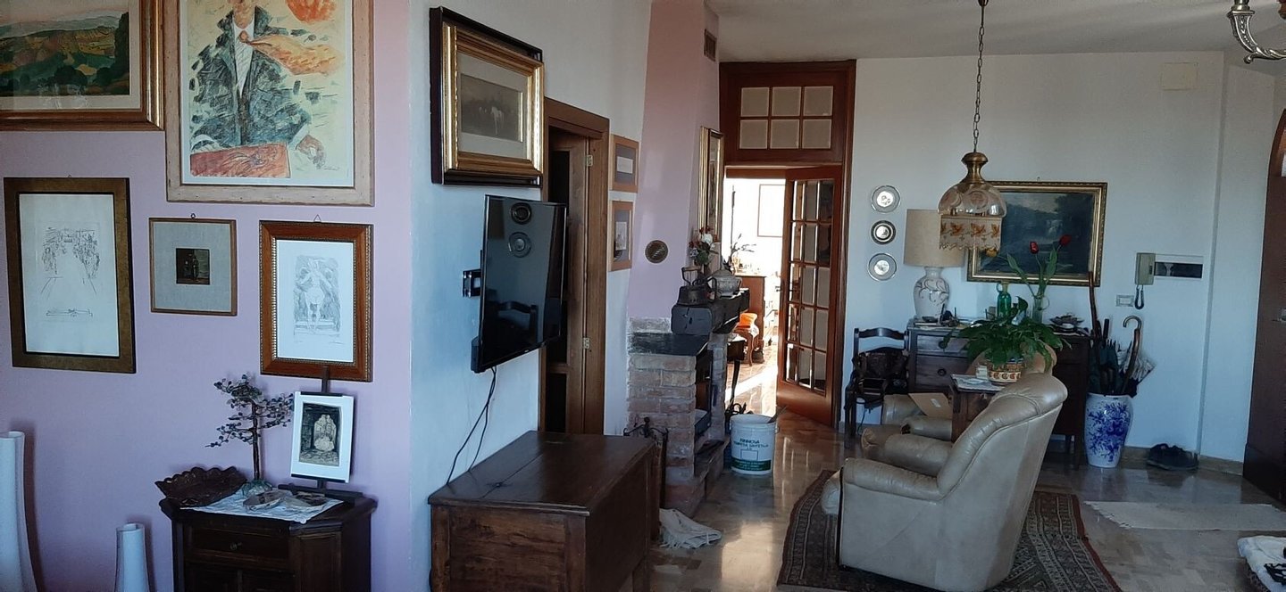 Erster Stock: Wohnung von ca. 100 Quadratmetern, die als privater Wohnsitz vorgesehen ist. Küche, Wohnzimmer, 2 Schlafzimmer, 2 Bäder, Panoramaterrasse
