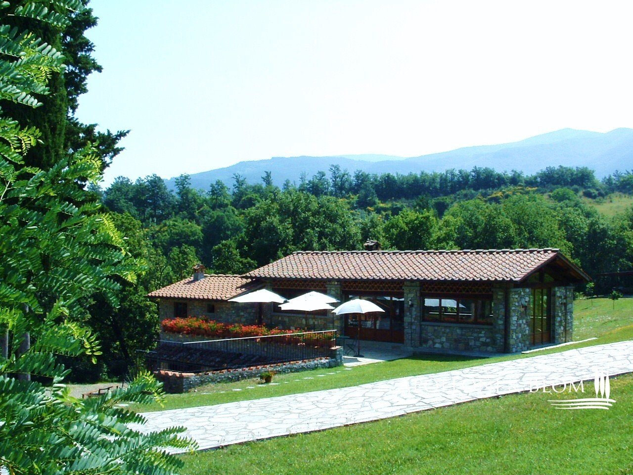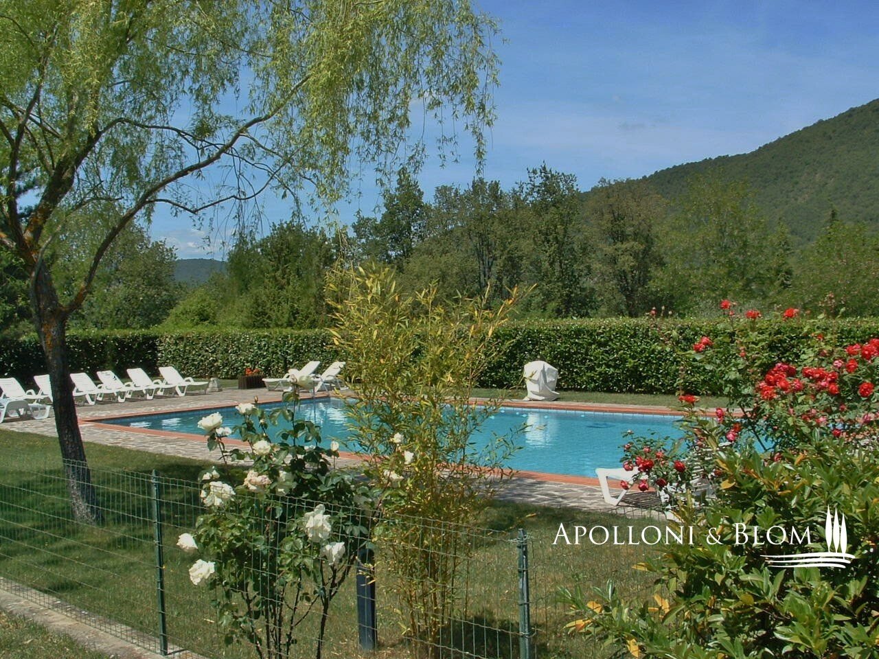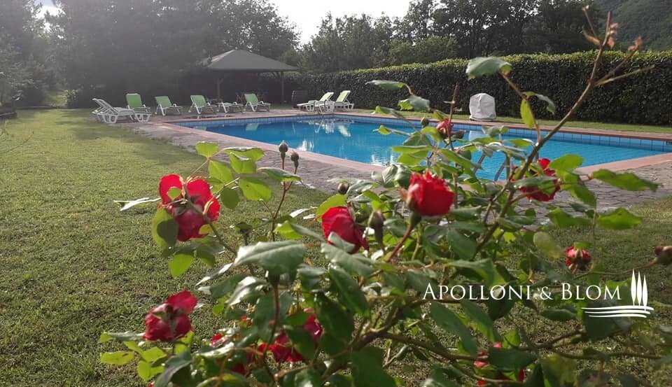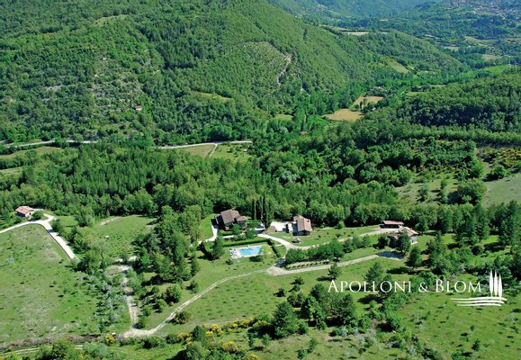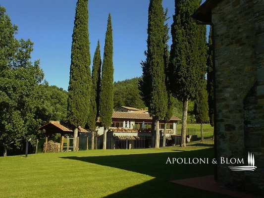 Land/Garten: 20 ha, davon 12 ha eingezäunt, "Biologisch" zertifiziert, mit 300 Olivenbäumen und ca. 100 Obstbäumen mit programmierter Tropfbewässerung, ca. 7,5 ha (von den 12 ha) sind mit wertvollen Holzbäumen (Ahorn, Kirsche, Walnuss, Eiche, Esche, Aleagnus) bepflanzt, 5 ha Buschweide und 3 ha Wald. Das Anwesen wird mit den vorhandenen landwirtschaftlichen Geräten zur Selbstbewirtschaftung des Landes verkauft