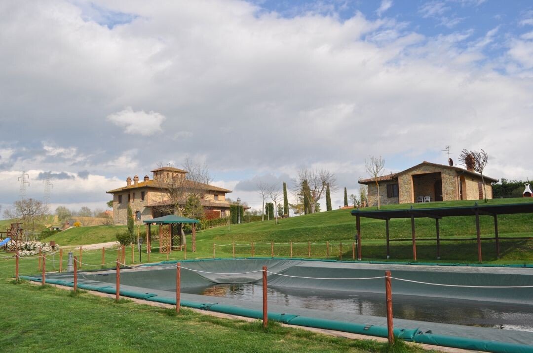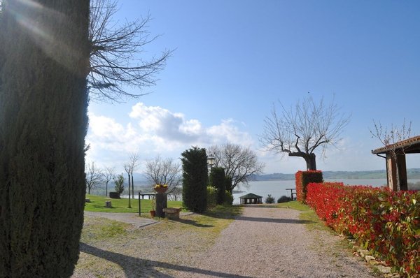 Renoviertes altes umbrisches Bauernhaus mit Schwimmbad, Nebengebäude, Garten und Seeblick, zu verkaufen in Castiglione del Lago, Perugia. Ein Hauptbauernhaus aus Stein, das sich über zwei Etagen erstreckt und in vier Wohnungen unterteilt ist, mit Aussichtsturm, Weinkeller für die Lagerung und Reifung von Weinen und Waschküche. Ein Nebengebäude aus Stein, bestehend aus einer Wohnung im Erdgeschoss mit Veranda und Lagerräumen im Untergeschoss. Der gepflegte Garten, der die Gebäude umgibt und zum See hin abfällt, verfügt über einen Swimmingpool in Panoramalage, einen Spielplatz und einen Boccia-Platz. Der Pool hat einen bequemen, runden Zugang über eine Treppe in der Ecke mit einem Whirlpool. Das Bauernhaus wird als Unterkunft genutzt. Neben dem Park, der das Haus umgibt, gehören weitere freistehende landwirtschaftliche Flächen von insgesamt 5 Hektar mit Olivenhainen und Weinberg zum Anwesen.