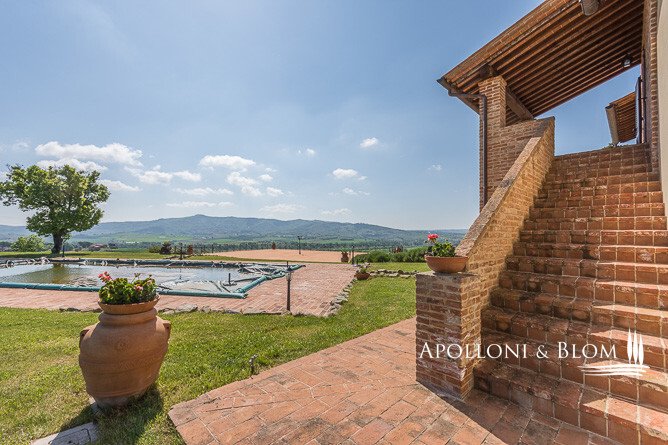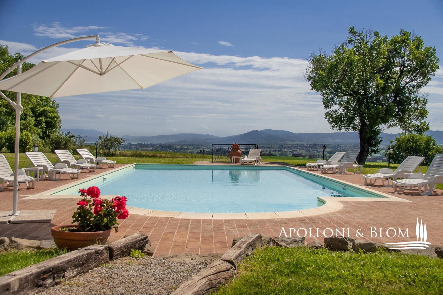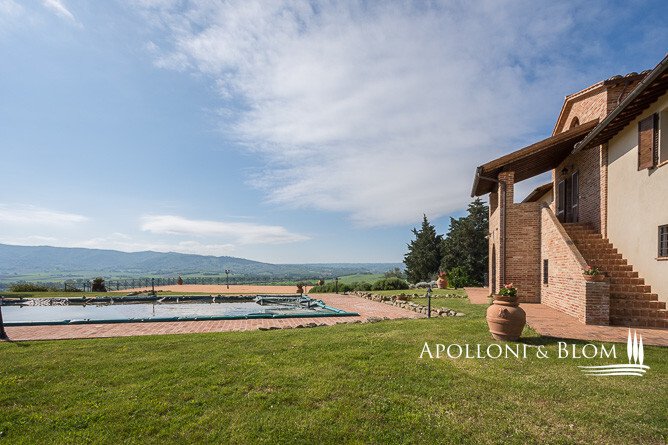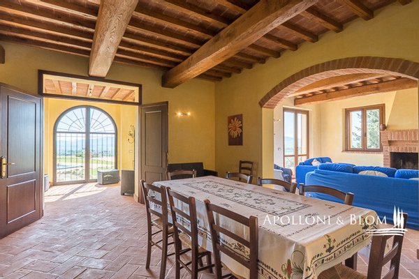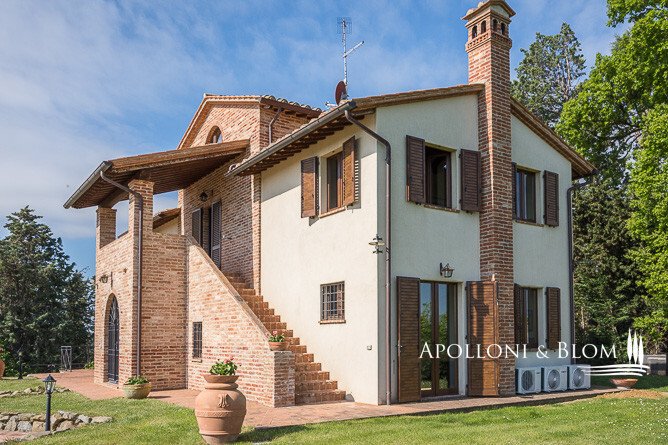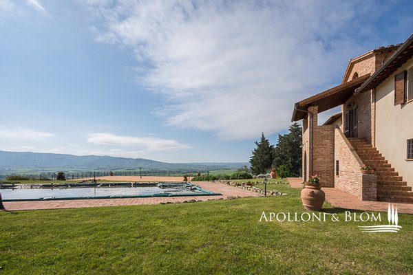 Schönes restauriertes Bauernhaus mit Aufzug, Schwimmbad, Garten, Panoramaterrasse zu verkaufen in Castiglione del Lago, Perugia. Wenige Kilometer vom Trasimenischen See entfernt, umgeben von Gärten, rühmt sich dieses Bauernhaus seiner Ursprünge im 16. Jahrhundert und wurde nach vielen Jahren der Vernachlässigung im Jahr 2008 dank eines kompletten Umbauprojekts wieder zu vollem Leben erweckt und bietet heute eine perfekt funktionale Residenz voller Charme und Geschichte, mit allen modernen Annehmlichkeiten: ein Aufzug verbindet die drei Hauptetagen, sowie Steintreppen sowohl innen als auch außen. Auf dem Dach erhebt sich ein Türmchen, das heute ein Schlafzimmer/Arbeitszimmer mit Bad beherbergt. Im Untergeschoss befindet sich ein Raum mit einem dreifachen Wohnzimmer und Kamin. Im Erdgeschoss gibt es ein Wohnzimmer mit Esszimmer, eine Küche im rustikalen umbrischen Stil, freiliegende Holzbalken, Ziegelbögen und Terrakottaböden. Alle 4 Zimmer haben ein eigenes Bad mit Jacuzzi. Das Schwimmbad ist mit Salzwasser. Eine neue Struktur mit einem Terrassendach, die auch von der Villa durch einen Kellertunnel zugänglich ist, bietet einen einzigartigen Raum von 350 Quadratmetern, der als Werkstatt/Workshop, Studio und Partyraum genutzt werden kann. Auf dem Dach befindet sich eine Panoramaterrasse. Ideal als privater Wohnsitz oder als Beherbergungsbetrieb.