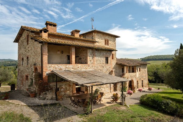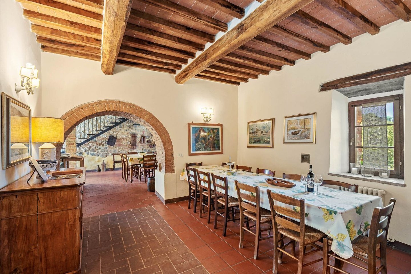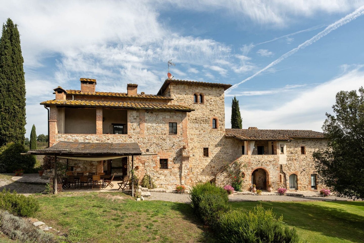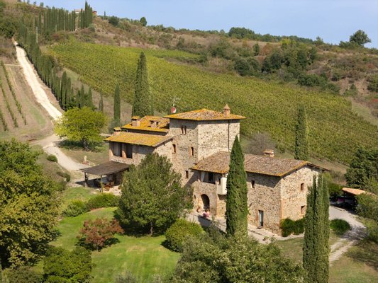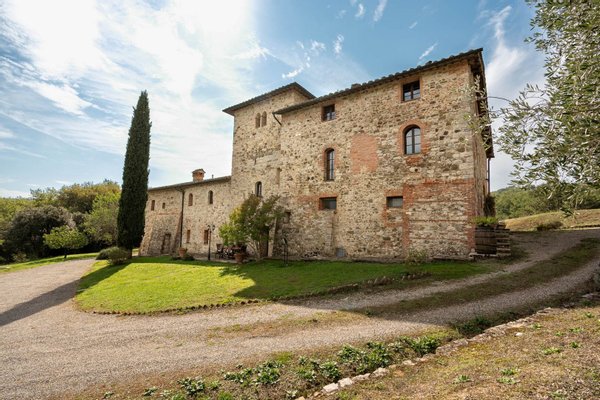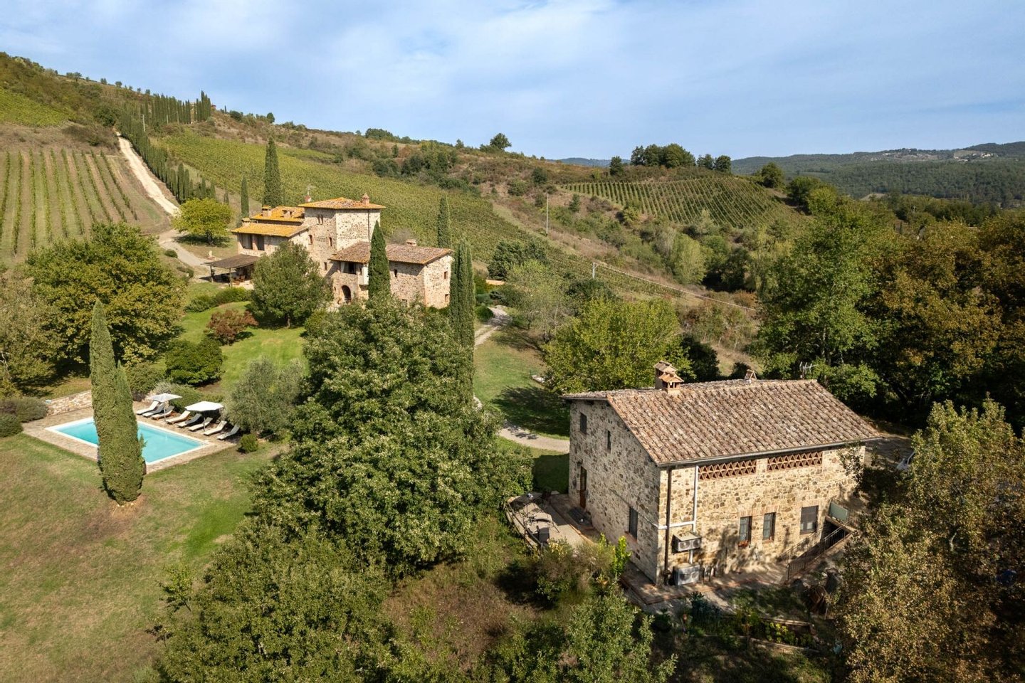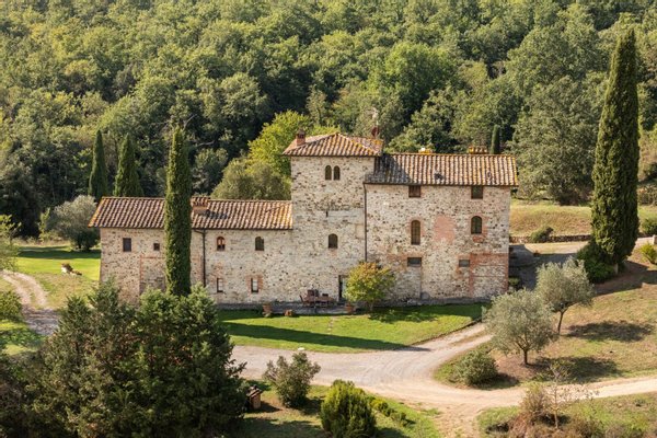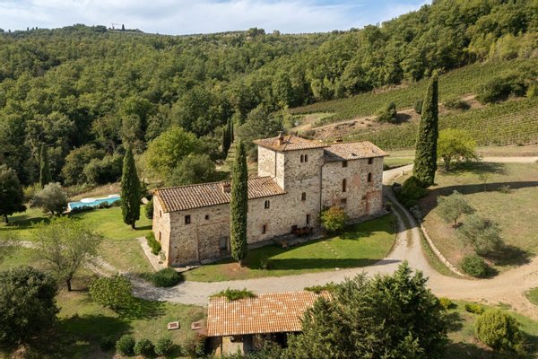 Renovierter Turm aus dem 14. Jahrhundert mit Klimaanlage, Sonnenkollektoren, Schwimmbad und Weinbergen zu verkaufen in Siena. Inmitten der faszinierenden Landschaft der Hügel des Chianti Classico, zwischen Gaiole in Chianti und Siena, liegt eine Festung mit Turm aus dem 14. Jahrhundert, die nach dem Fall von Siena an das Großherzogtum Toskana im Jahr 1550 in ein Bauernhaus umgewandelt wurde und nun mit viel Liebe zum Detail zu einer charmanten Landvilla mit Nebengebäude und Swimmingpool umgebaut wurde. Die Fassaden sind geprägt von antiken Steinen, Säulengängen und Loggien, die harmonisch ein charmantes Haus mit viel Charakter und Geschichte bilden. Im Erdgeschoss befinden sich mehrere Wohnbereiche, die durch gemauerte Bögen gut miteinander verbunden sind, zwei Küchen mit direktem Zugang zur Pergola und zum Garten, ein Büro und eine Waschküche. In den oberen Stockwerken befinden sich drei Wohnzimmer mit Kaminen, ein Atelier in der Spitze des Turms mit hohen Decken und schönen Holzbalken, Panoramablick und spektakulärer Landschaft, ergänzt durch insgesamt acht Schlafzimmer. Ein separates zweistöckiges Cottage wurde vollständig restauriert und in ein Nebengebäude mit vier Schlafzimmern umgewandelt. Im Jahr 2011 wurde eine Solaranlage installiert, um die Stromversorgung zu gewährleisten. Die 26 Hektar landwirtschaftliche Fläche, die das Anwesen umgeben, bestehen aus 5 Hektar Bio-Weinbergen, einem Olivenhain mit 150 Bäumen in Produktion, Ackerland und einem privaten Wald mit Eichen. Die Weinberge, die 2004/2005 gepflanzt wurden, sind mit Merlot, Cabernet Franc und Sangiovese bepflanzt und produzieren jährlich etwa 20.000 Flaschen IGT Toscana. Das Anwesen ist im Besitz eines privaten Unternehmens, das die landwirtschaftlichen Flächen und die touristische Bewirtung verwaltet und das Haus mit Turm als Privatvilla für exklusive Ferien vermietet und etwa 20 Wochen Ferienvermietung pro Jahr erzielt. Das Haus eignet sich auch hervorragend als privater Wohnsitz, zum Wohnen und Leben mit Familie und Freunden, das ganze Jahr über oder für den Urlaub, nur wenige Minuten von Geschäften und Hauptverkehrsstraßen entfernt.