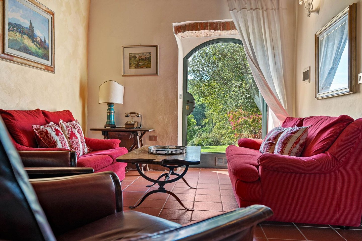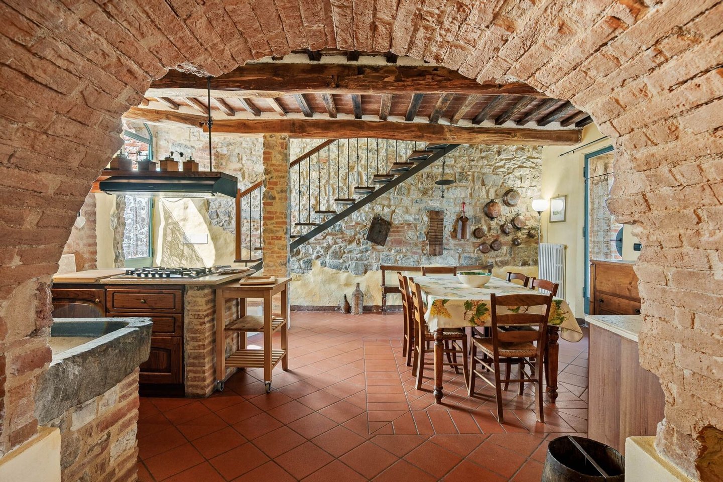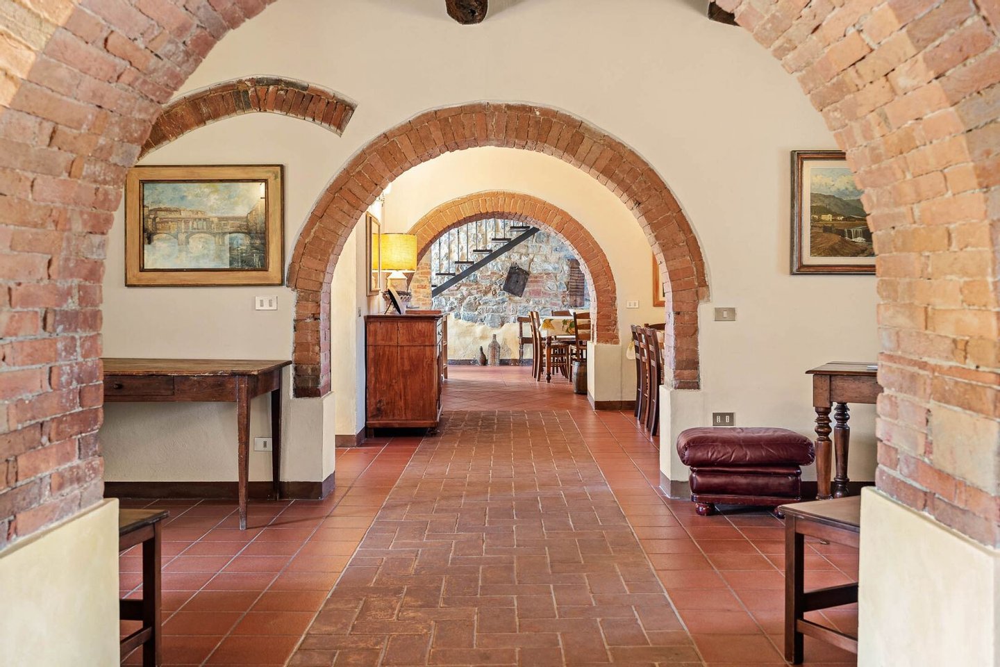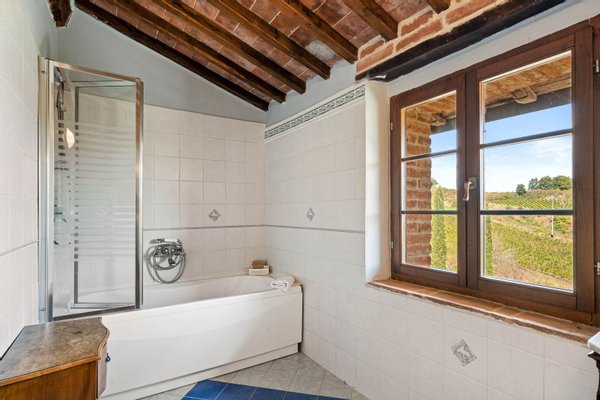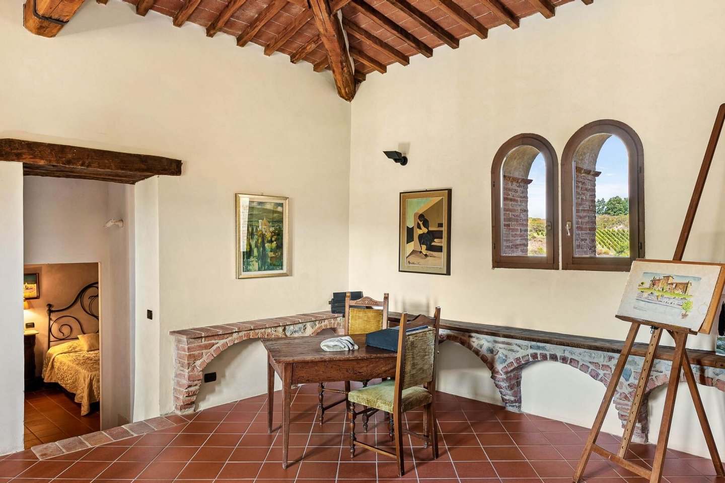 Renovierter Turm aus dem 14. Jahrhundert mit Klimaanlage, Sonnenkollektoren, Schwimmbad und Weinbergen zu verkaufen in Siena. Inmitten der faszinierenden Landschaft der Hügel des Chianti Classico, zwischen Gaiole in Chianti und Siena, liegt eine Festung mit Turm aus dem 14. Jahrhundert, die nach dem Fall von Siena an das Großherzogtum Toskana im Jahr 1550 in ein Bauernhaus umgewandelt wurde und nun mit viel Liebe zum Detail zu einer charmanten Landvilla mit Nebengebäude und Swimmingpool umgebaut wurde. Die Fassaden sind geprägt von antiken Steinen, Säulengängen und Loggien, die harmonisch ein charmantes Haus mit viel Charakter und Geschichte bilden. Im Erdgeschoss befinden sich mehrere Wohnbereiche, die durch gemauerte Bögen gut miteinander verbunden sind, zwei Küchen mit direktem Zugang zur Pergola und zum Garten, ein Büro und eine Waschküche. In den oberen Stockwerken befinden sich drei Wohnzimmer mit Kaminen, ein Atelier in der Spitze des Turms mit hohen Decken und schönen Holzbalken, Panoramablick und spektakulärer Landschaft, ergänzt durch insgesamt acht Schlafzimmer. Ein separates zweistöckiges Cottage wurde vollständig restauriert und in ein Nebengebäude mit vier Schlafzimmern umgewandelt. Im Jahr 2011 wurde eine Solaranlage installiert, um die Stromversorgung zu gewährleisten. Die 26 Hektar landwirtschaftliche Fläche, die das Anwesen umgeben, bestehen aus 5 Hektar Bio-Weinbergen, einem Olivenhain mit 150 Bäumen in Produktion, Ackerland und einem privaten Wald mit Eichen. Die Weinberge, die 2004/2005 gepflanzt wurden, sind mit Merlot, Cabernet Franc und Sangiovese bepflanzt und produzieren jährlich etwa 20.000 Flaschen IGT Toscana. Das Anwesen ist im Besitz eines privaten Unternehmens, das die landwirtschaftlichen Flächen und die touristische Bewirtung verwaltet und das Haus mit Turm als Privatvilla für exklusive Ferien vermietet und etwa 20 Wochen Ferienvermietung pro Jahr erzielt. Das Haus eignet sich auch hervorragend als privater Wohnsitz, zum Wohnen und Leben mit Familie und Freunden, das ganze Jahr über oder für den Urlaub, nur wenige Minuten von Geschäften und Hauptverkehrsstraßen entfernt.