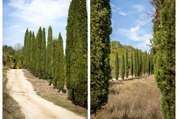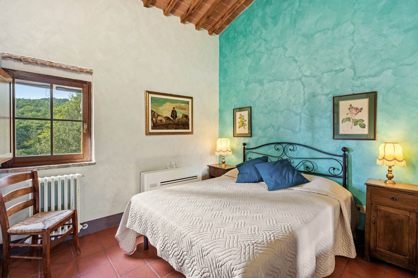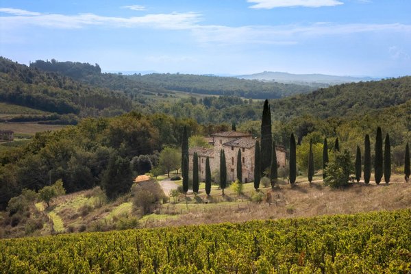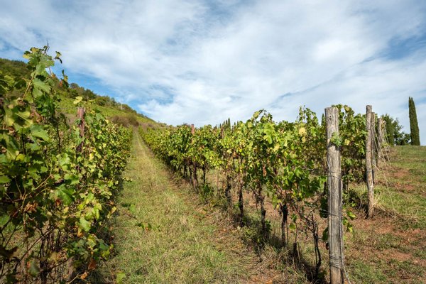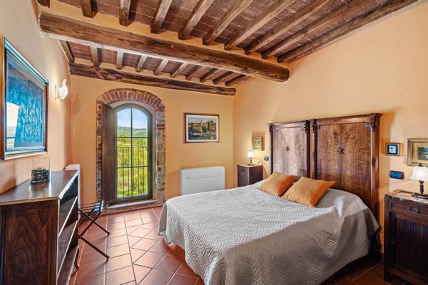 Land: ca. 26 Hektar bestehend aus Olivenhain mit 150 Bäumen, 4 Hektar Ackerland, 2,5 Hektar Weideland, Wald und ca. 5 Hektar Bio-Weinberg mit der Möglichkeit der Vergrößerung, IGT Toscana Bezeichnung, Merlot 30%, Cabernet Franc 30%, Sangiovese 18%, Rest Alicante Bouchet