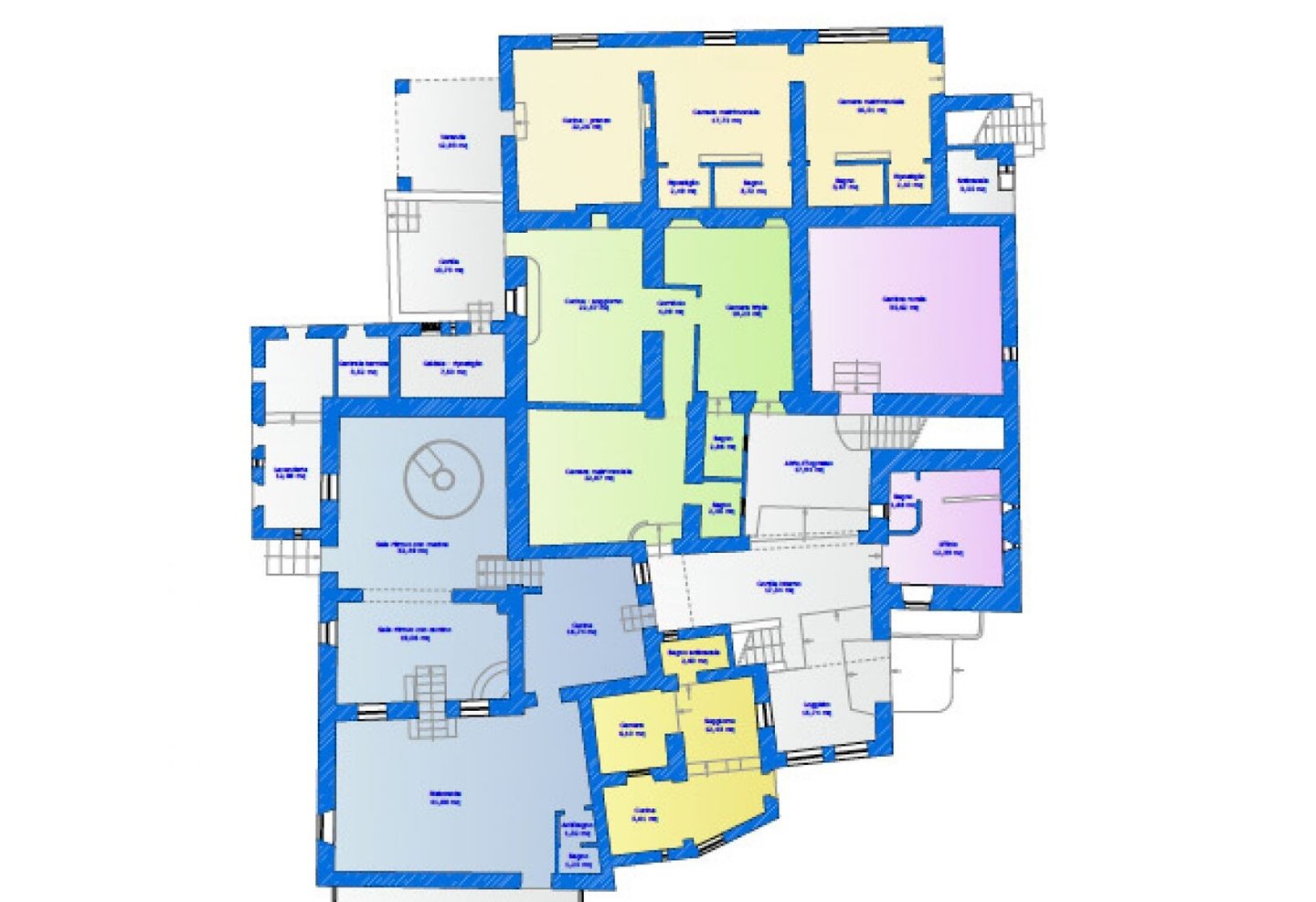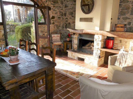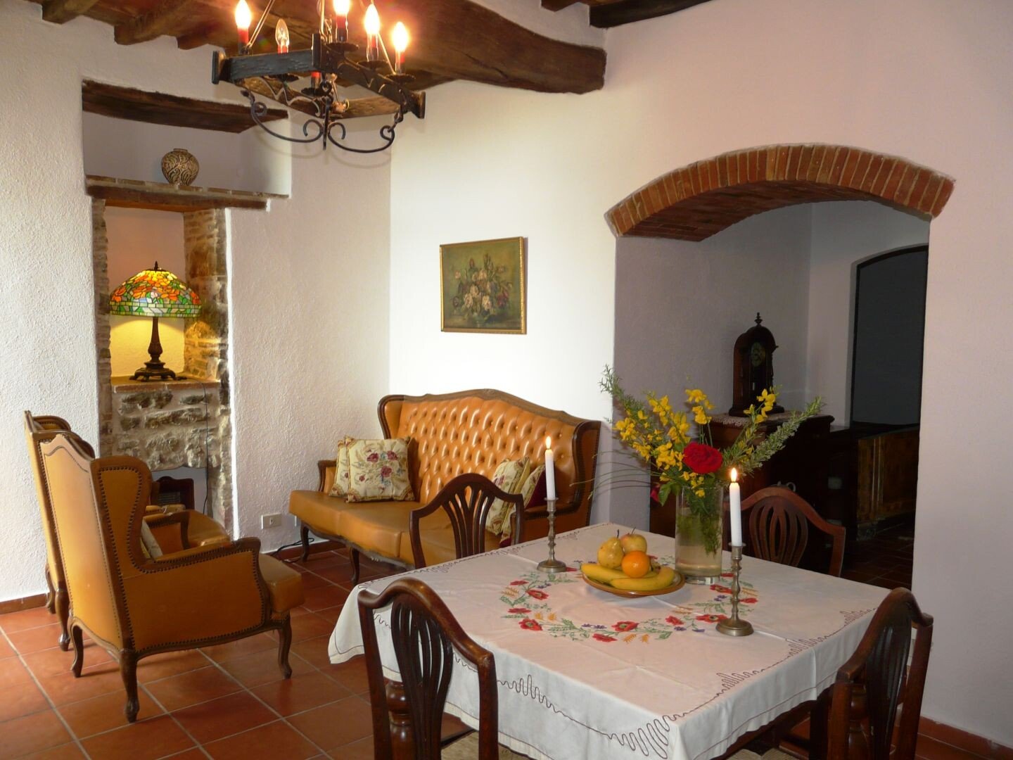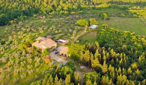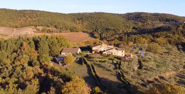 Typ: Bauernhaus von ca. 900 qm auf drei Ebenen renoviert mit sechs Wohnungen + 1 Dependance mit 2 Schlafzimmern, 1 Hütte mit 1 Studio, Schwimmbad, Garten, 53 Hektar Privatland mit Garten, Olivenhain, kleinem Weinberg, Wald und Ackerland